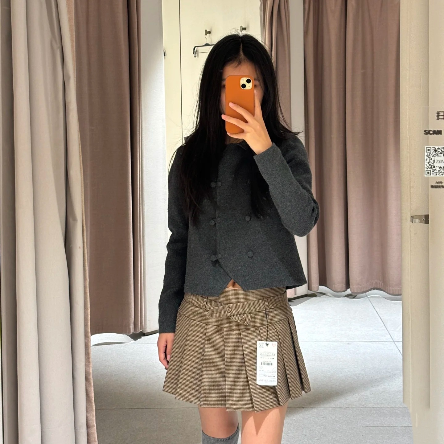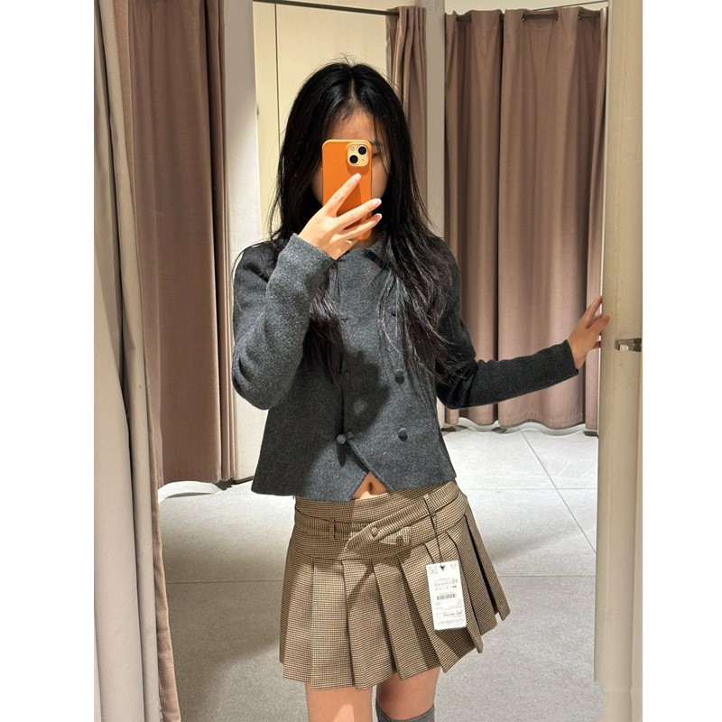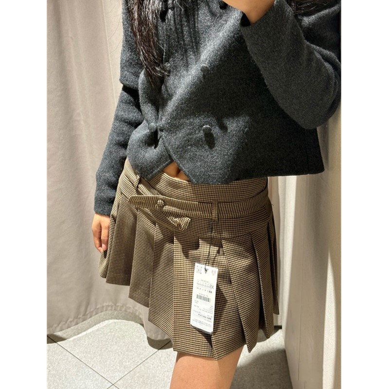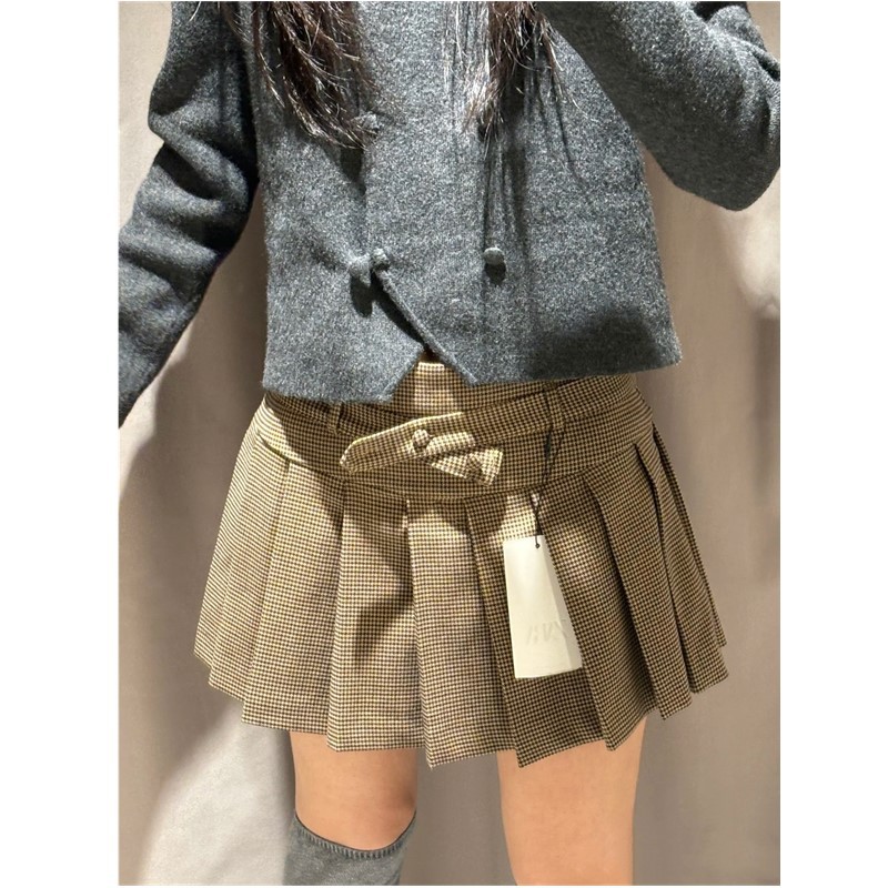 ZA 도매 2025 새로운 패션 캐주얼 조커 하이 허리 벨트 주름 미니 스커트 3067404스토어 가기