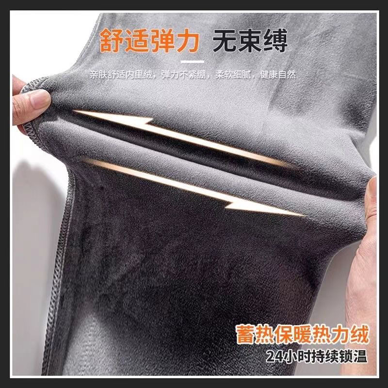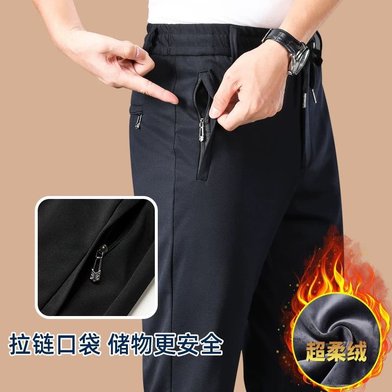 가을과 겨울 두꺼운 기모 남자 바지 남자 캐주얼 바지 지퍼 탄성 타이트 스포츠 바지 아빠를위한 느슨한 스트레이트 바지