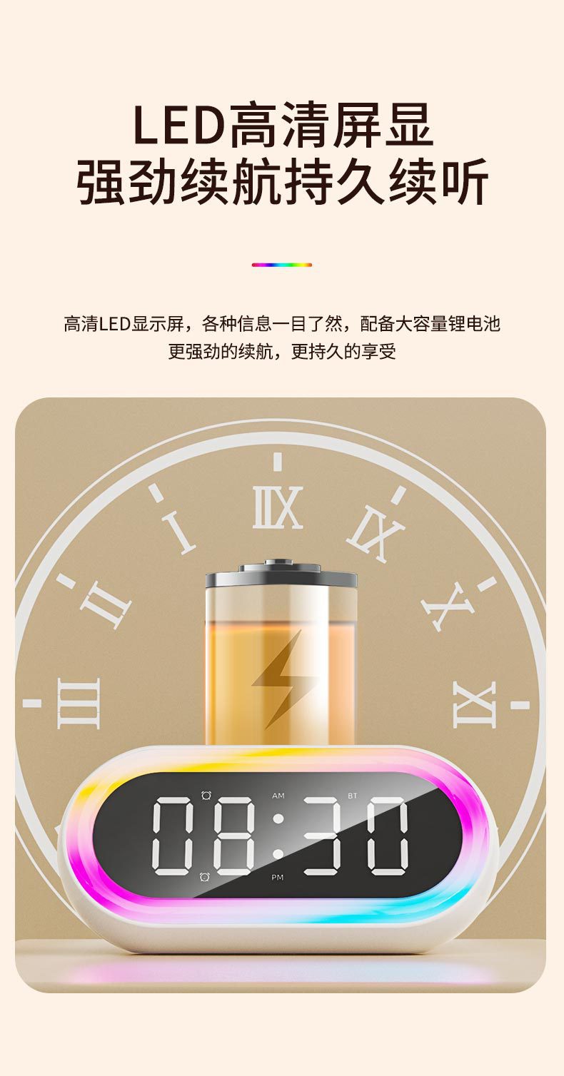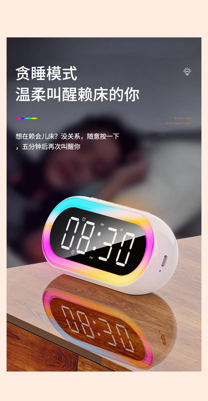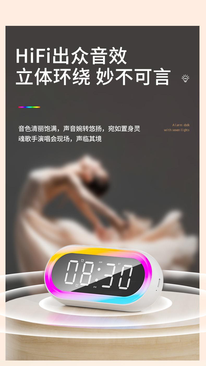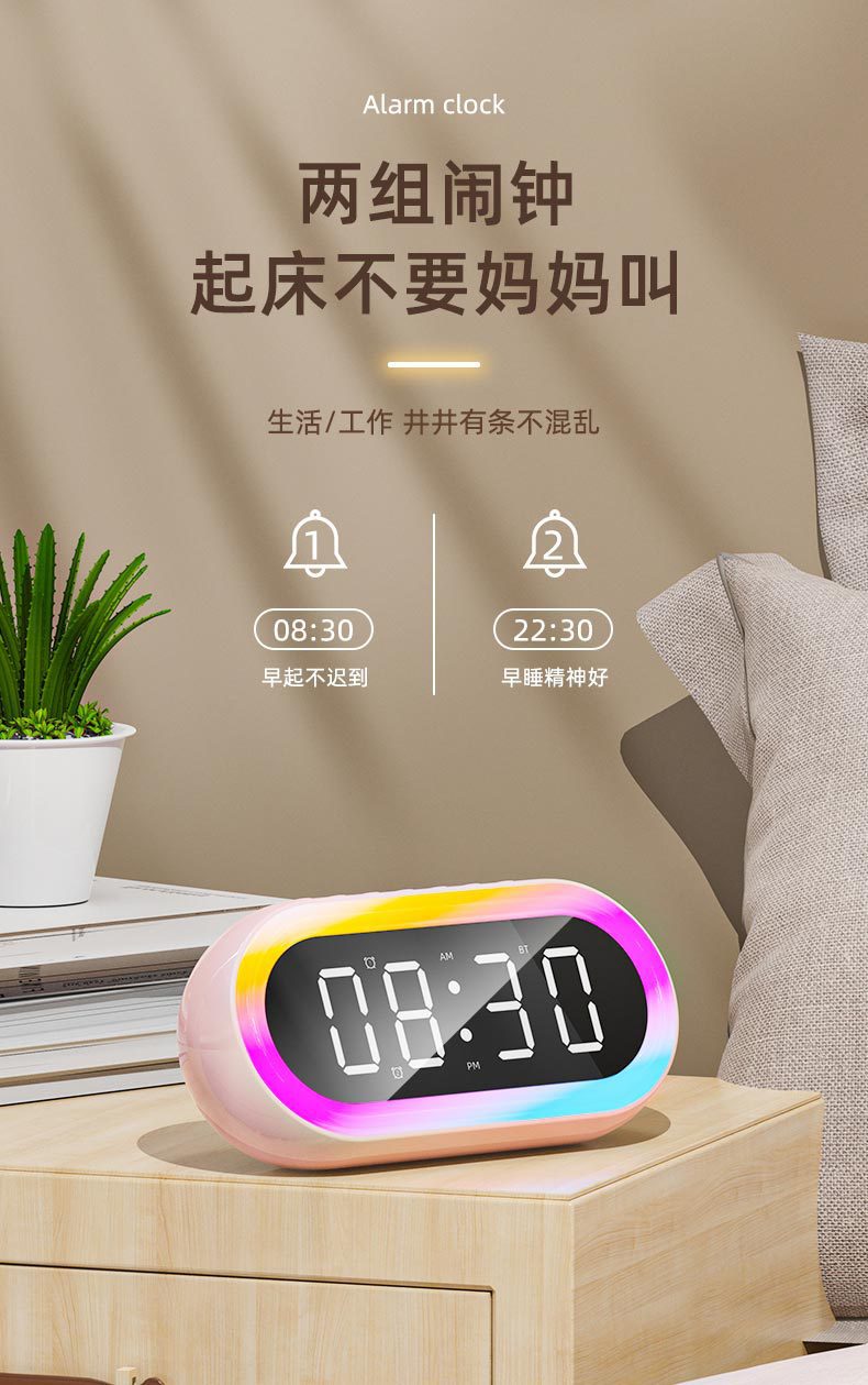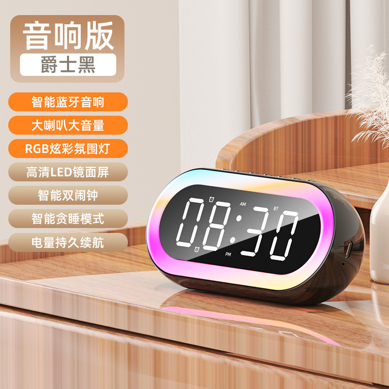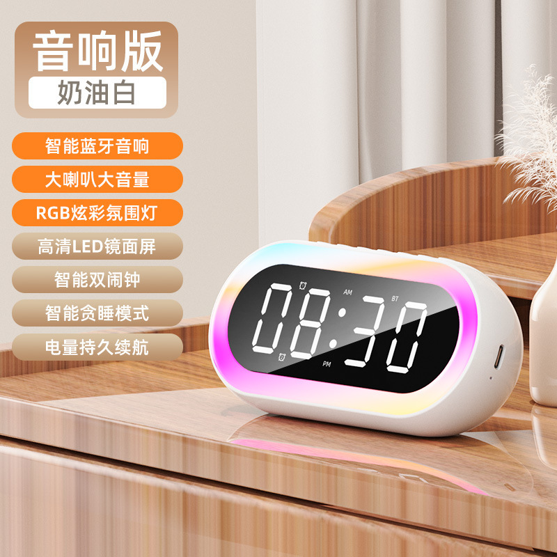 국경 창조적 인 개인 모델 LED 디지털 시계 학생 밤 빛 작은 알람 시계 다채로운 RGB 조명 다기능 블루투스 오디오