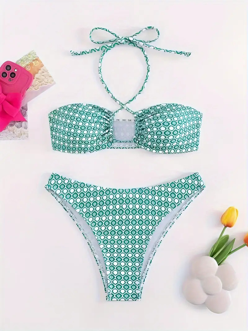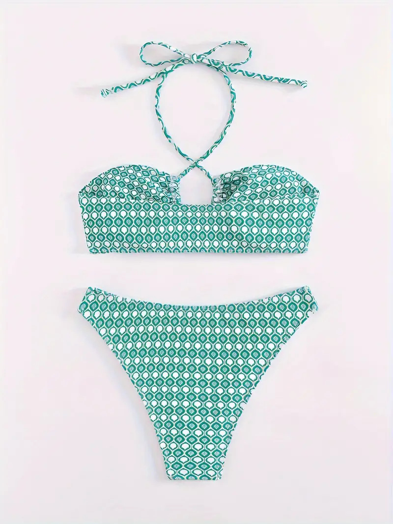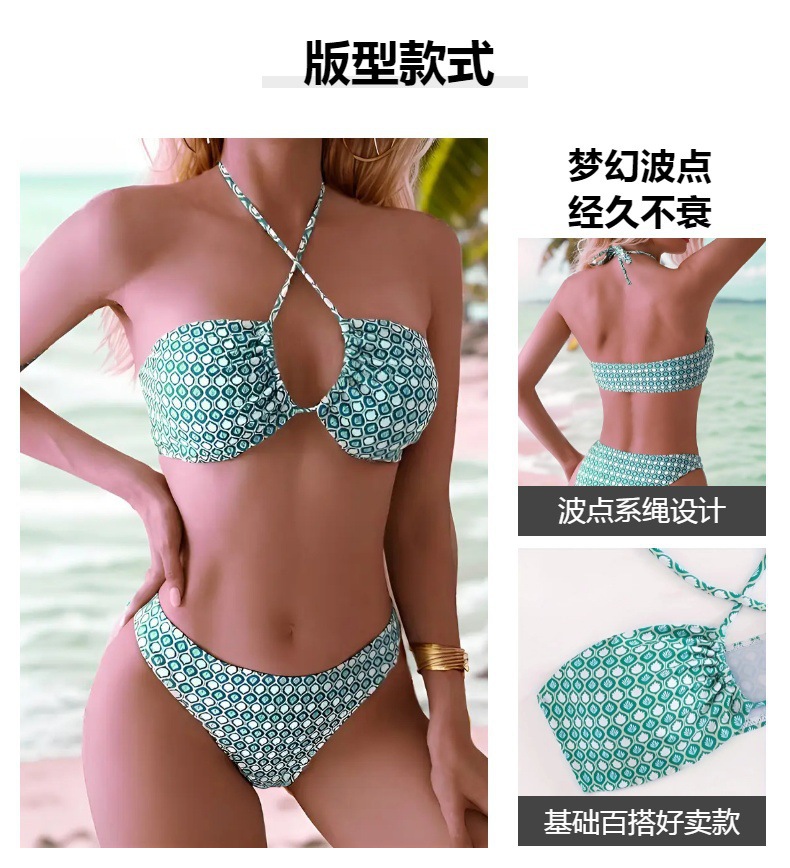 유럽과 미국의 아마존 국경 간 프린트 비키니 섹시 웨이브 포인트 드로 스트링 슬림 여성 스플릿 수영복스토어 가기