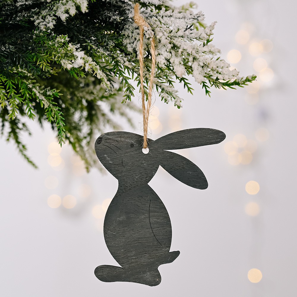 국경 새 부활절 장식 나무 토끼 펜던트 홈 단색 토끼 펜던트 흑백