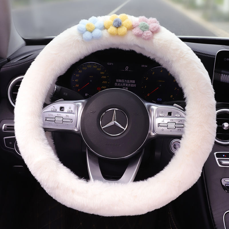 2023 새로운 자동차 스티어링 휠 커버 겨울 짧은 봉제 여신 핸들 커버 겨울에 따뜻하게 유지