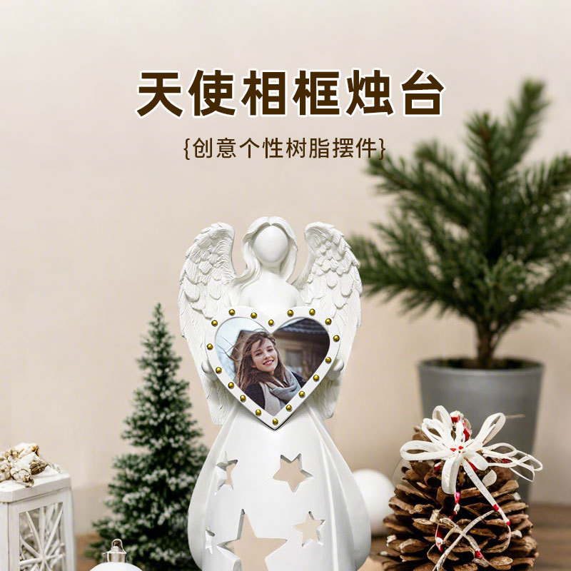 국경 간 특수 천사 사진 프레임 촛대 조각 교체 가능한 사진 프레임 종이 기념 선물 수지 홈 거실 장식품스토어 가기