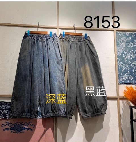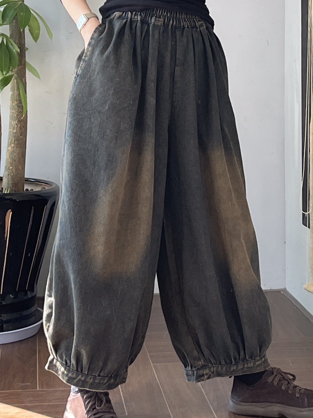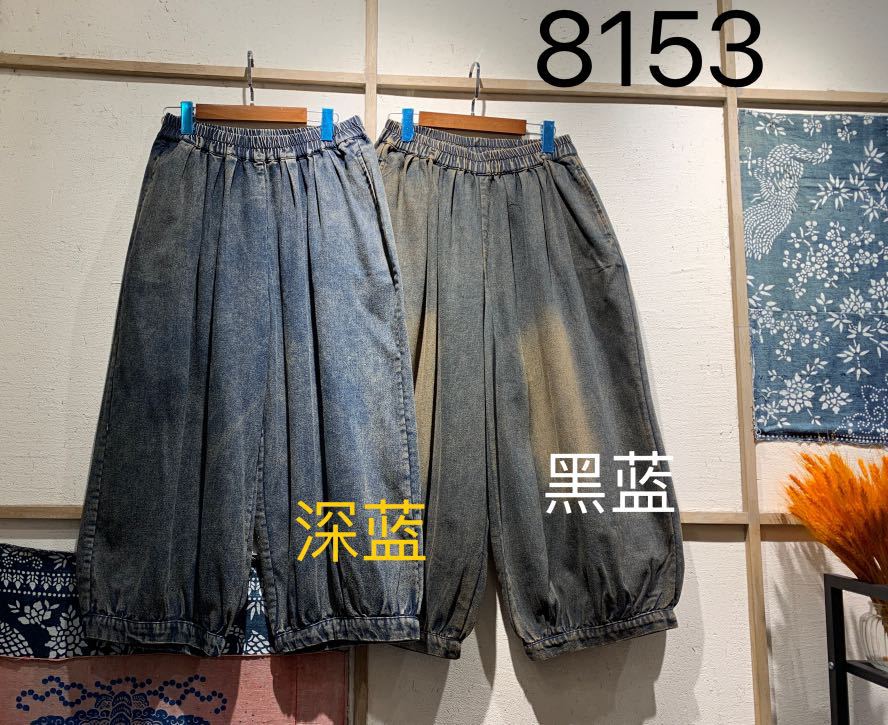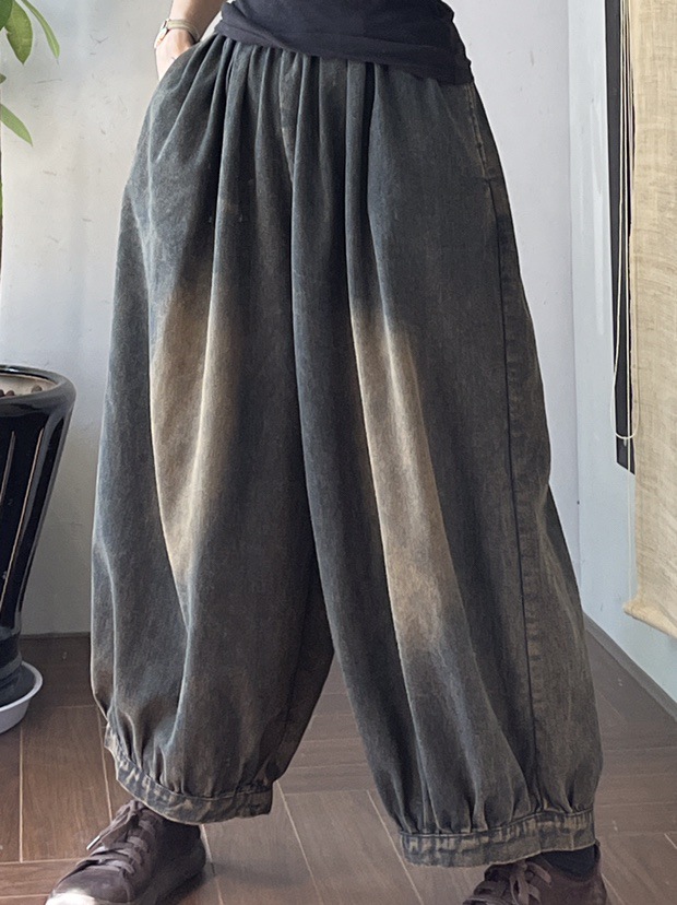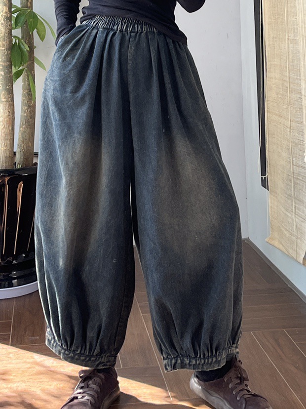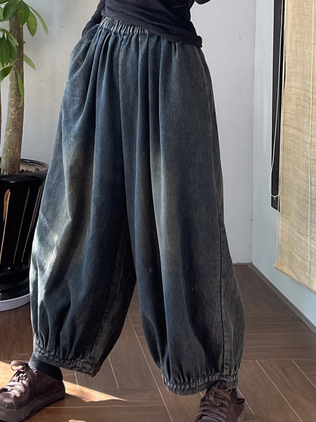 봄 새로운 세탁 화이트 데님 넓은 다리 바지 여성 예술적 복고풍 느슨한 플러스 사이즈 블루머스 8153스토어 가기
