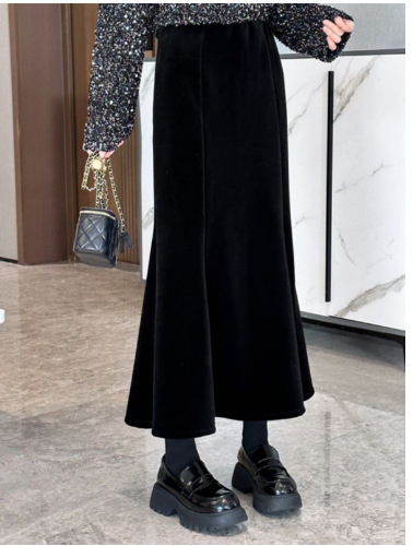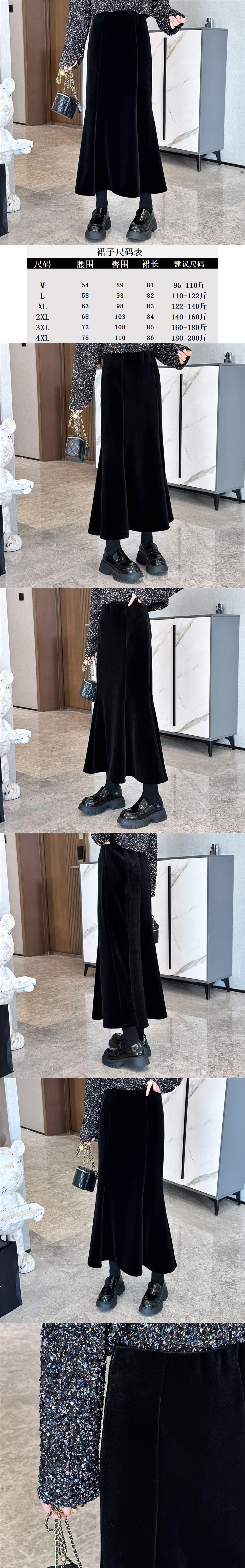 빅사이즈 하이웨이스트 벨벳 스커트 여성용 2025 봄 가을 신상 플러스 사이즈 여성스러운 기품 있는 물결치는 꼬리치마스토어 가기