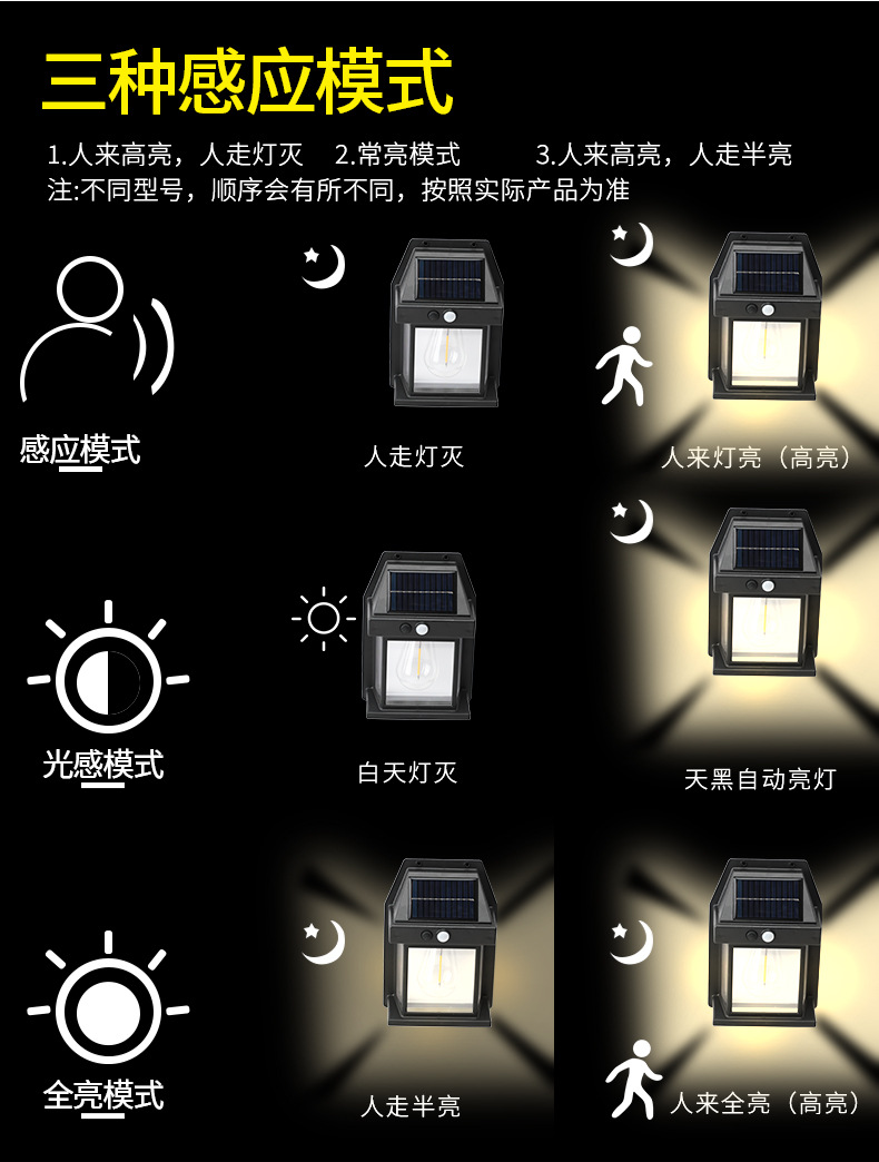 야외 안뜰 벽 램프 인체 유도 도로 가로등 가정용 태양 광 조명 야외 빛 태양 전지 패널