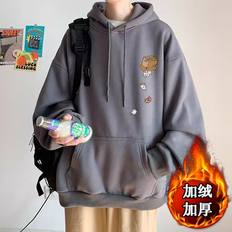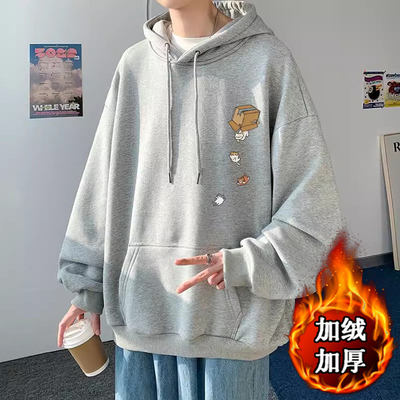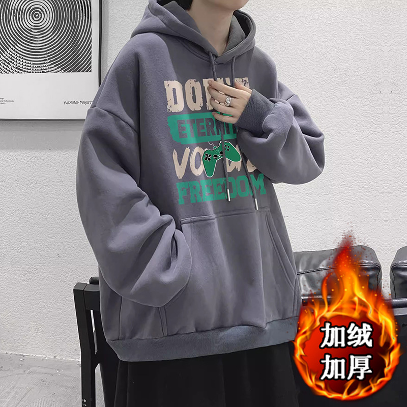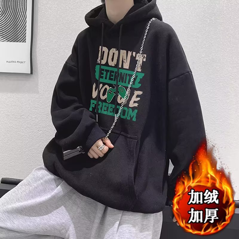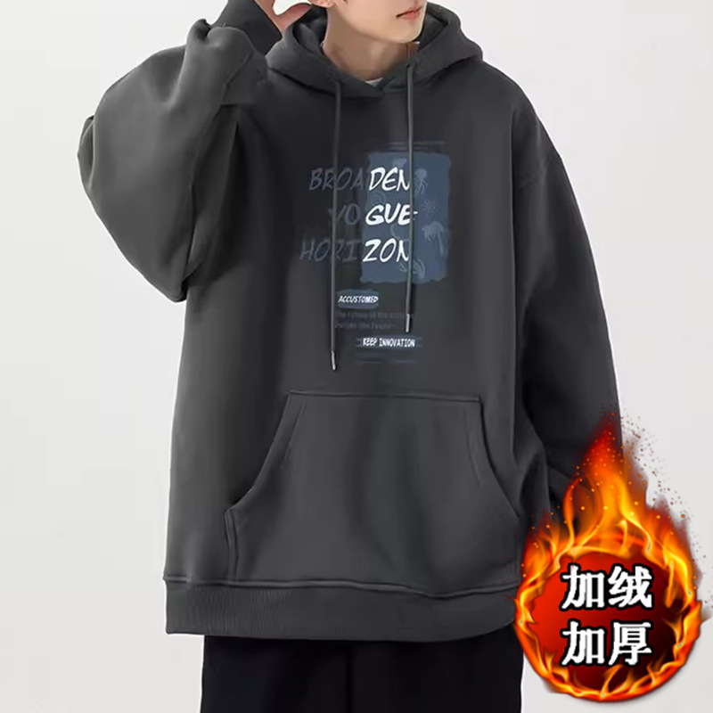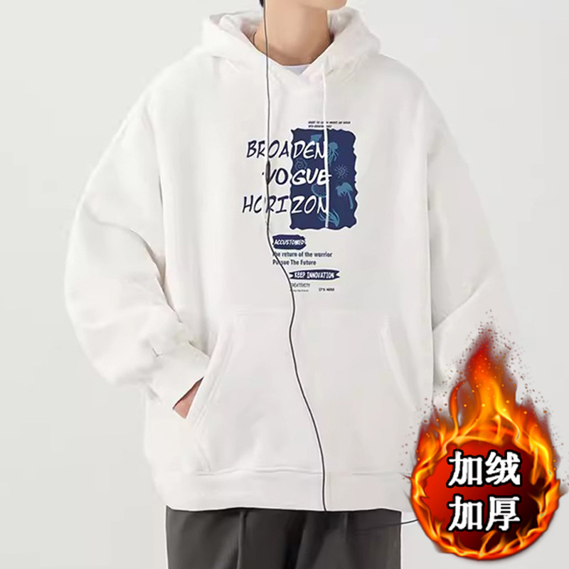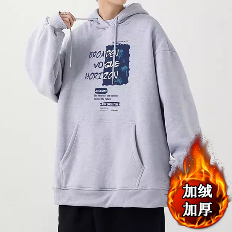 후드 스웨트 셔츠 남자의 가을과 겨울 기모 두꺼운 유행 브랜드 캐주얼 풀오버 탑 옷 봄과 가을 인쇄 청소년 자켓