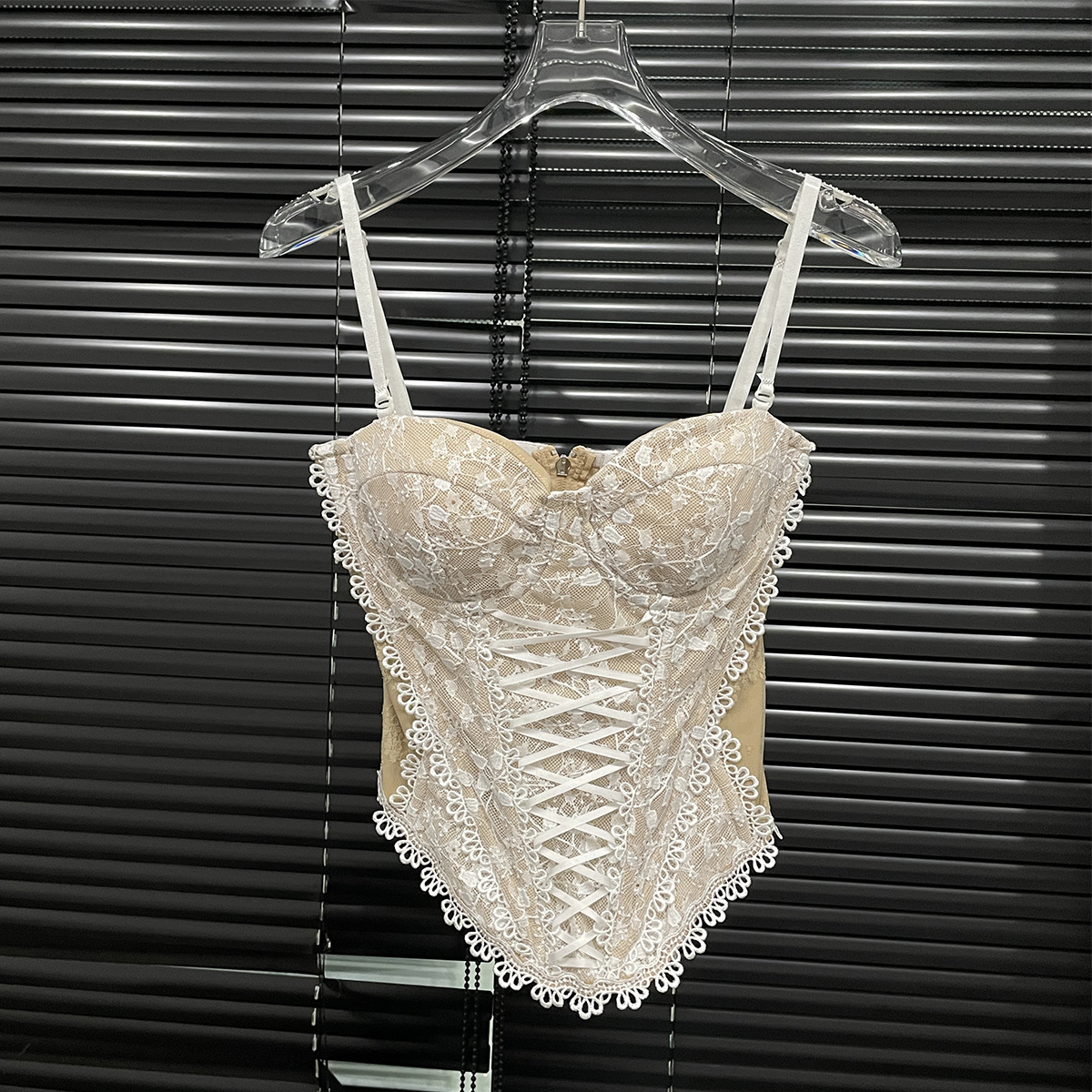 미국 스타일의 섹시한 레이스 튜브탑 여성용 쿨하고 슬림한 끈이 있는 뼈가 있는 탑