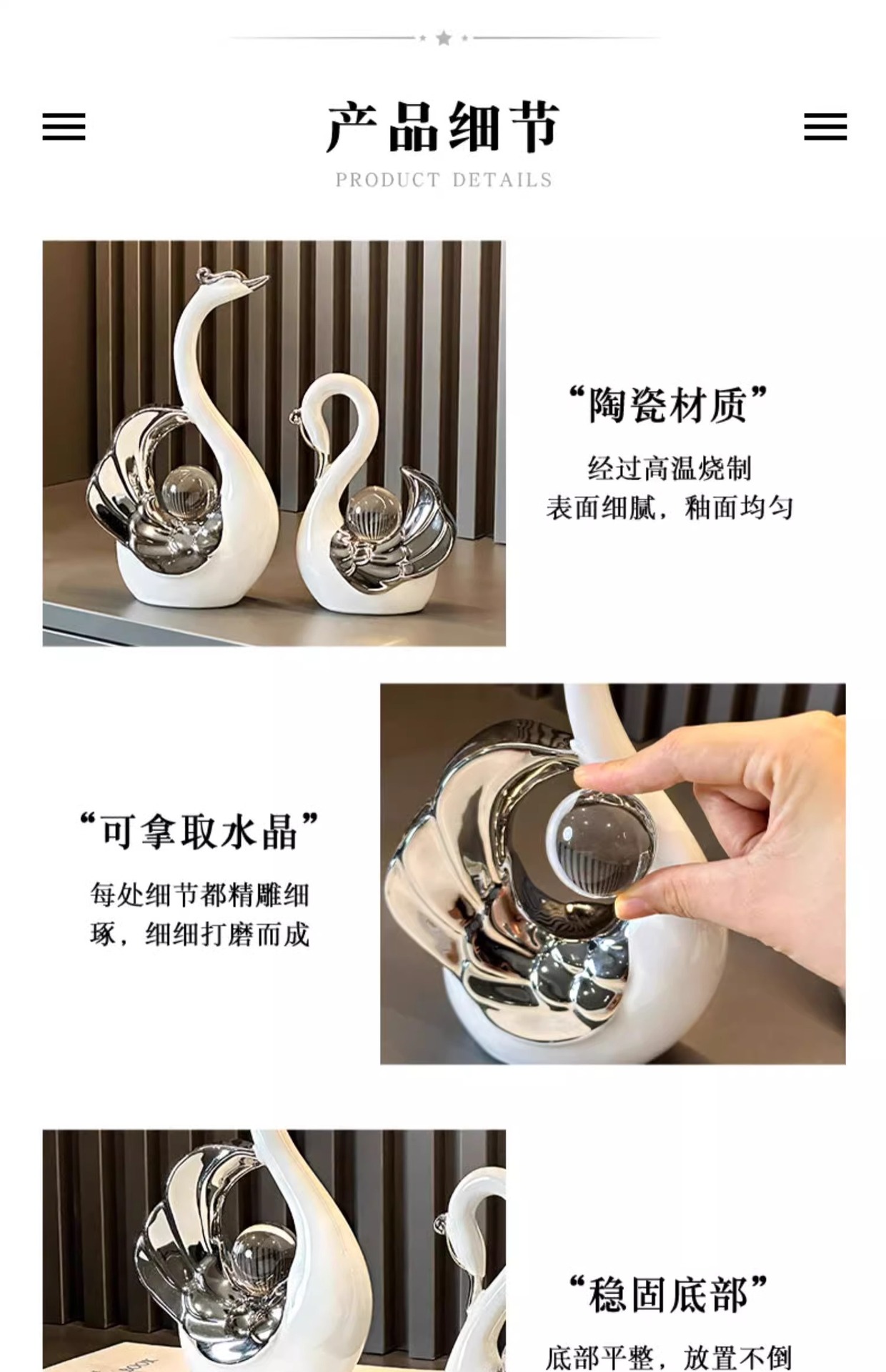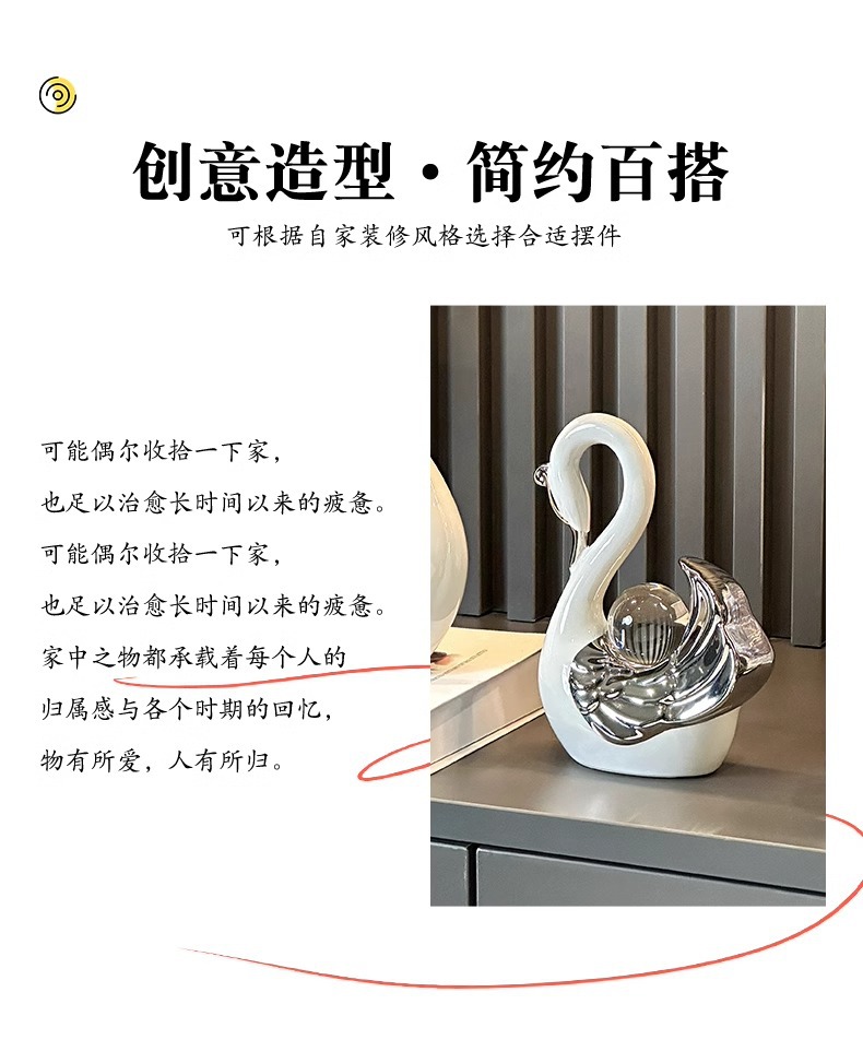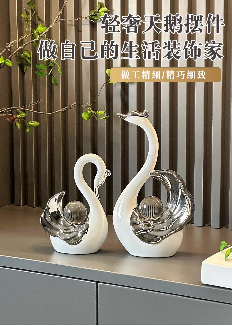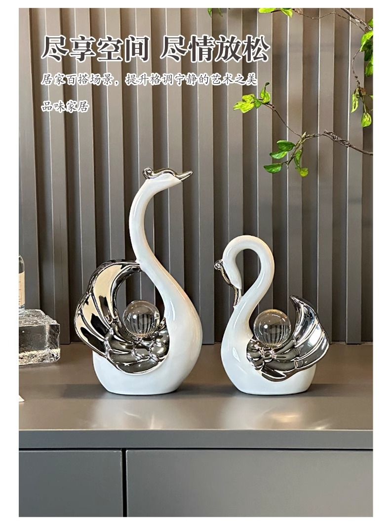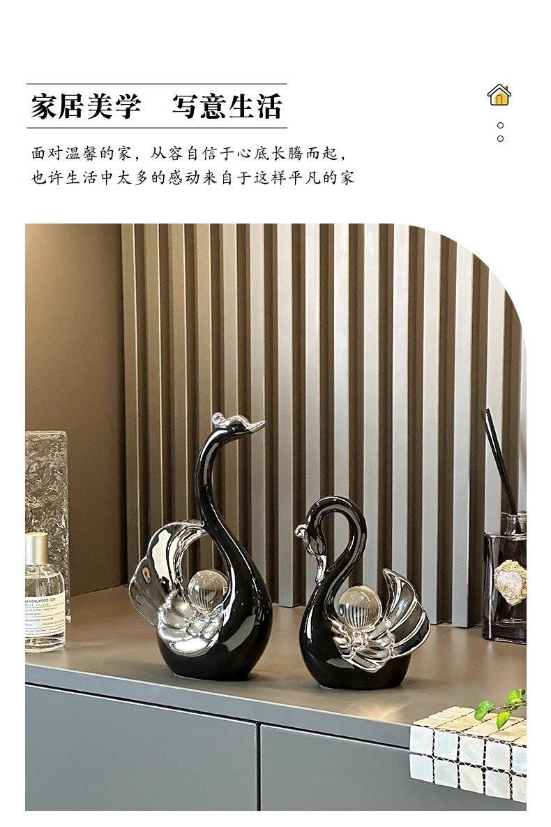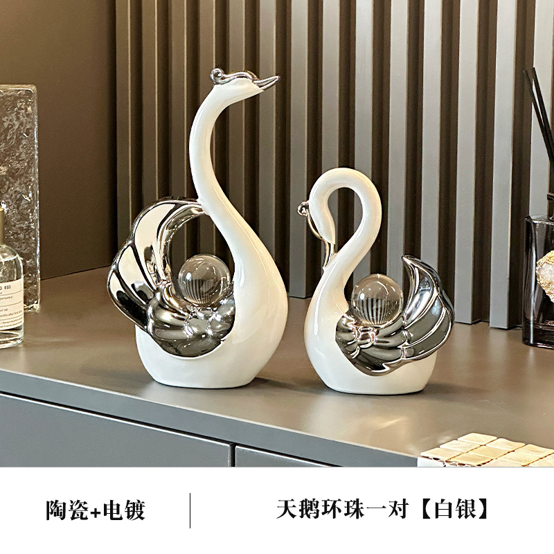 높은 가치의 크리스탈 볼 커플 스완 장식품 현대 빛 럭셔리 홈 입구 거실 와인 캐비닛 TV 캐비닛 장식스토어 가기