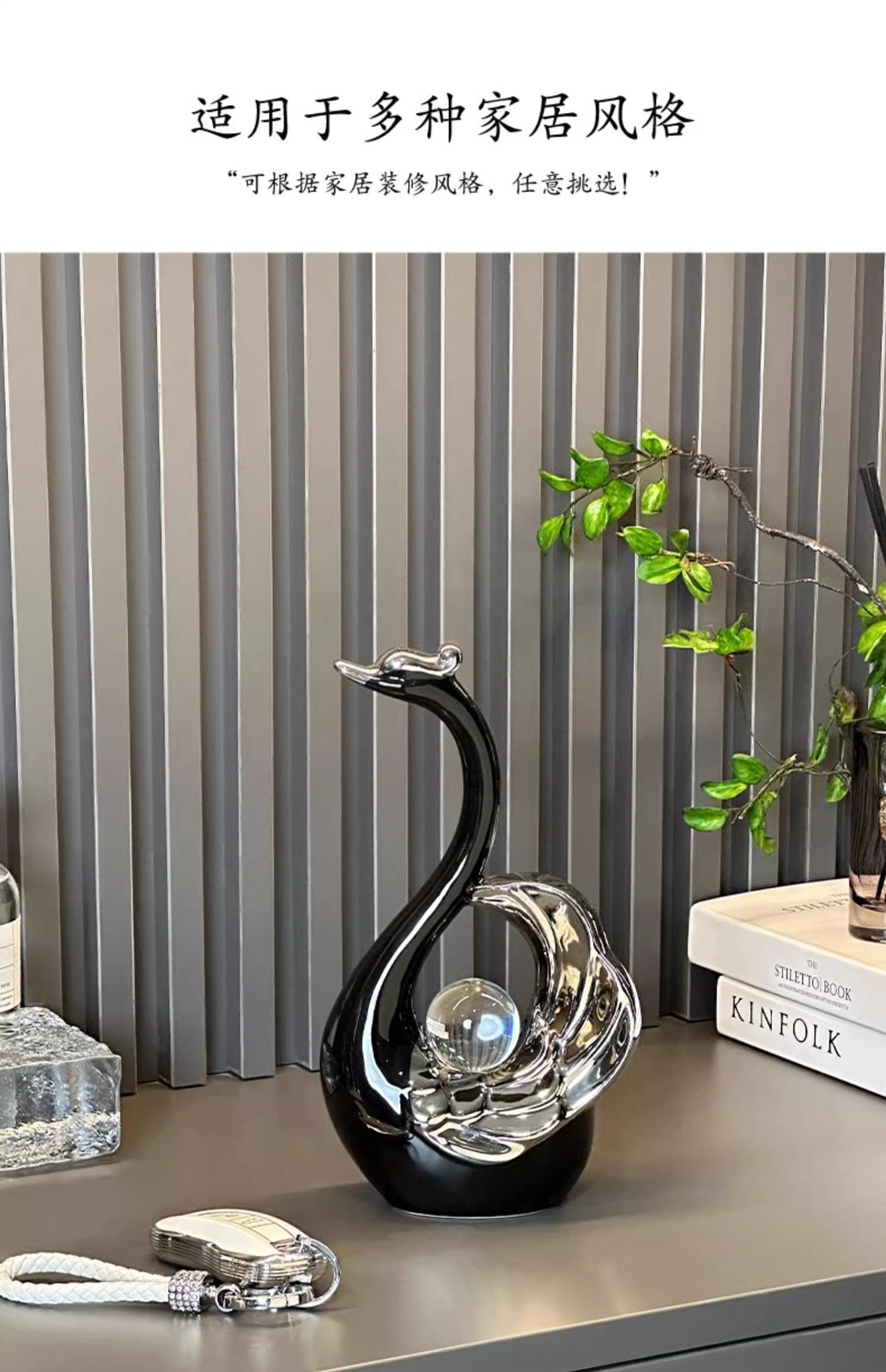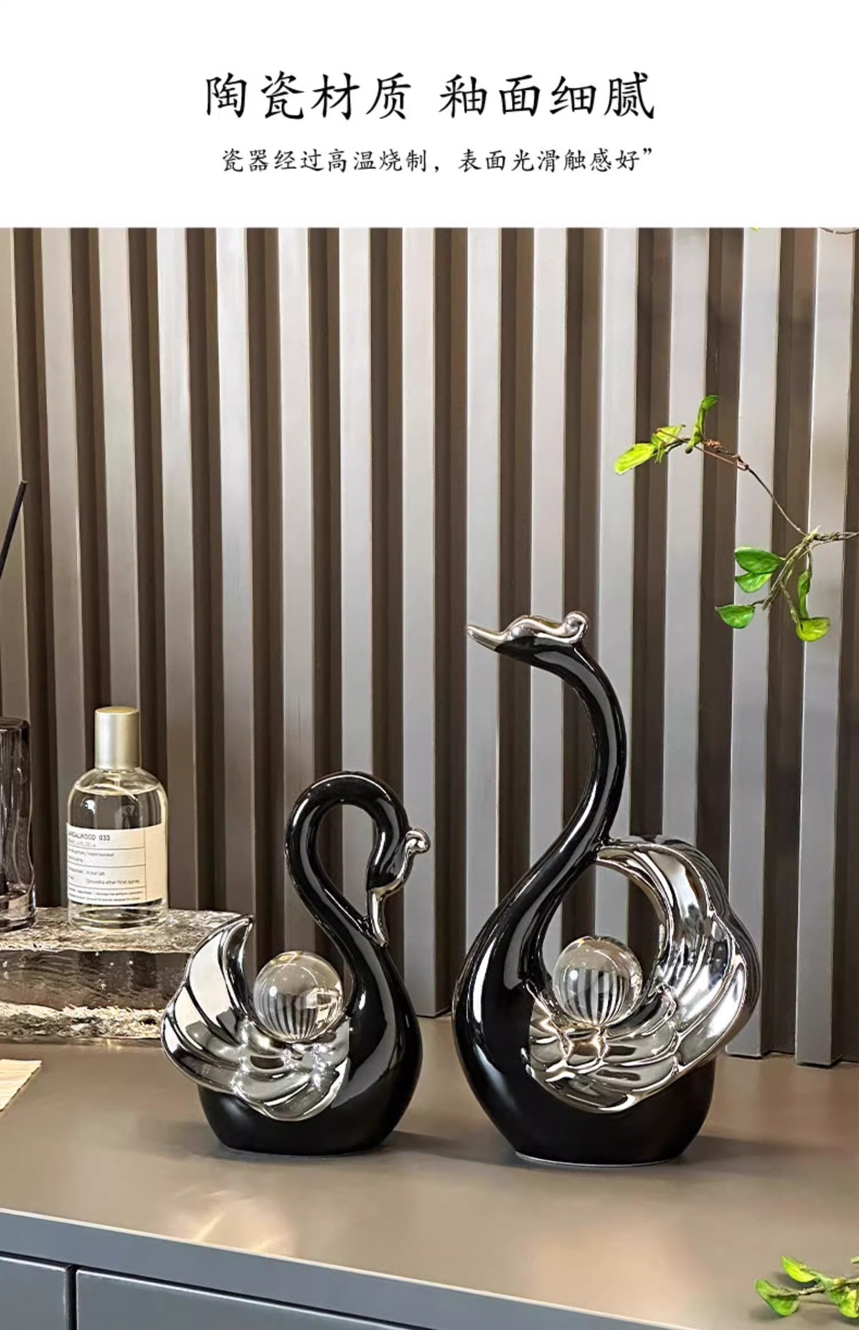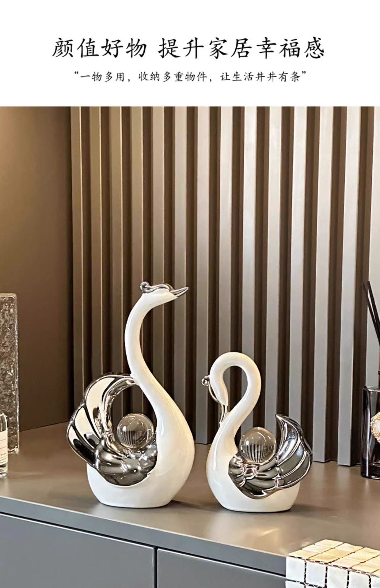 높은 가치의 크리스탈 볼 커플 스완 장식품 현대 빛 럭셔리 홈 입구 거실 와인 캐비닛 TV 캐비닛 장식
