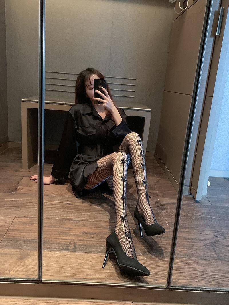 메쉬 매운 소녀 라인 팬티 스타킹 여성 팬티 스타킹 할로우 블랙 보우 다크 섹시 Jk Fishernet 스타킹 인터넷 축하스토어 가기
