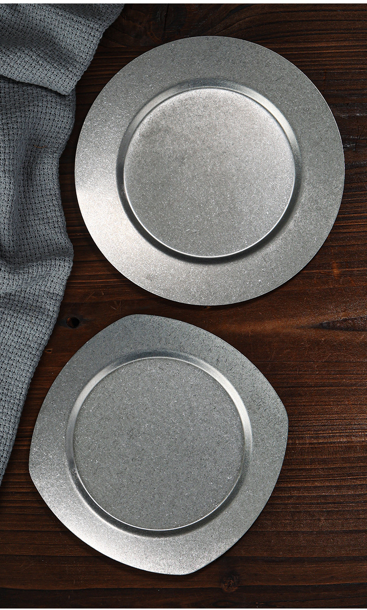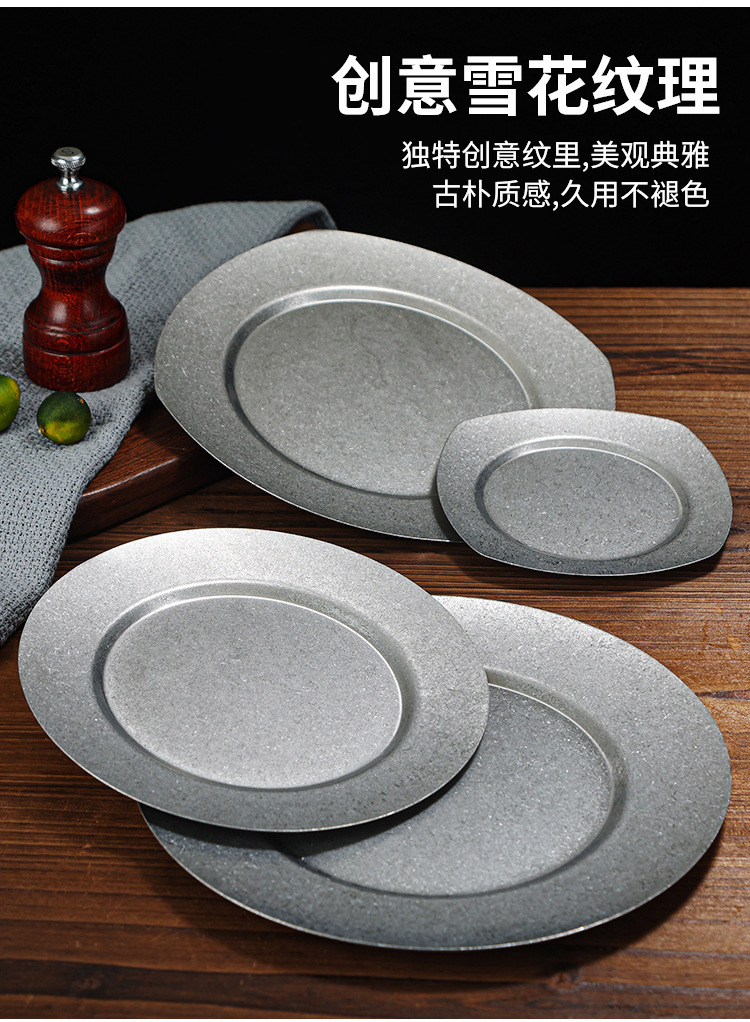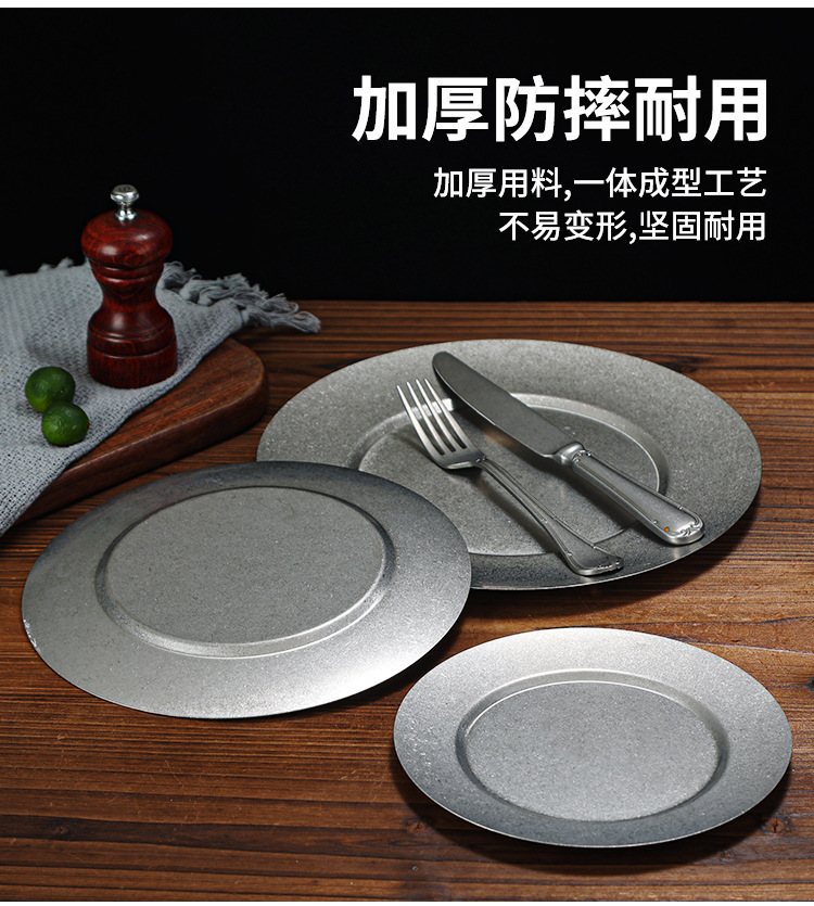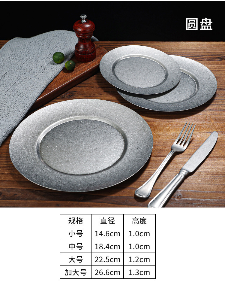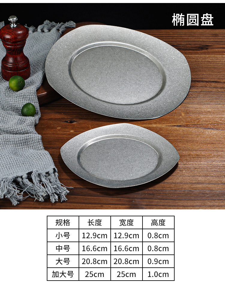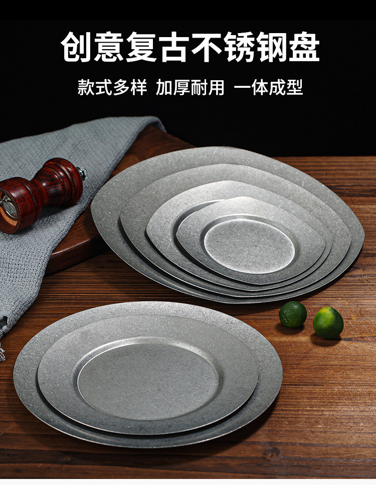 빈티지 일본식 스테인레스 스틸 바베큐 플레이트 사용 접시 카페 스테이크 플레이트 침 뼈 플레이트 얕은 접시 뜨거운 냄비 플레이트 뼈 플레이트스토어 가기
