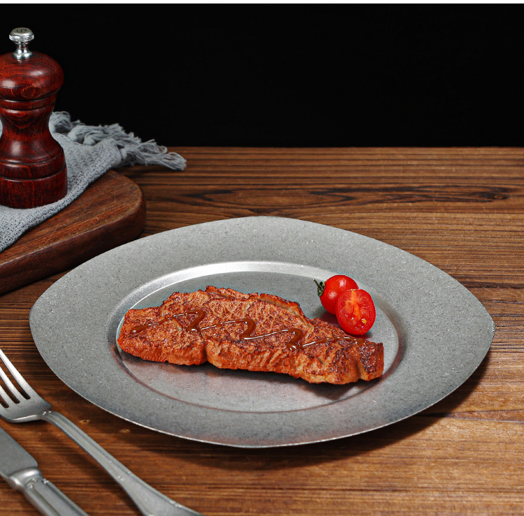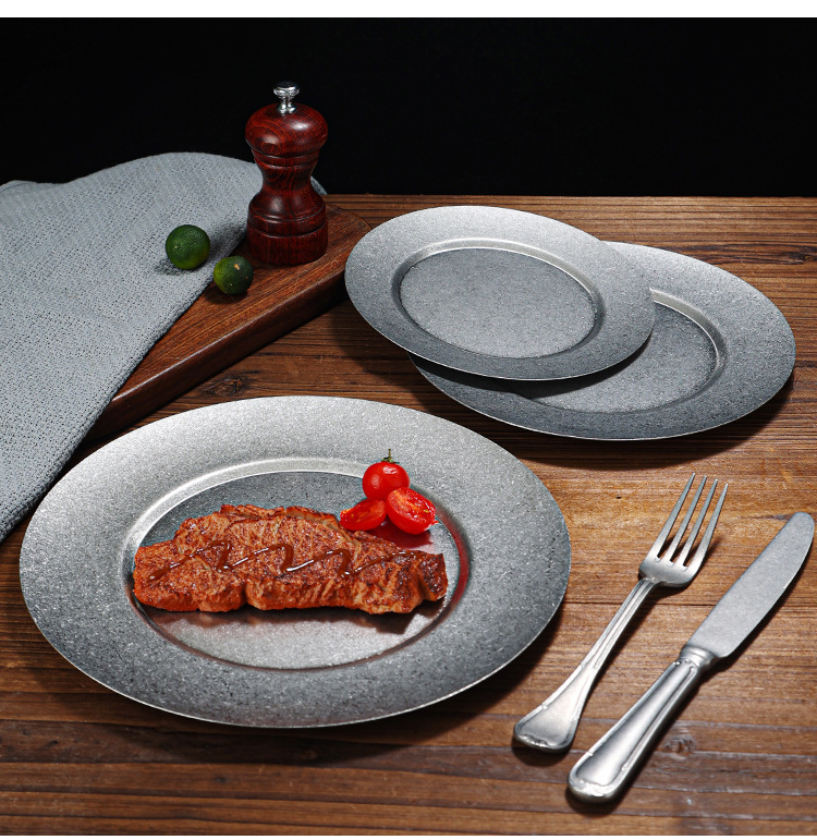 빈티지 일본식 스테인레스 스틸 바베큐 플레이트 사용 접시 카페 스테이크 플레이트 침 뼈 플레이트 얕은 접시 뜨거운 냄비 플레이트 뼈 플레이트