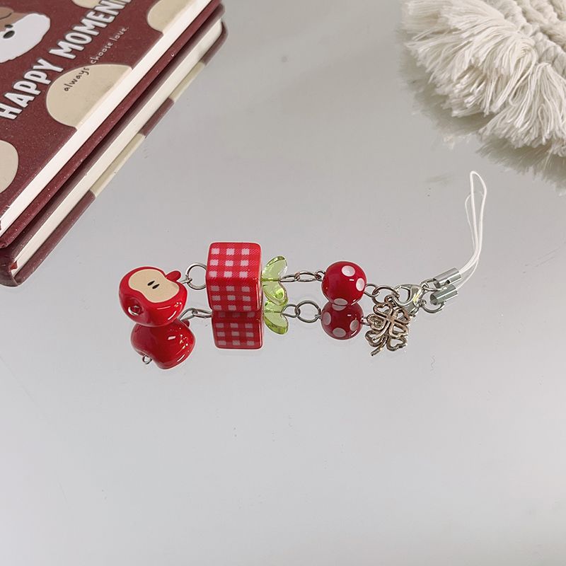 • 붉은 격자 무늬 사각형 사과 네잎 클로버 펜던트