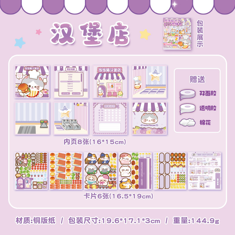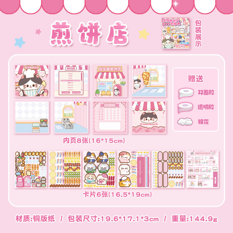 DIY 조용한 책 선물 상자 팬팬 고양이 레스토랑 시리즈 귀여운 스타일 수제 책 어린이 교육 선물 장난감스토어 가기