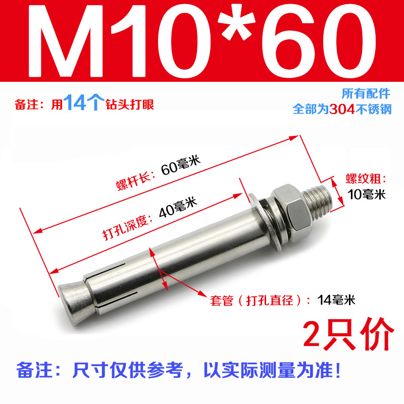 프로모션 304 스테인레스 스틸 확장 나사 확장 볼트 나사 연장 확장 M6M8M10M12스토어 가기