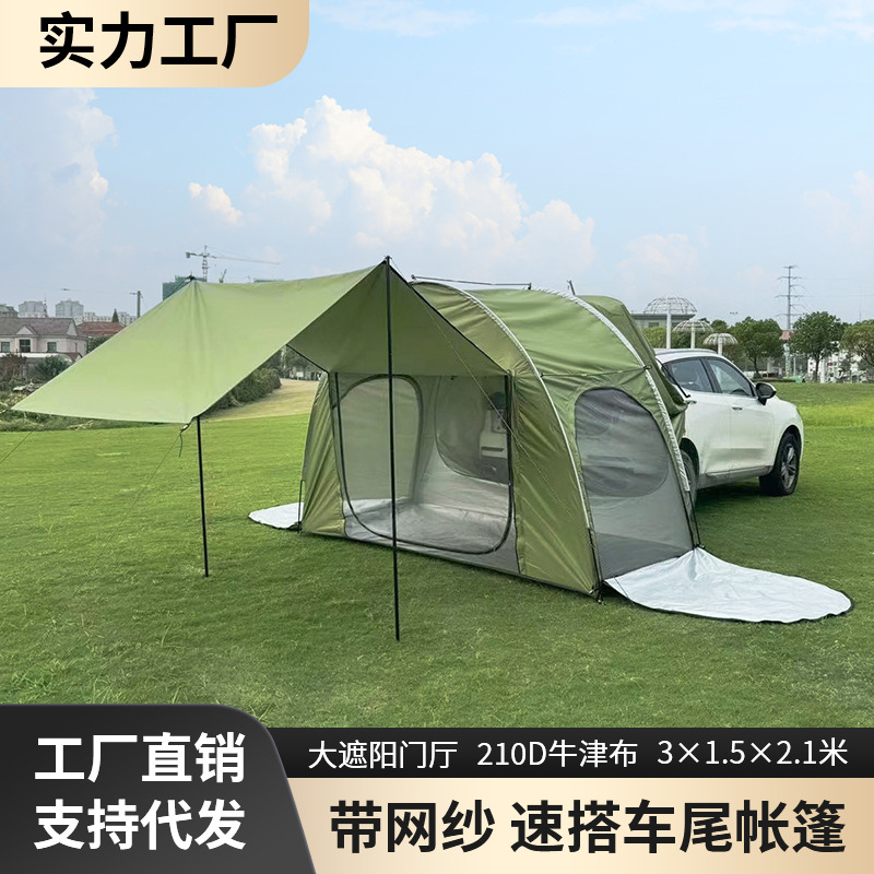 가족용 캠핑카 리어텐트 확장형 텐트, 차량 후면 메쉬망이 있는 전면 텐트, SUV용 방수 내구성 텐트