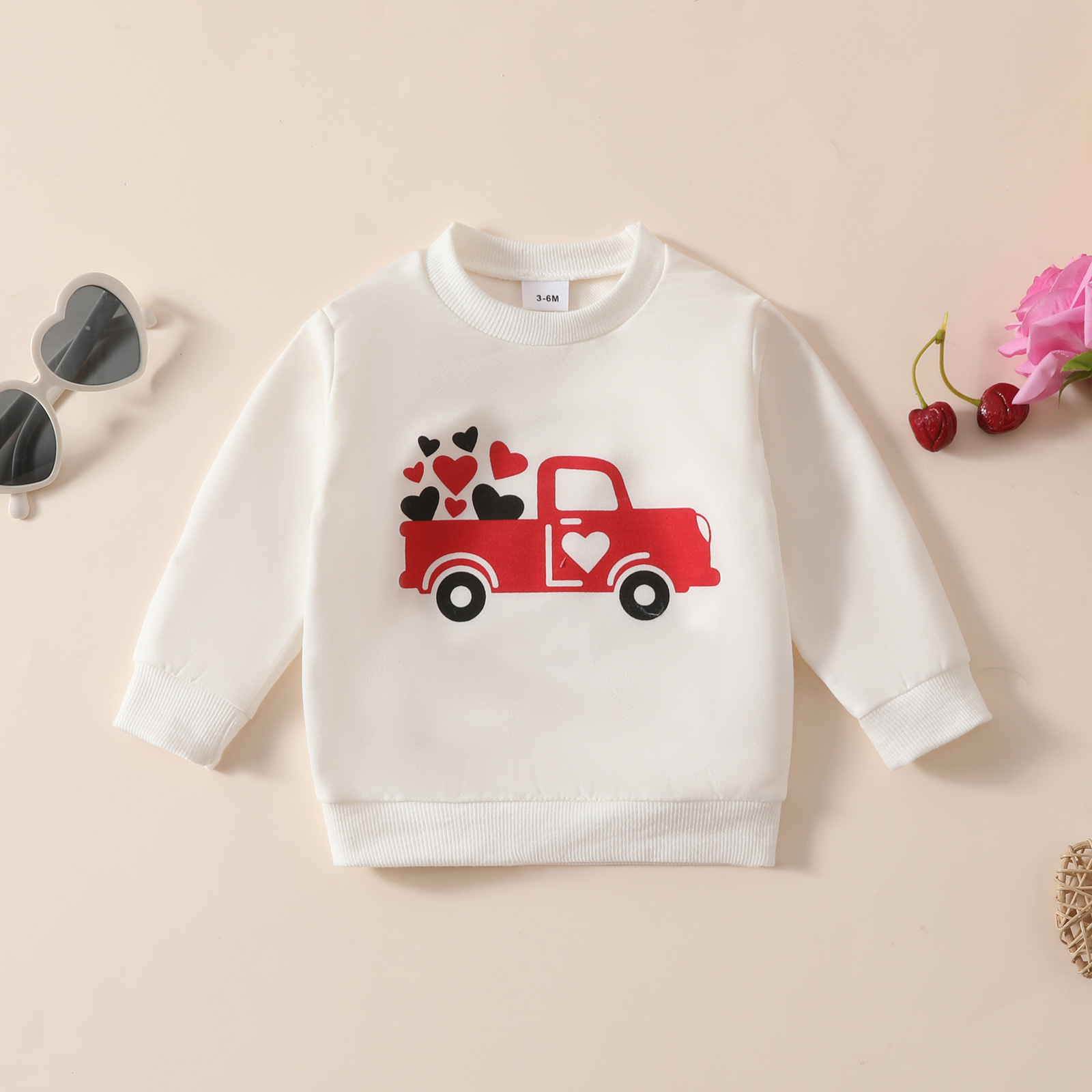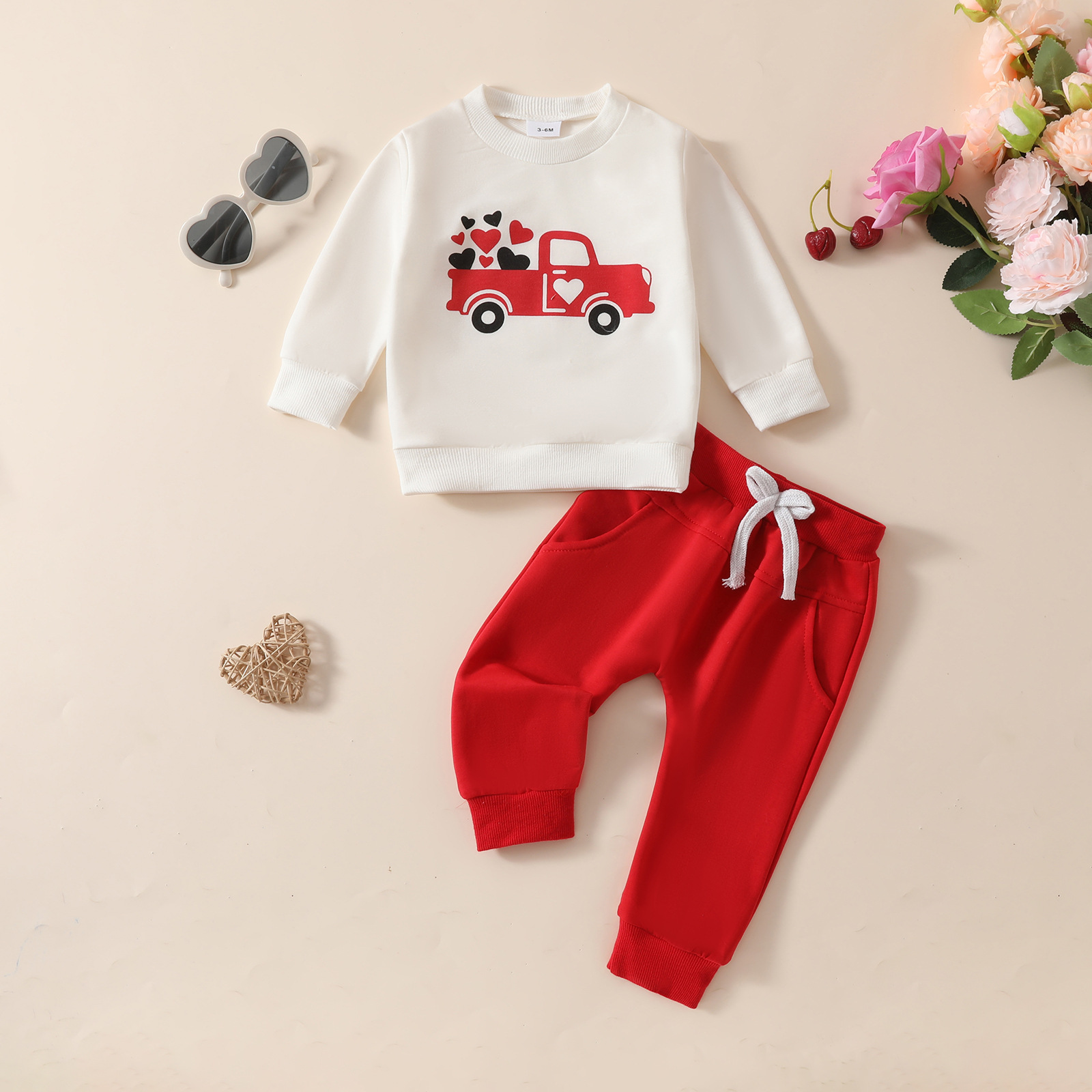 발렌타인 데이 새 자동차 인쇄 긴 소매 땀 바지 투피스 세트 소년의 봄 사랑 인쇄 어린이 세트스토어 가기