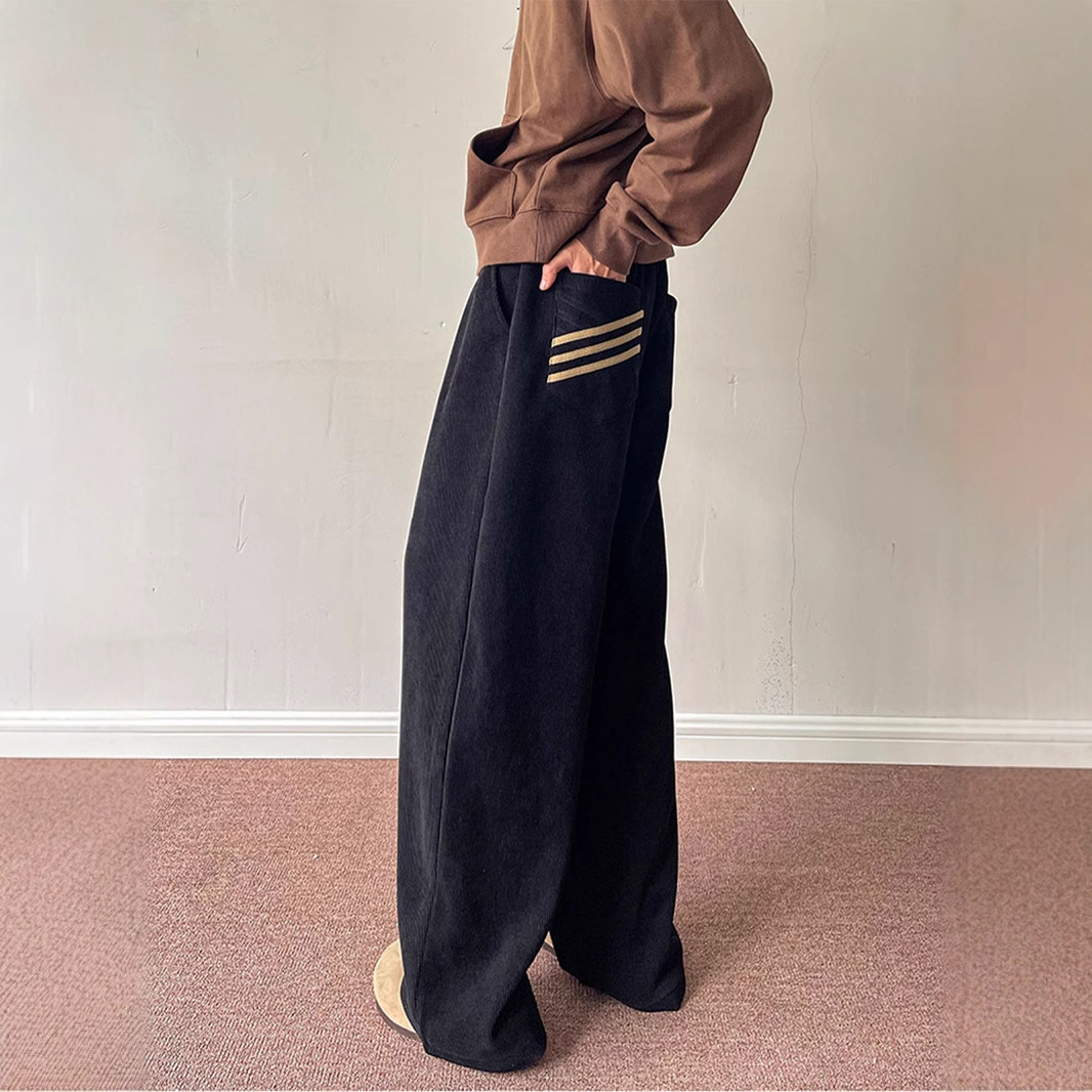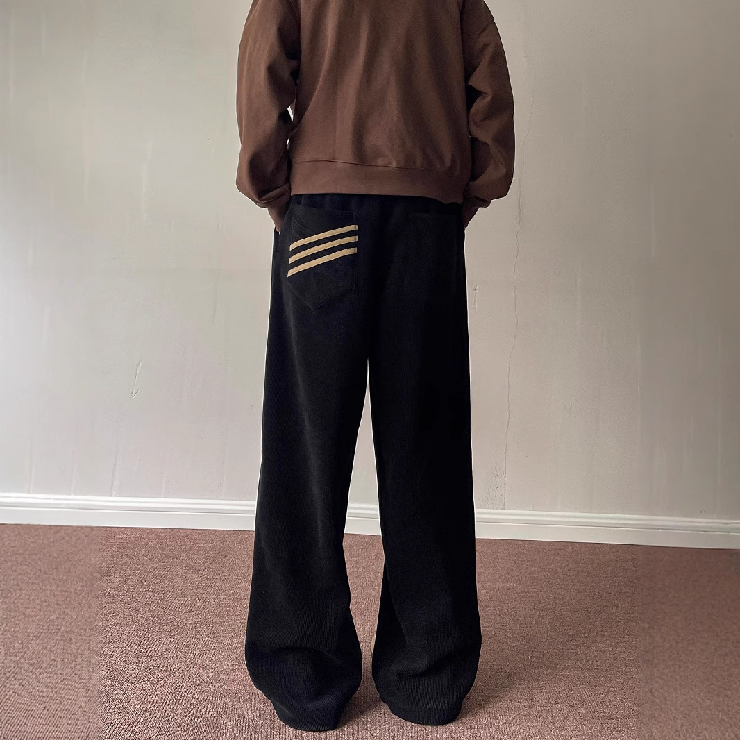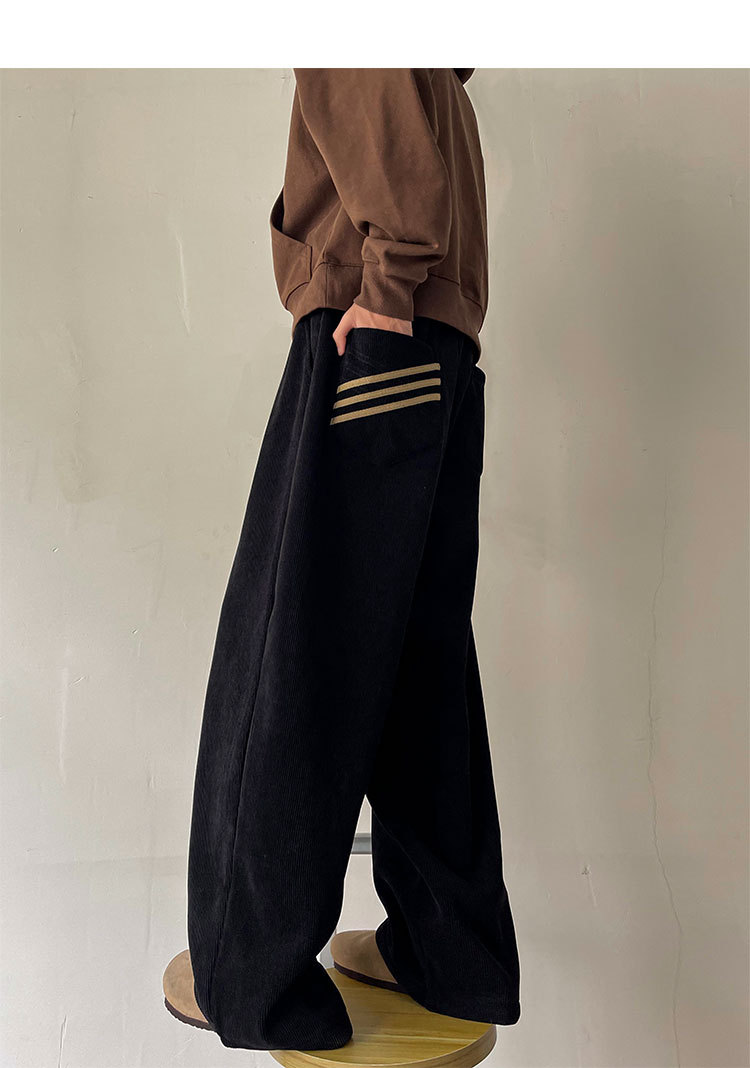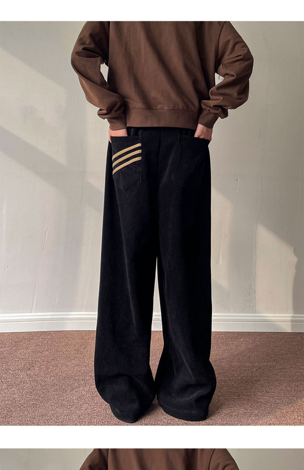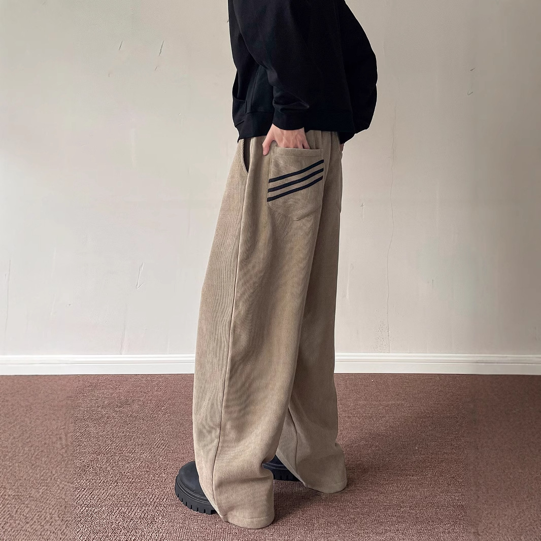기모 코듀로이 캐주얼 긴 바지 남자 가을과 겨울 미국 스타일 스트레이트 느슨한 넓은 다리 Chenille 스포츠 바지