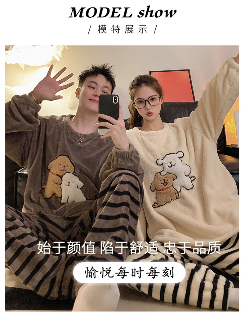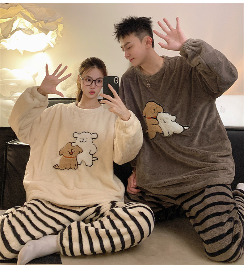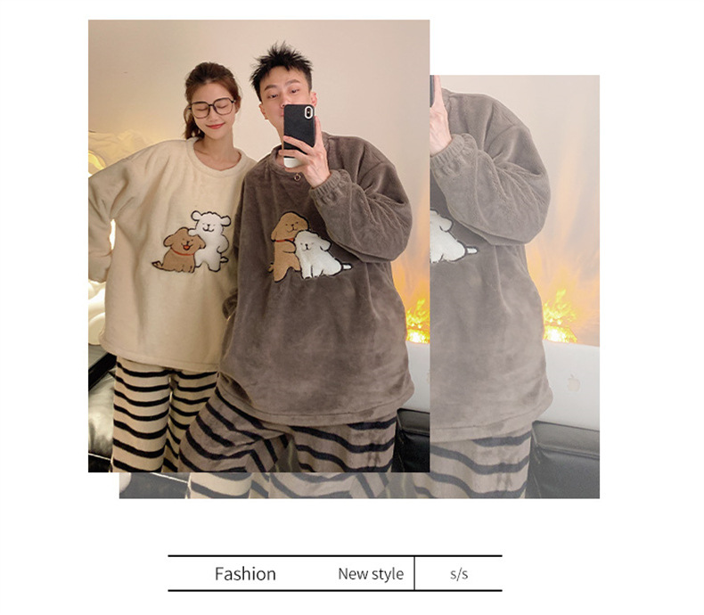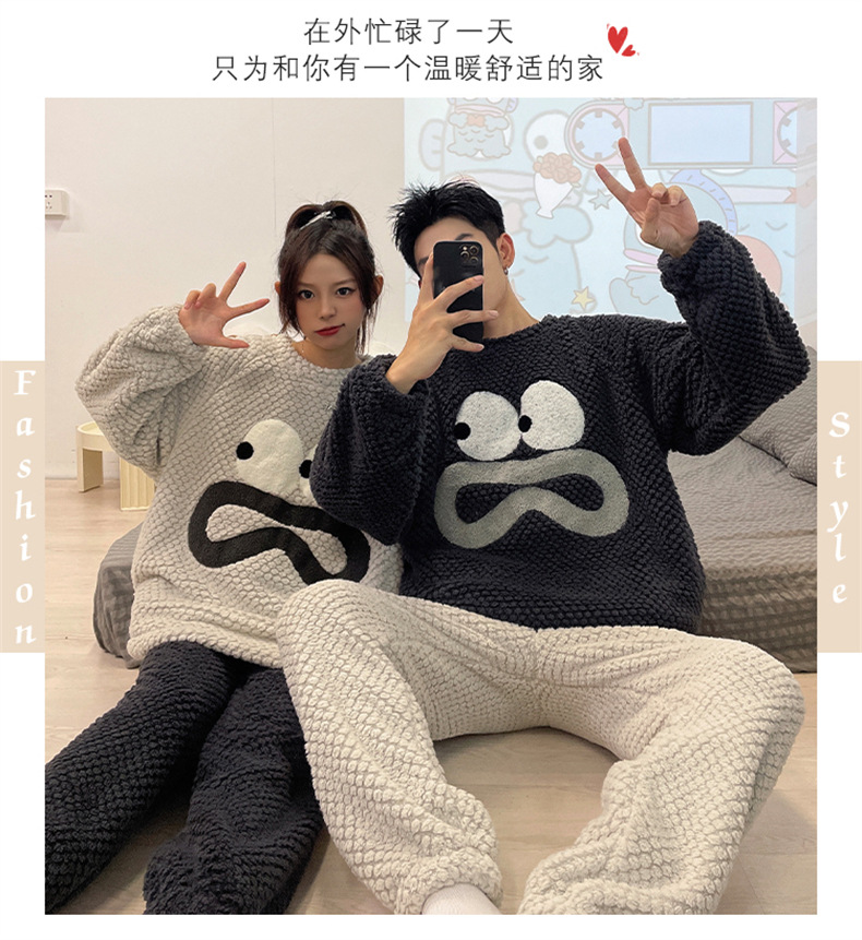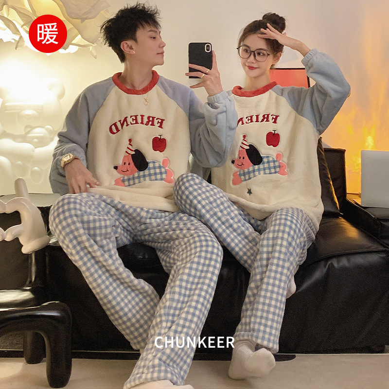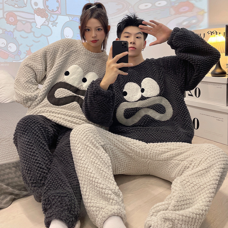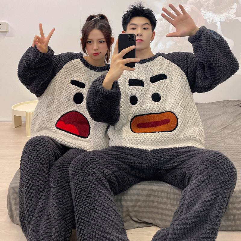 커플 잠옷 여성용 가을 겨울 산호 벨벳 두꺼운 만화 캐릭터 외출 가능 캐주얼 따뜻한 홈웨어 세트 겨울용스토어 가기