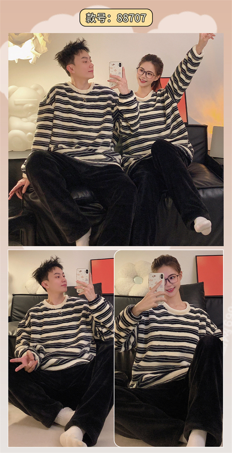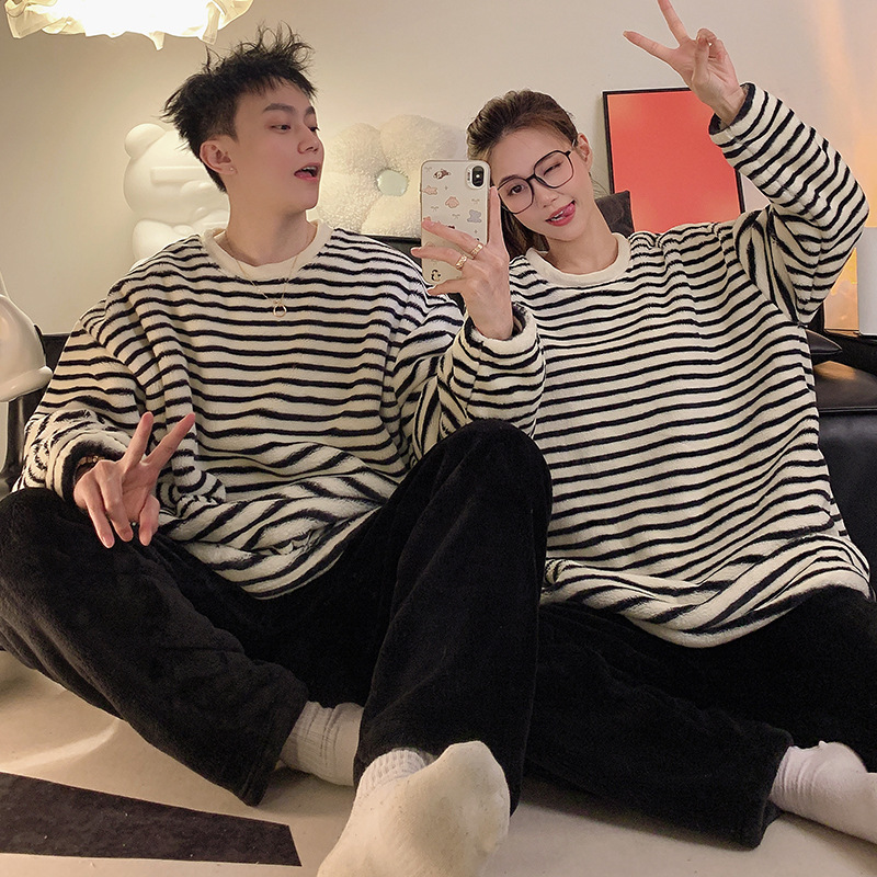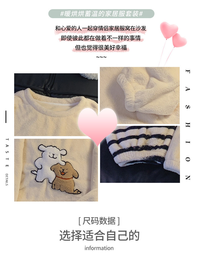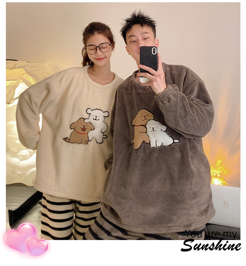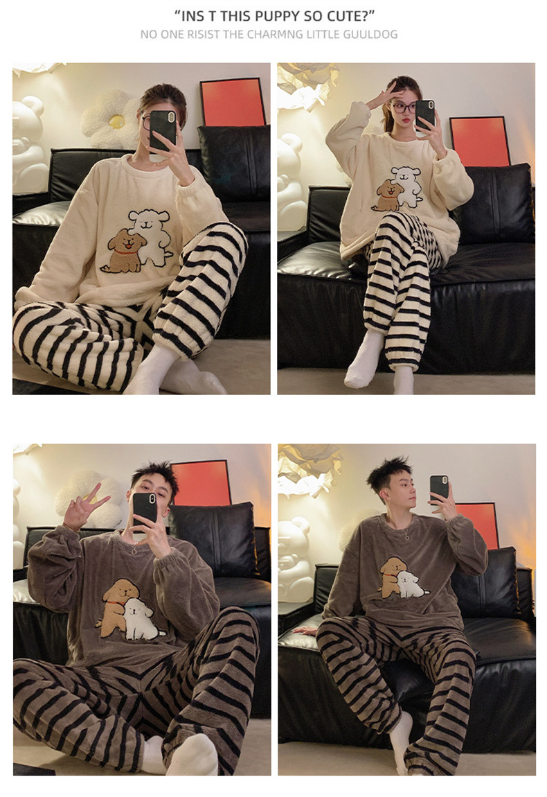 커플 잠옷 여성용 가을 겨울 산호 벨벳 두꺼운 만화 캐릭터 외출 가능 캐주얼 따뜻한 홈웨어 세트 겨울용스토어 가기