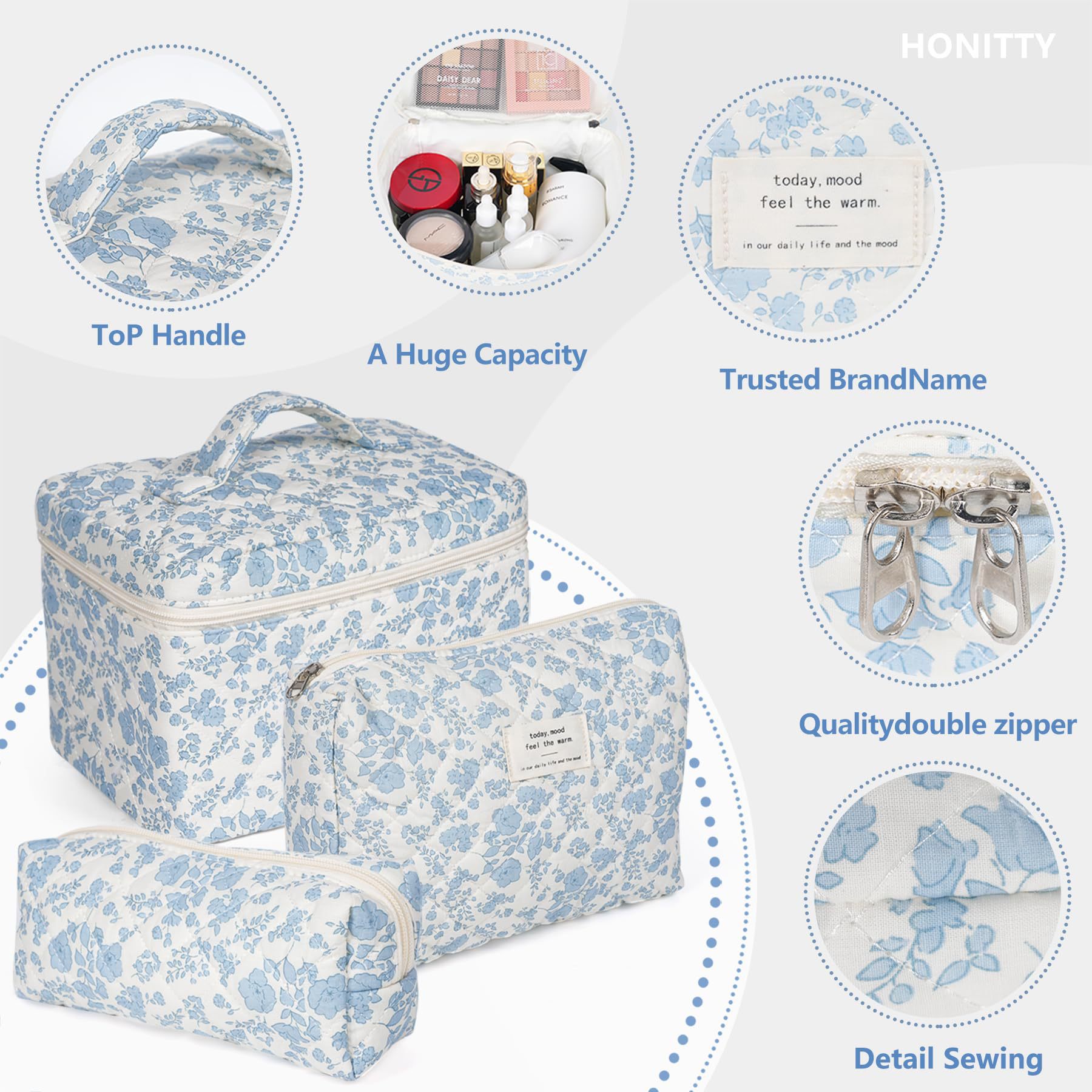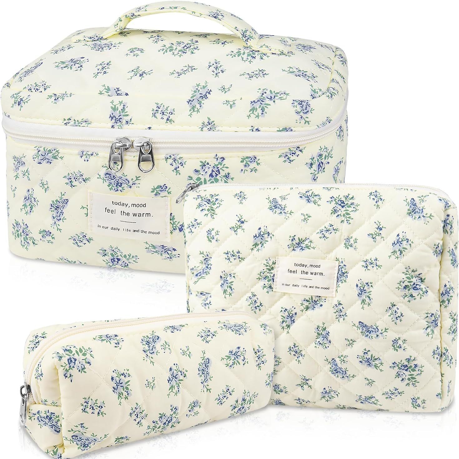 여성용 대형 여행 퀼트 화장품 가방 면화 화장품 가방 미적 꽃 여행 화장실 보관 가방 가방스토어 가기