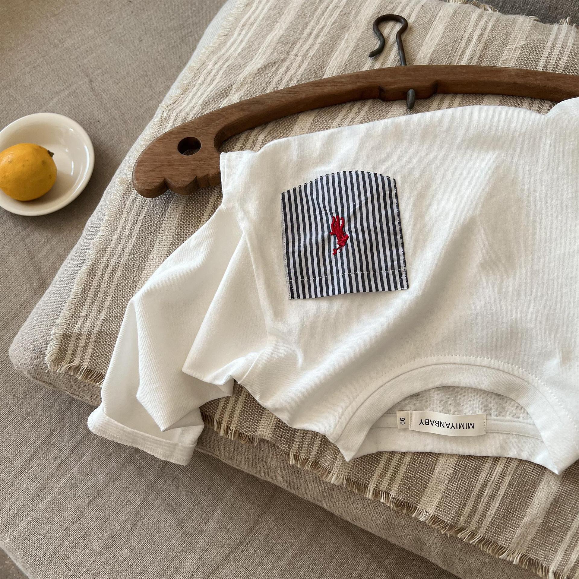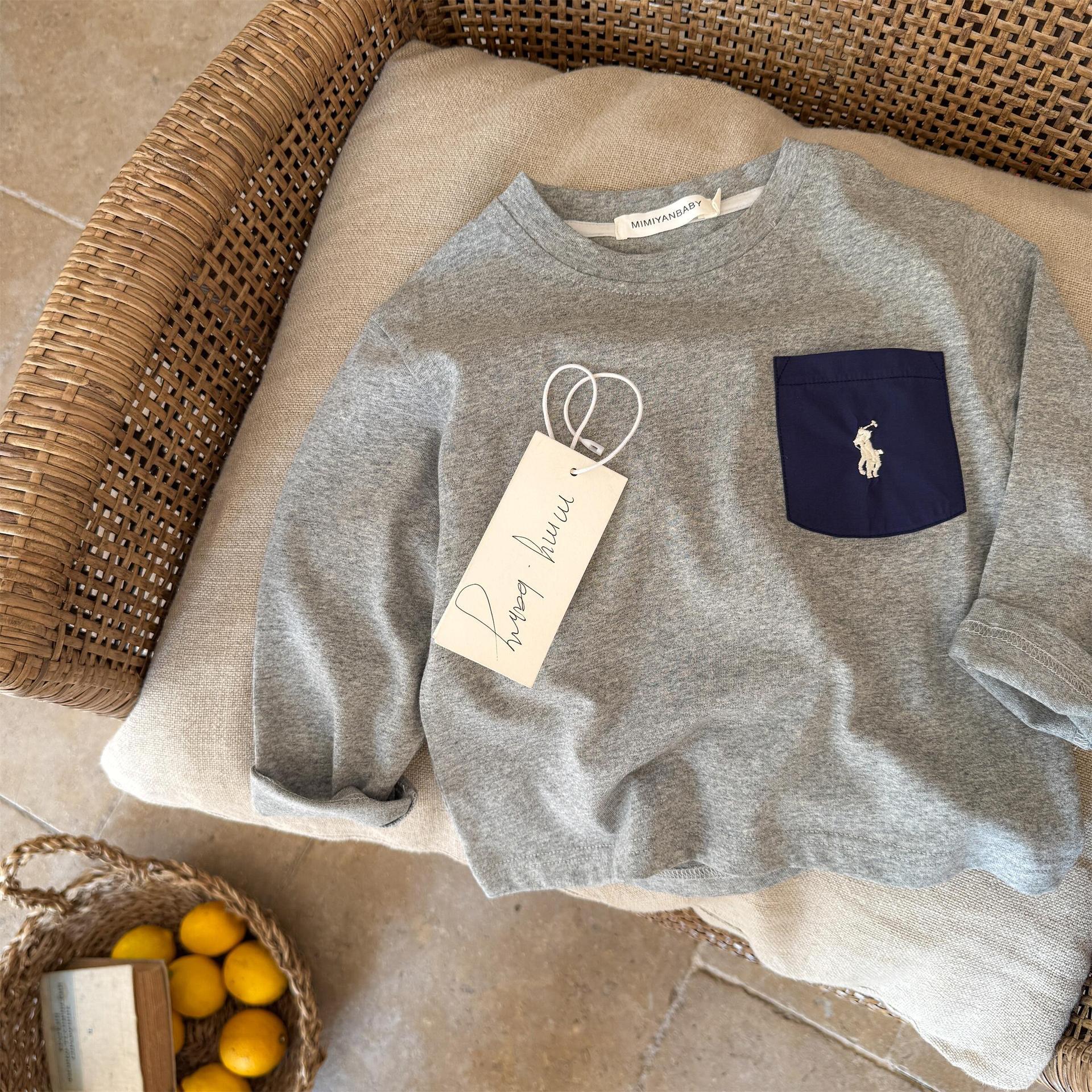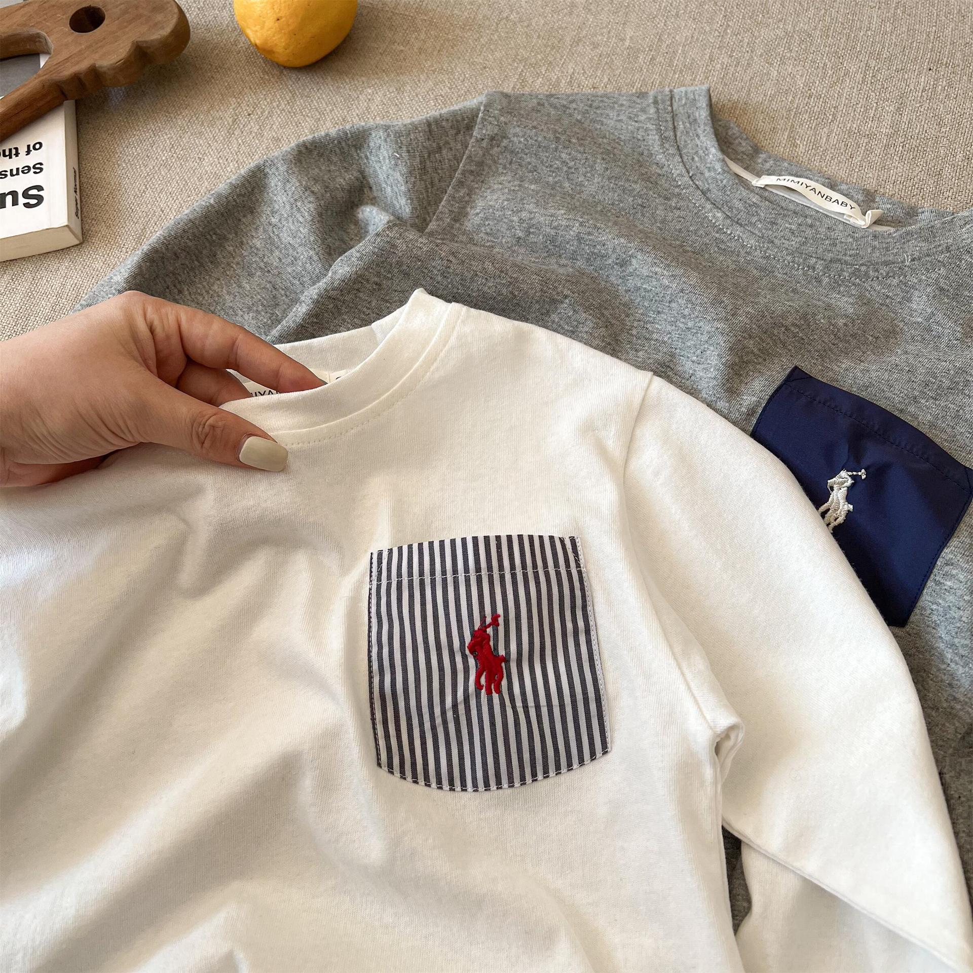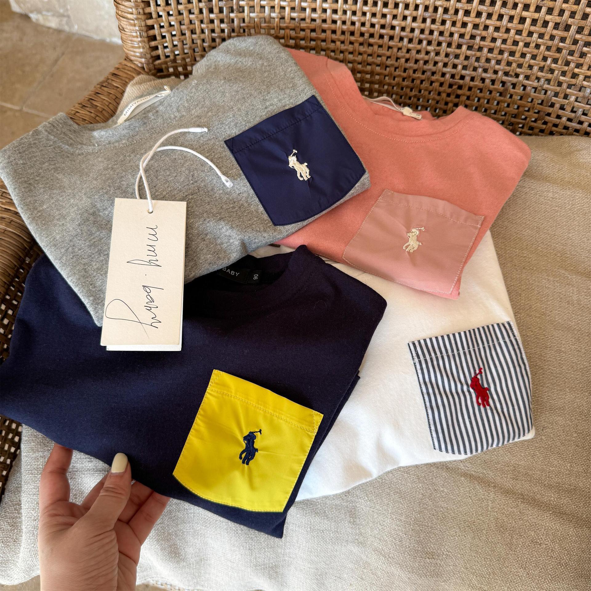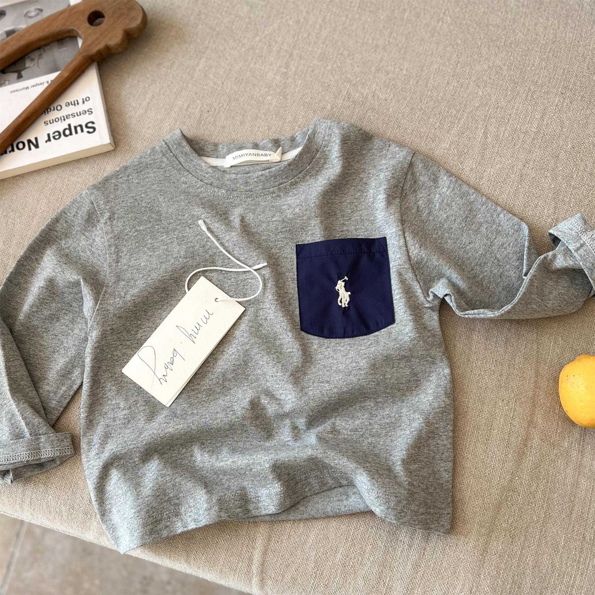 재고 어린이 티셔츠 2025 봄 새로운 남녀 아동복 컬러 포켓 베이스 셔츠 아기 올 매치 티셔츠 조수스토어 가기