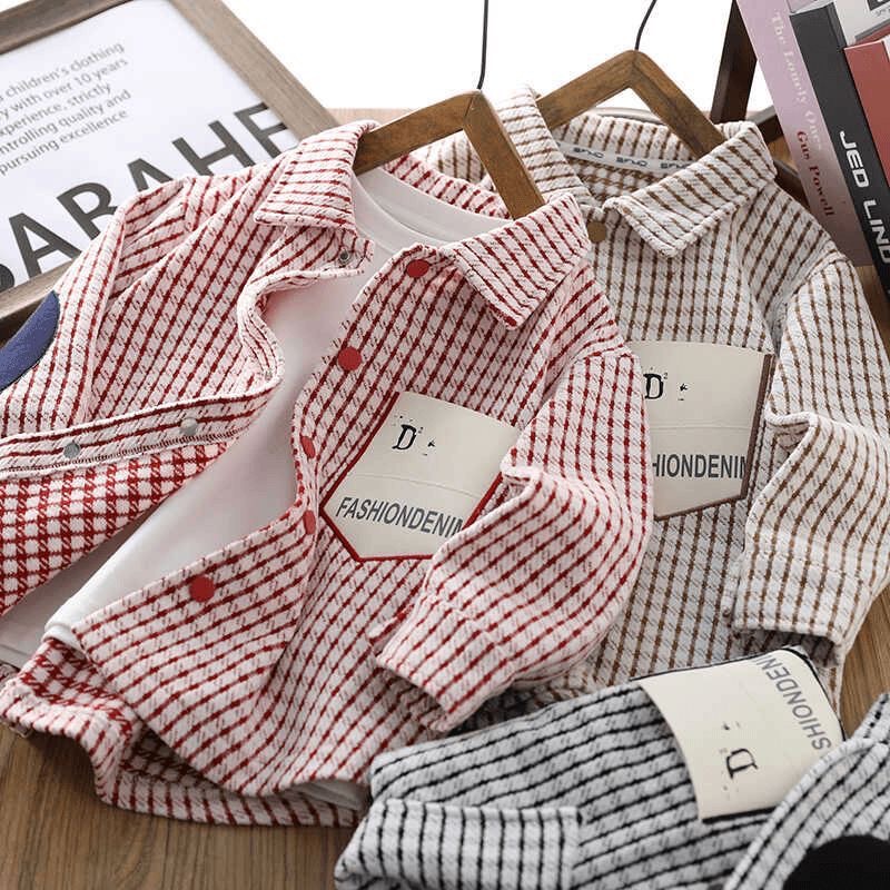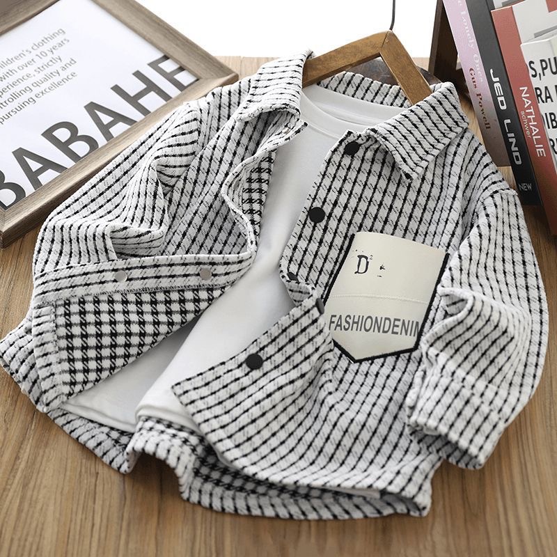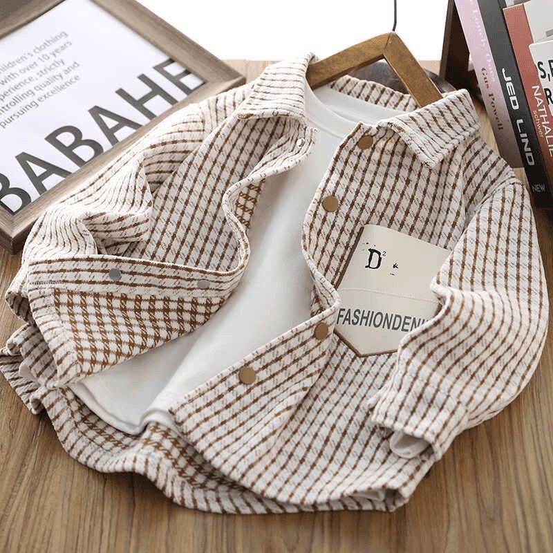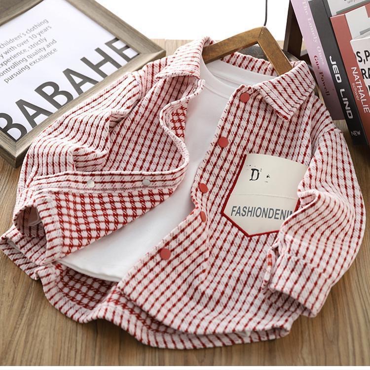 소년 격자 무늬 셔츠 긴팔 가을 코트 2024 봄과 가을 새로운 어린이 잘 생긴 셔츠 서양식 캐주얼 코트스토어 가기