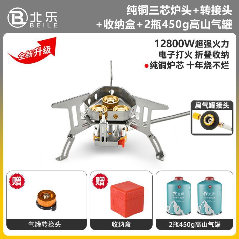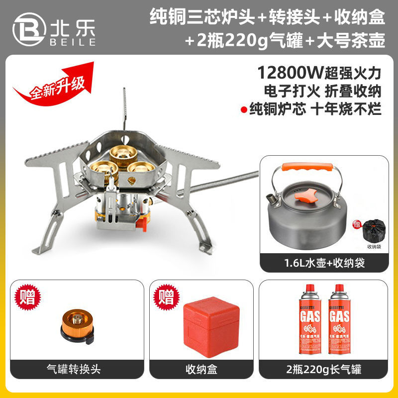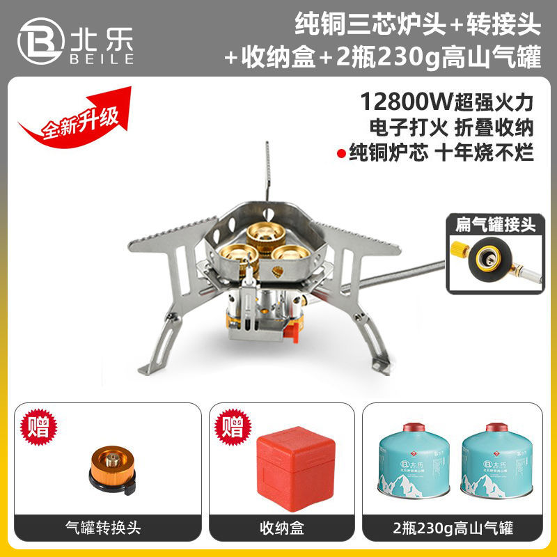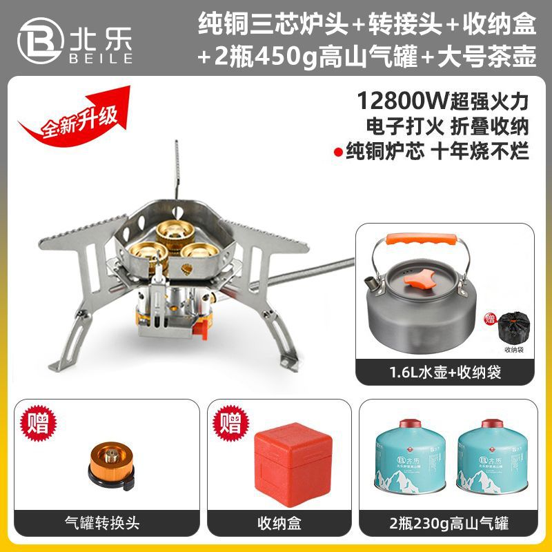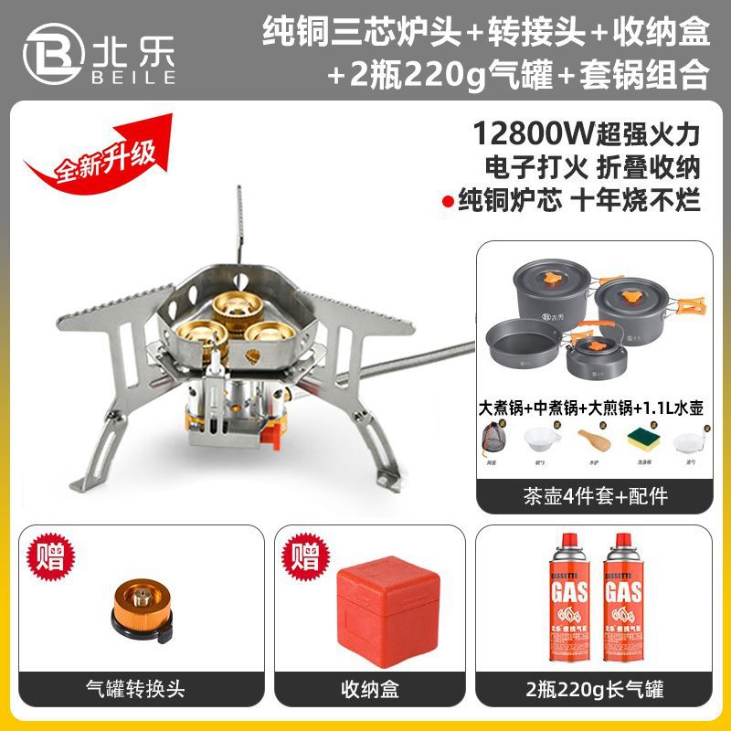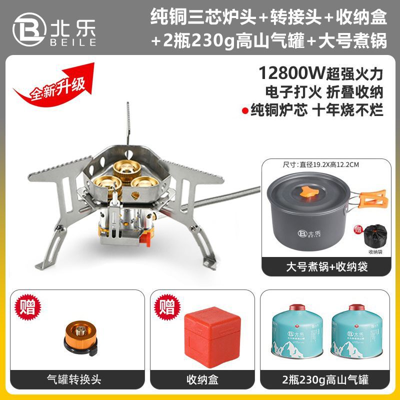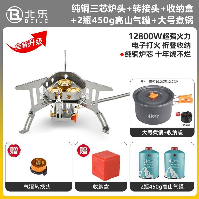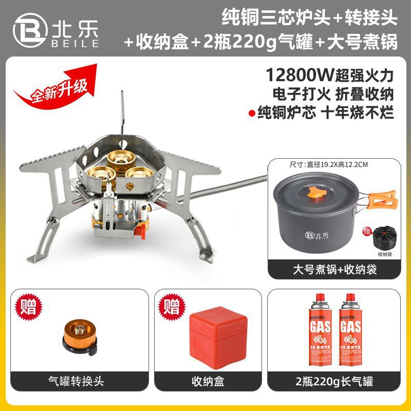 • 고에너지 3구 스토브 [수납 + 변환 헤드] + 고가스 2개 + 라면 냄비 [12800W 순수 구리 버전/무료 접이식 보관] 3코어 버너