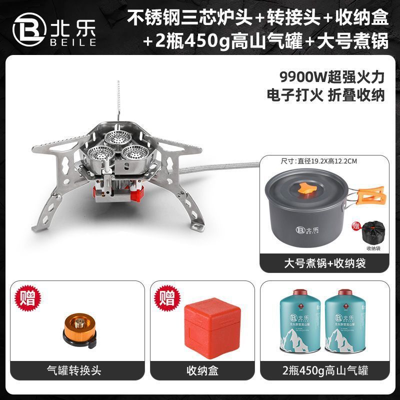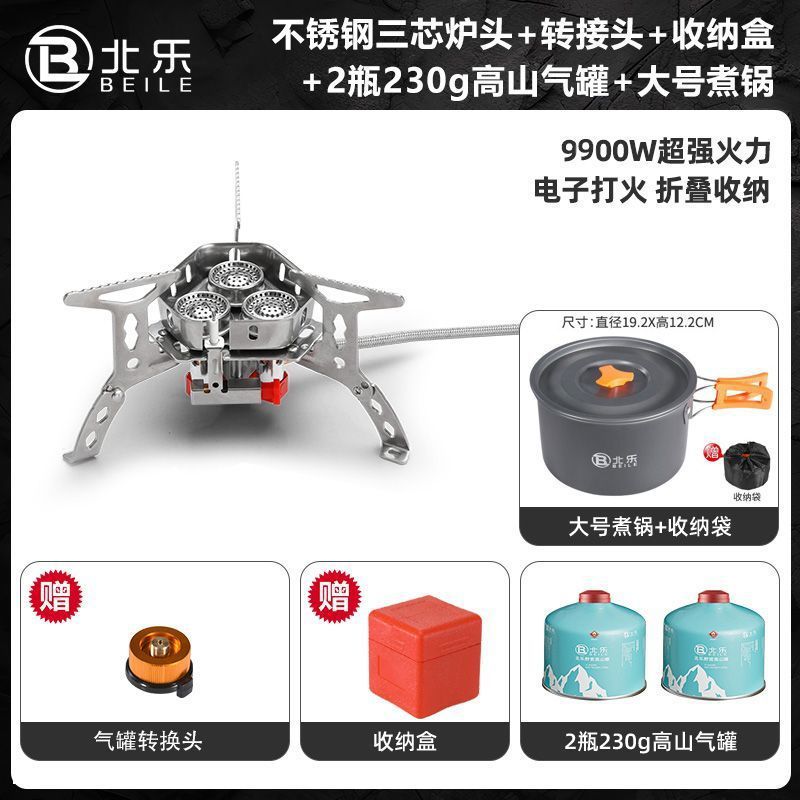• 고에너지 3구 스토브 [보관+변환 헤드] + 고가스 2개 + 라면 냄비 [9900W 일반 스테인레스 스틸 버전] 3코어 버너