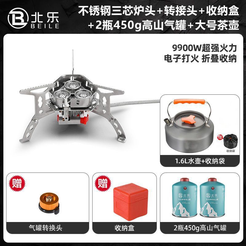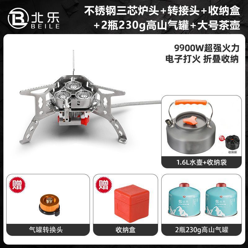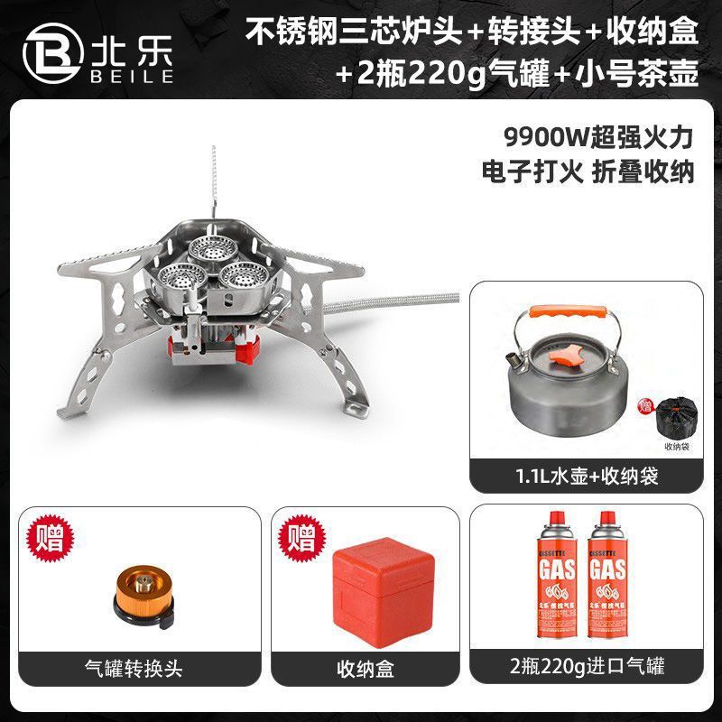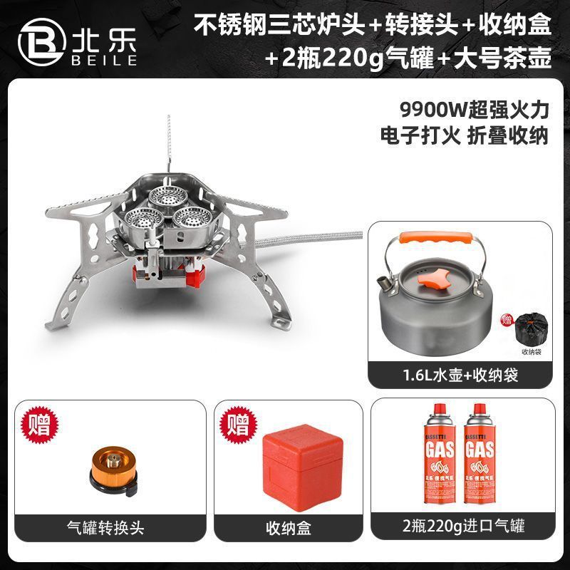 • 고에너지 3헤드 스토브 [보관+변환 헤드] + 고가스 2개 + 대형 찻주전자 [9900W 일반 스테인레스 스틸 버전] 3코어 버너