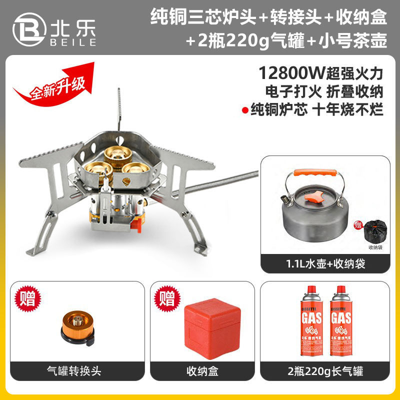 • 고에너지 3헤드 스토브 [저장 + 컨버터 헤드] + 고가스 2개 + 대형 찻주전자 [12800W 순수 구리 버전/무료 접이식 보관함] 3코어 버너