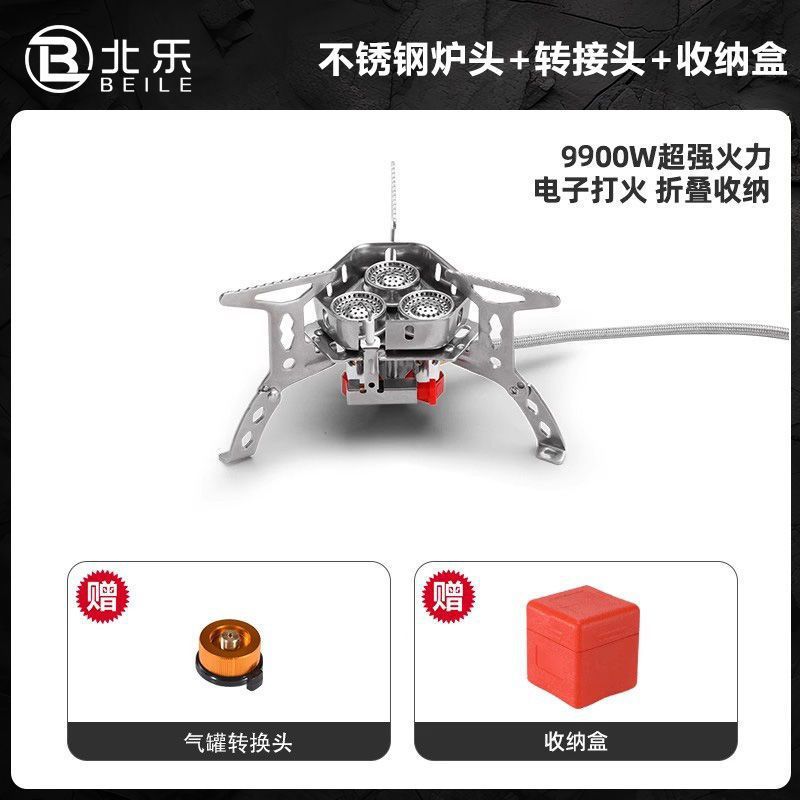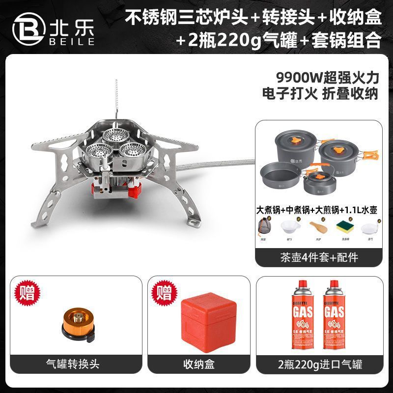 • 고에너지 3헤드 스토브 [저장 + 컨버터 헤드] + 가스 2개 + 냄비 풀 세트 [9900W 일반 스테인레스 스틸 버전] 3코어 버너