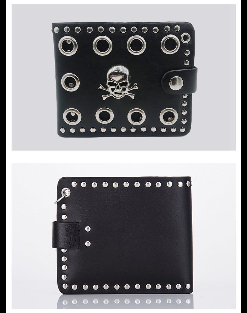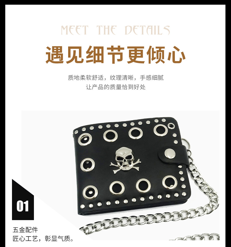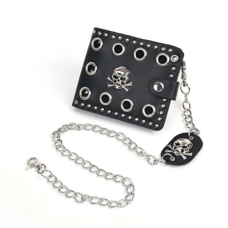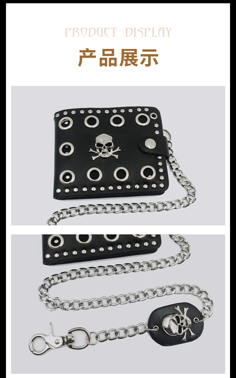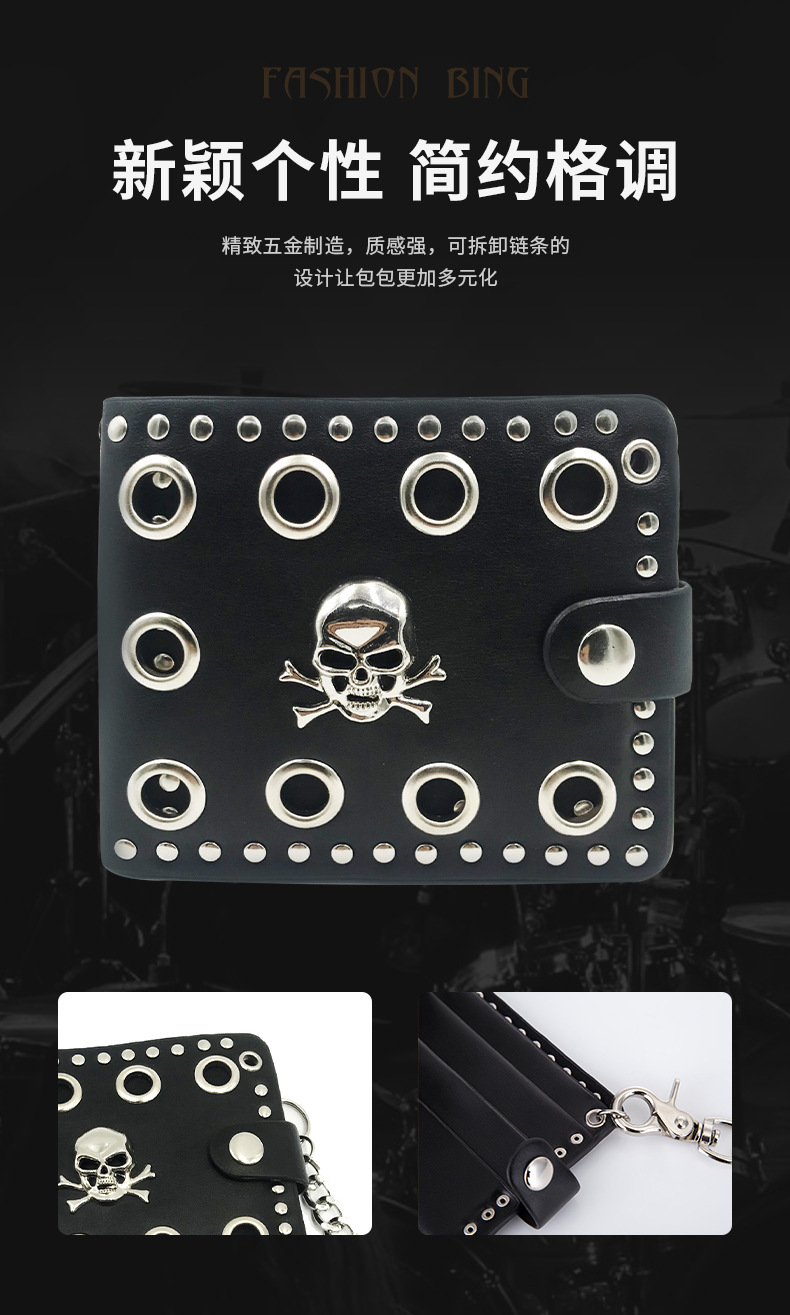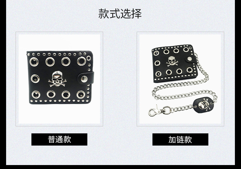 아마존 재고 콜라 지갑 해골 펑크 남자 지갑 체인 도난 방지 브러시 지갑