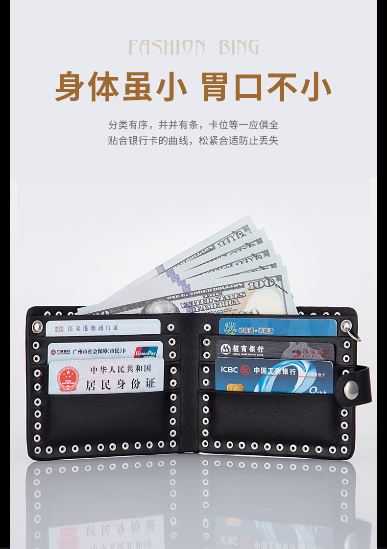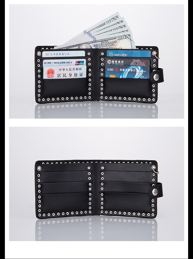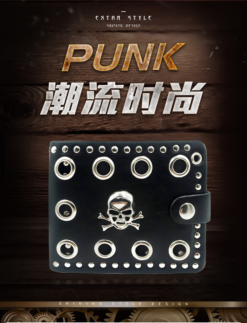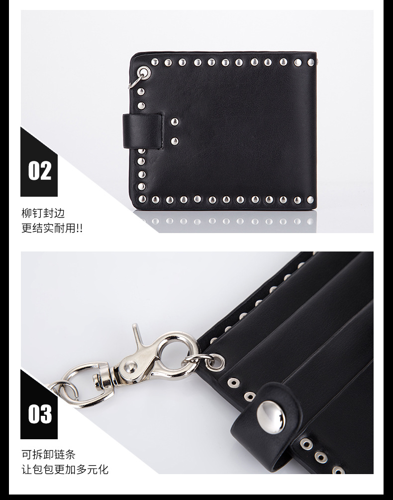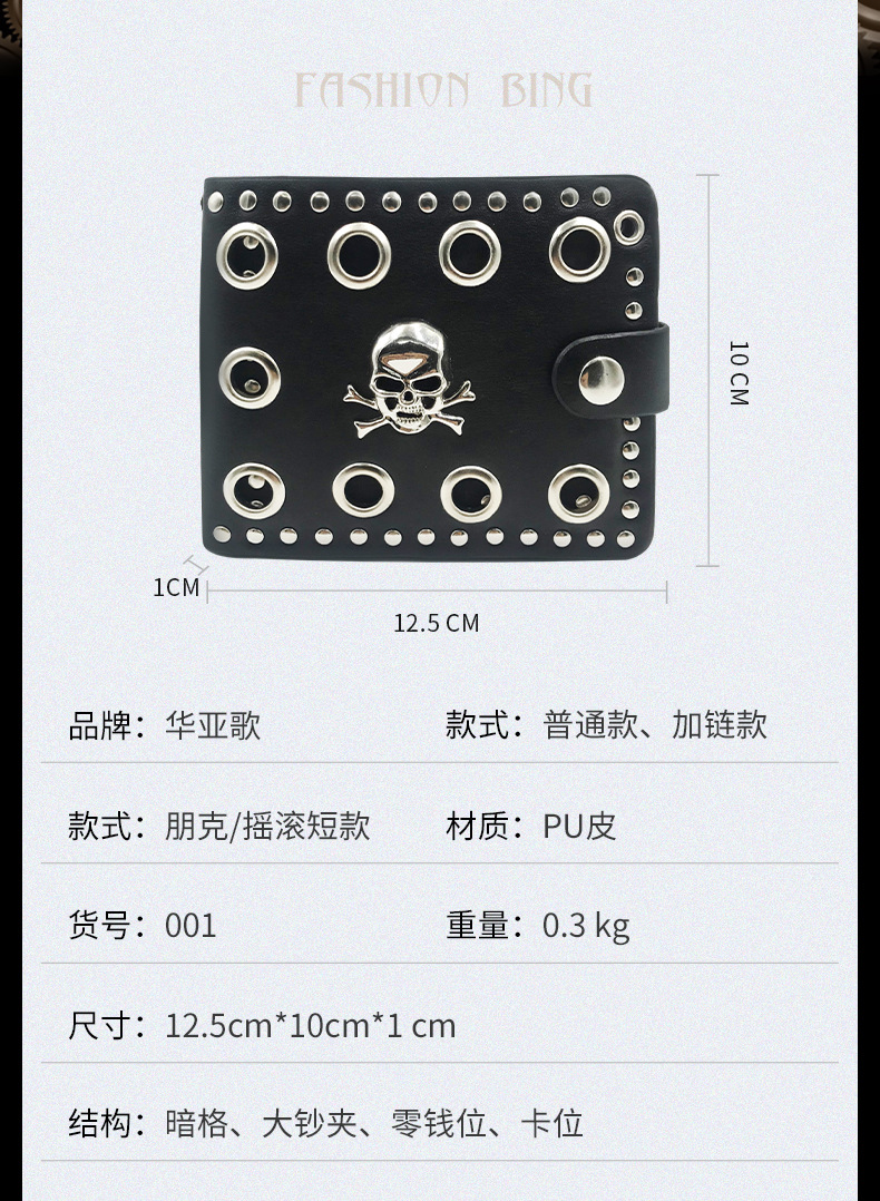 아마존 재고 콜라 지갑 해골 펑크 남자 지갑 체인 도난 방지 브러시 지갑