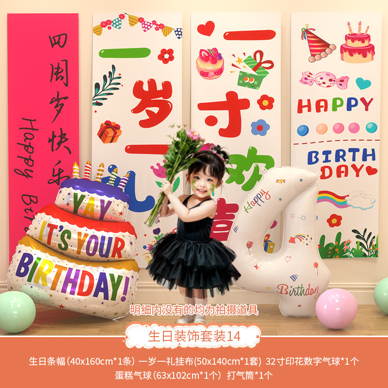 생일 축하 의식 장식 어린 소녀 장면 레이아웃 어린이 아기 2 세 풍선 3 도매스토어 가기