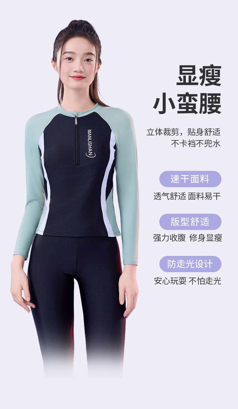 여행 휴가 서퍼 세트 여성용 3 피스 수영복 먼지 닦아 긴팔 바지 햇빛 선크림 다이빙 세트스토어 가기