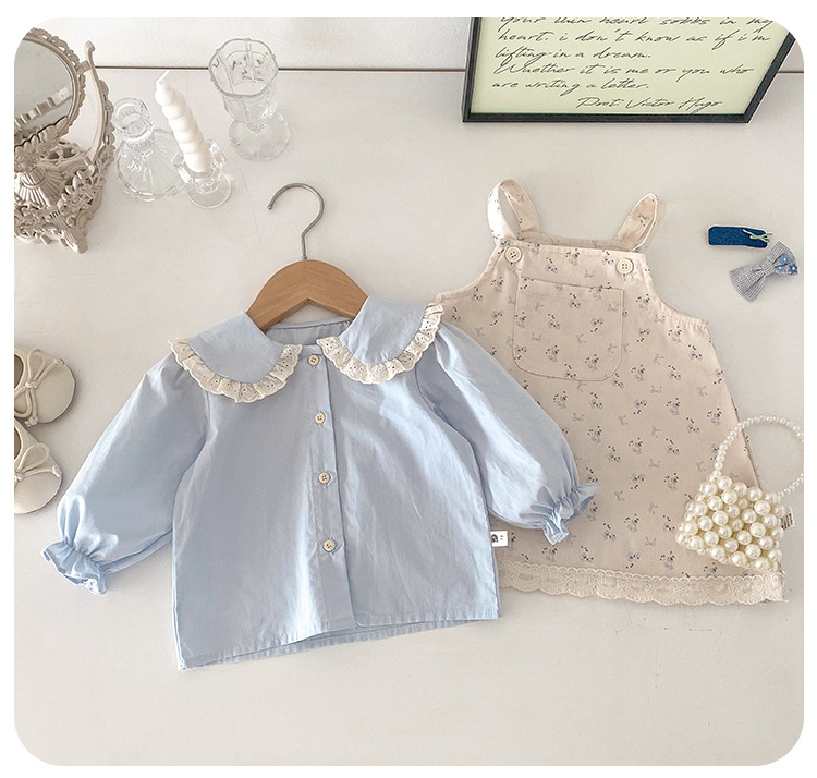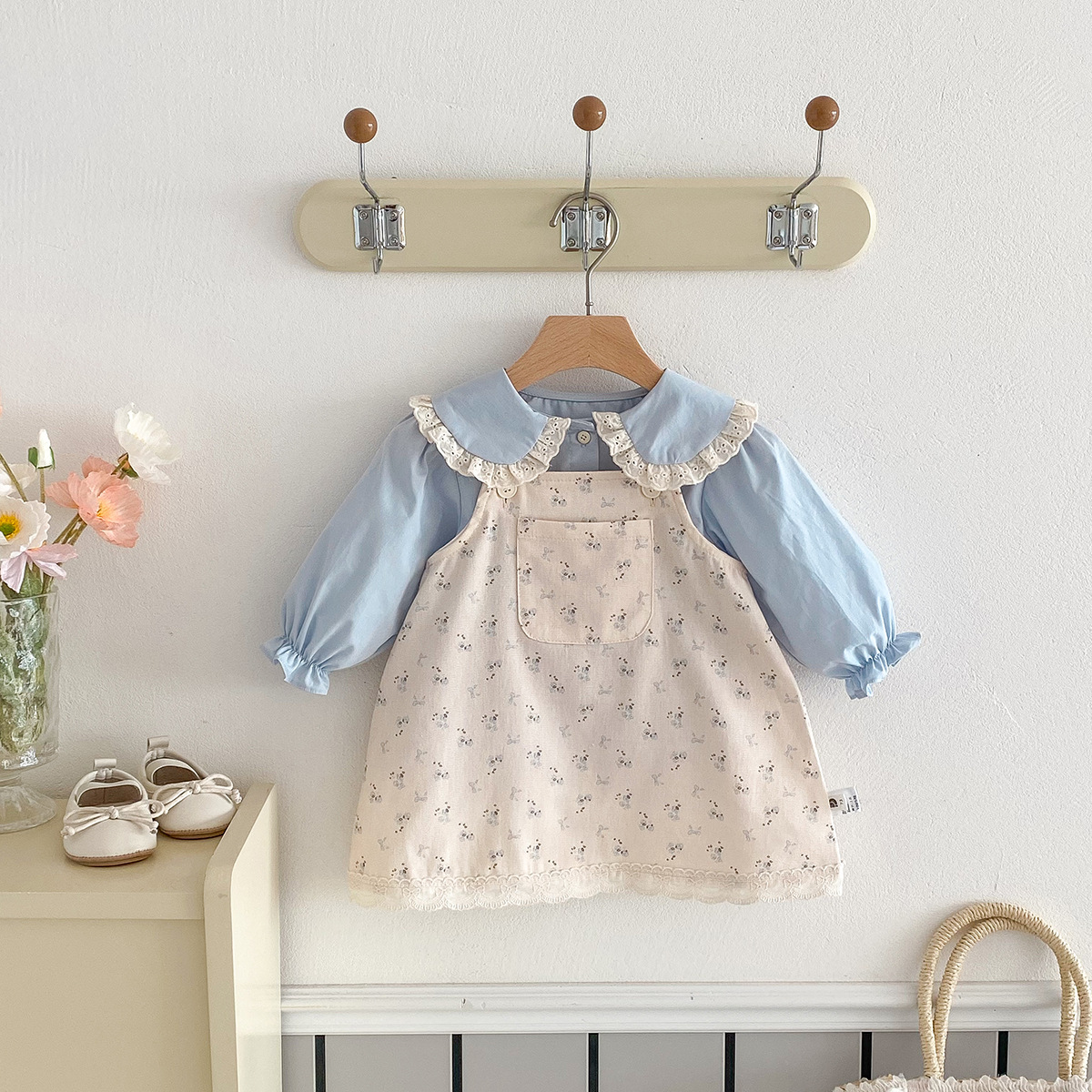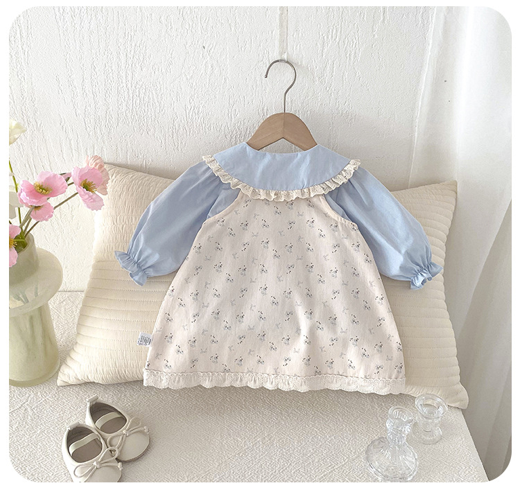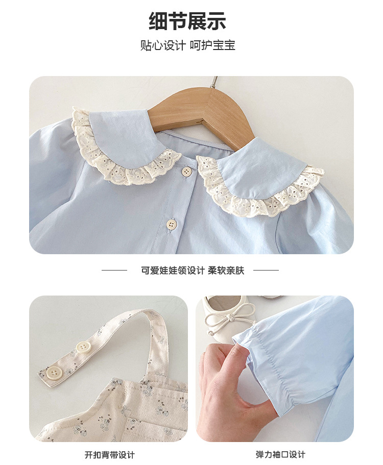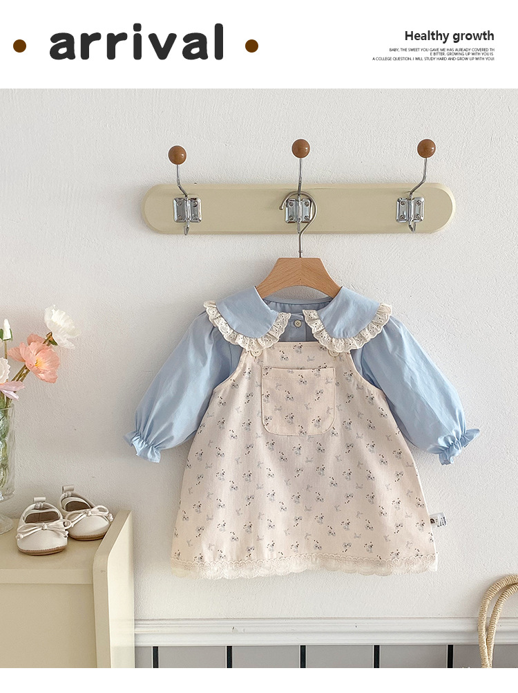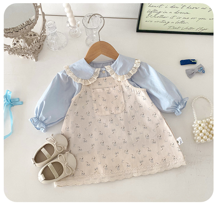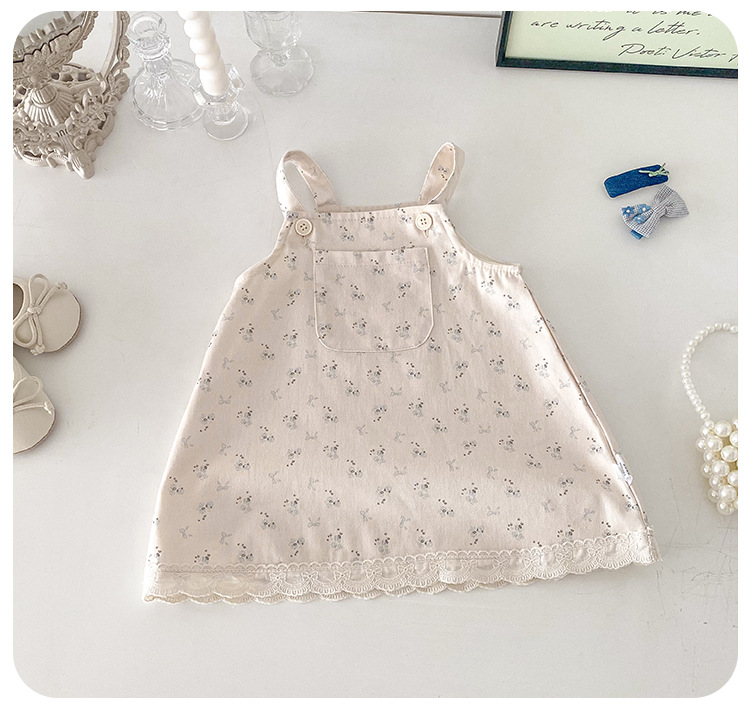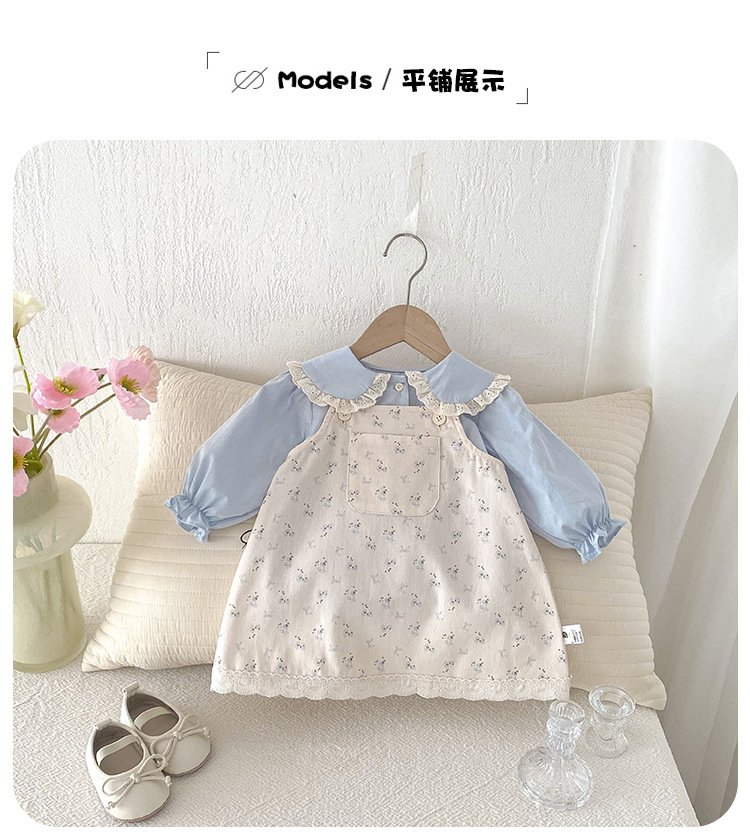 여아 봄 신상 세트, 세련된 꽃무늬 멜빵 스커트, 유아용 이너웨어 투피스, 여아 공주 드레스스토어 가기