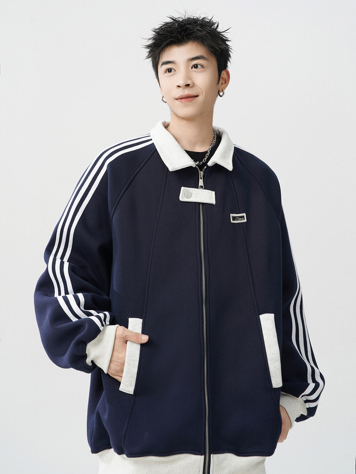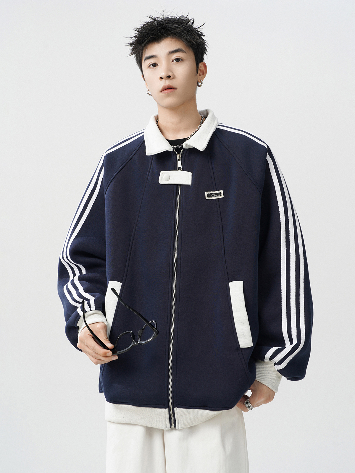 미국 스트라이프 캐주얼 카디건 스웨터 남자 가을 겨울 새로운 패션 브랜드 아카데믹 스타일 커플의 올 매치 스포츠 재킷 코트