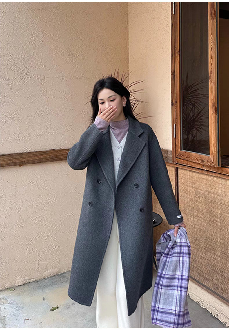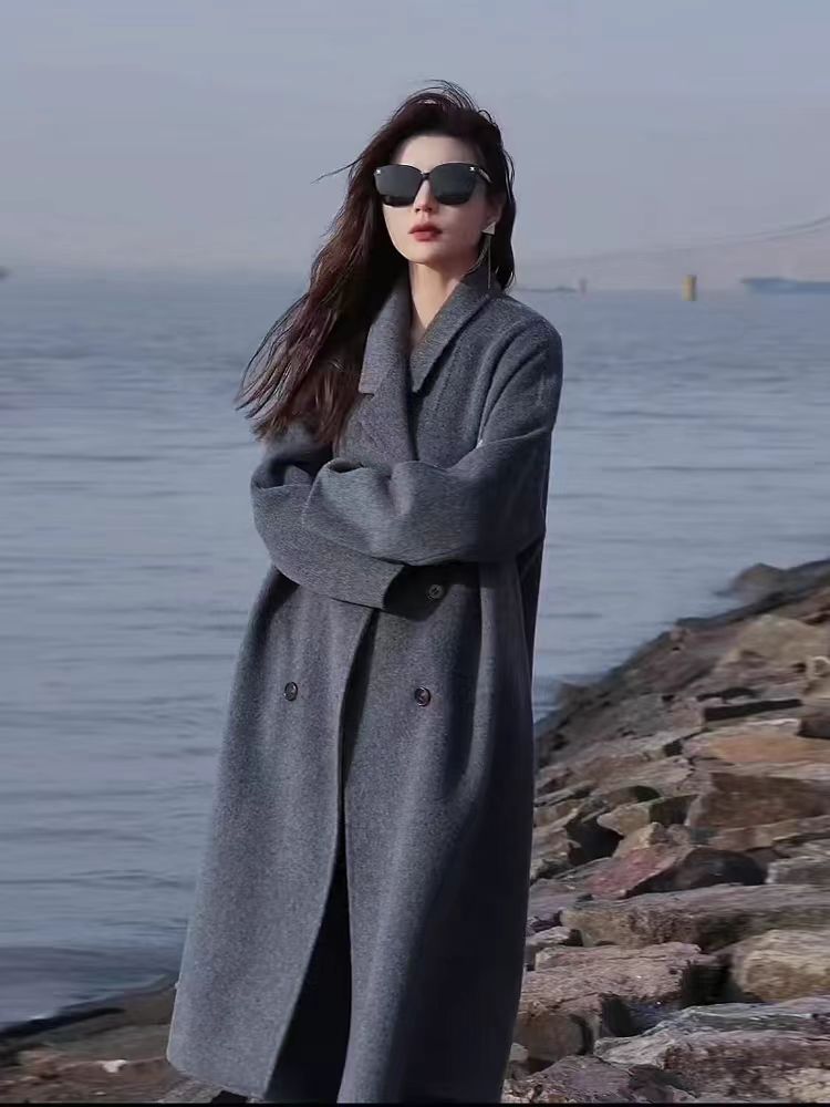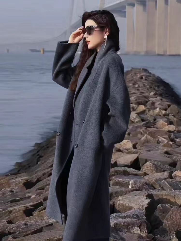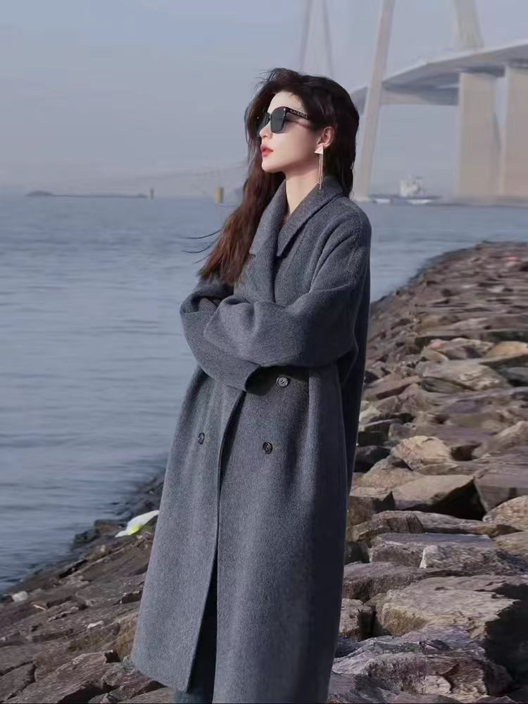 공장 직판 양면 캐시미어 코트 여성용 롱 스타일 2025 가을 겨울 신상 한국 스타일 더블 버튼 슬림핏 모직 코트스토어 가기