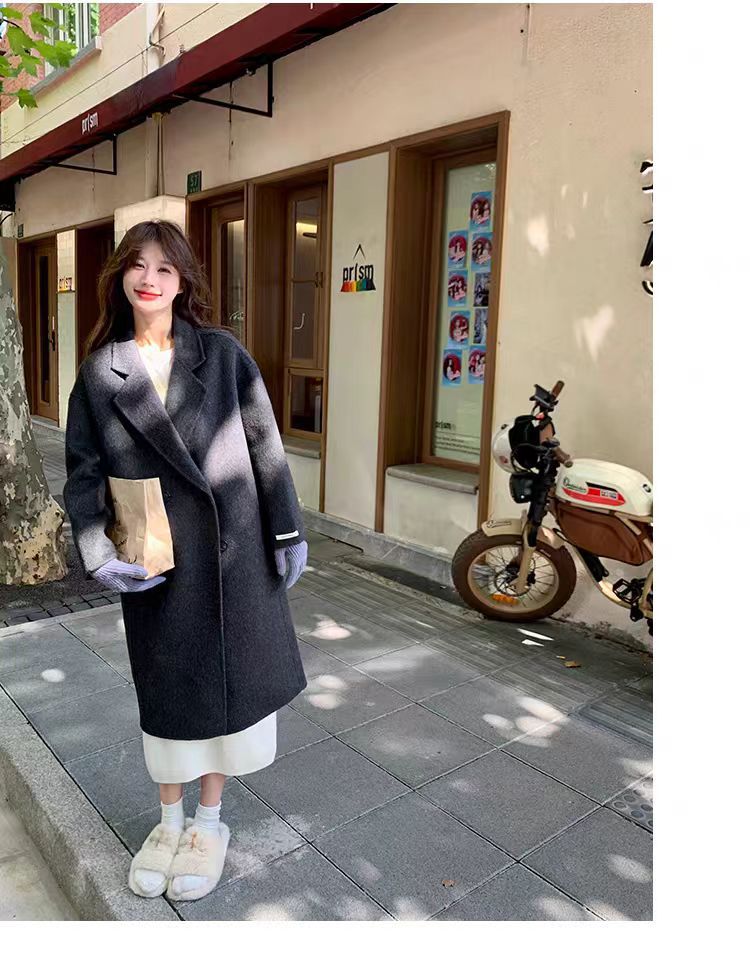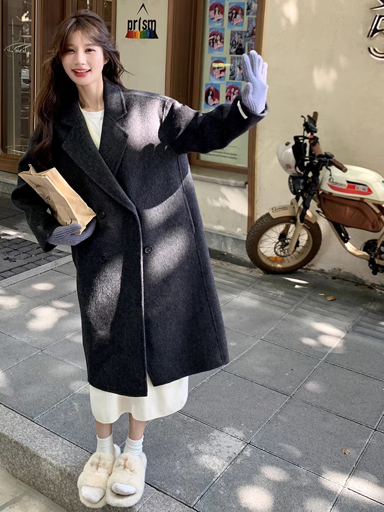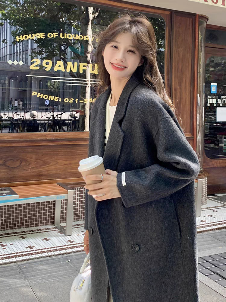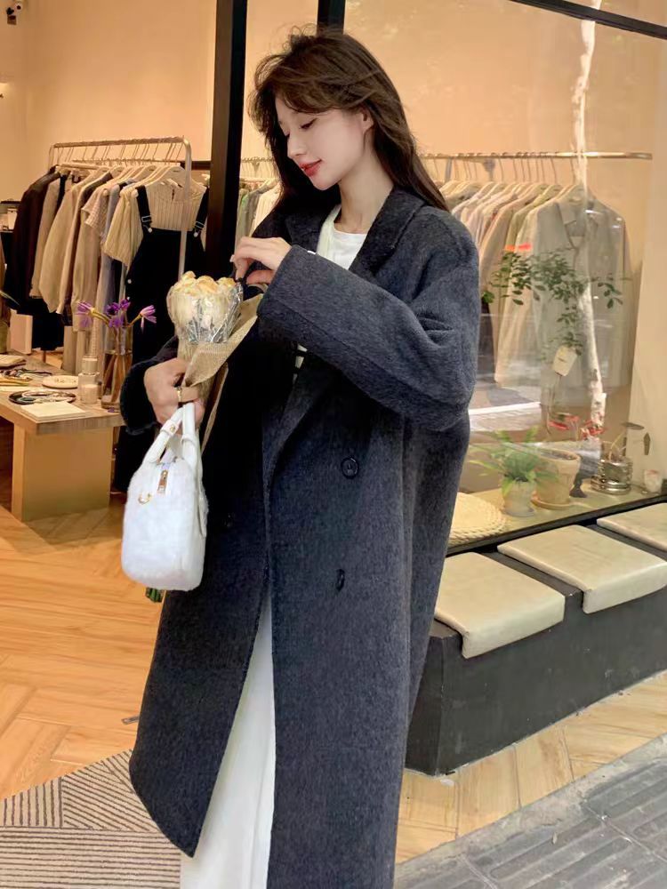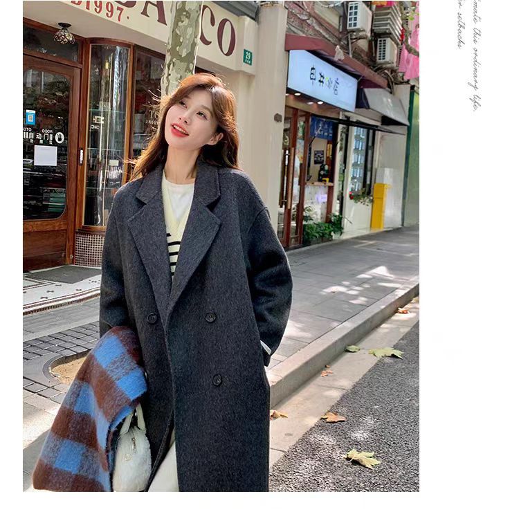 공장 직판 양면 캐시미어 코트 여성용 롱 스타일 2025 가을 겨울 신상 한국 스타일 더블 버튼 슬림핏 모직 코트스토어 가기