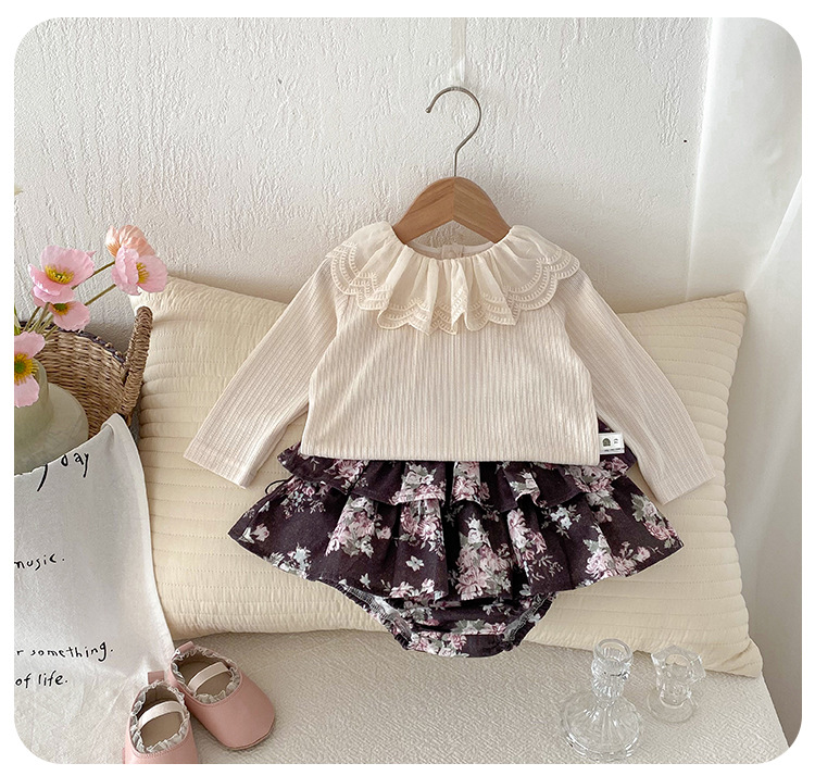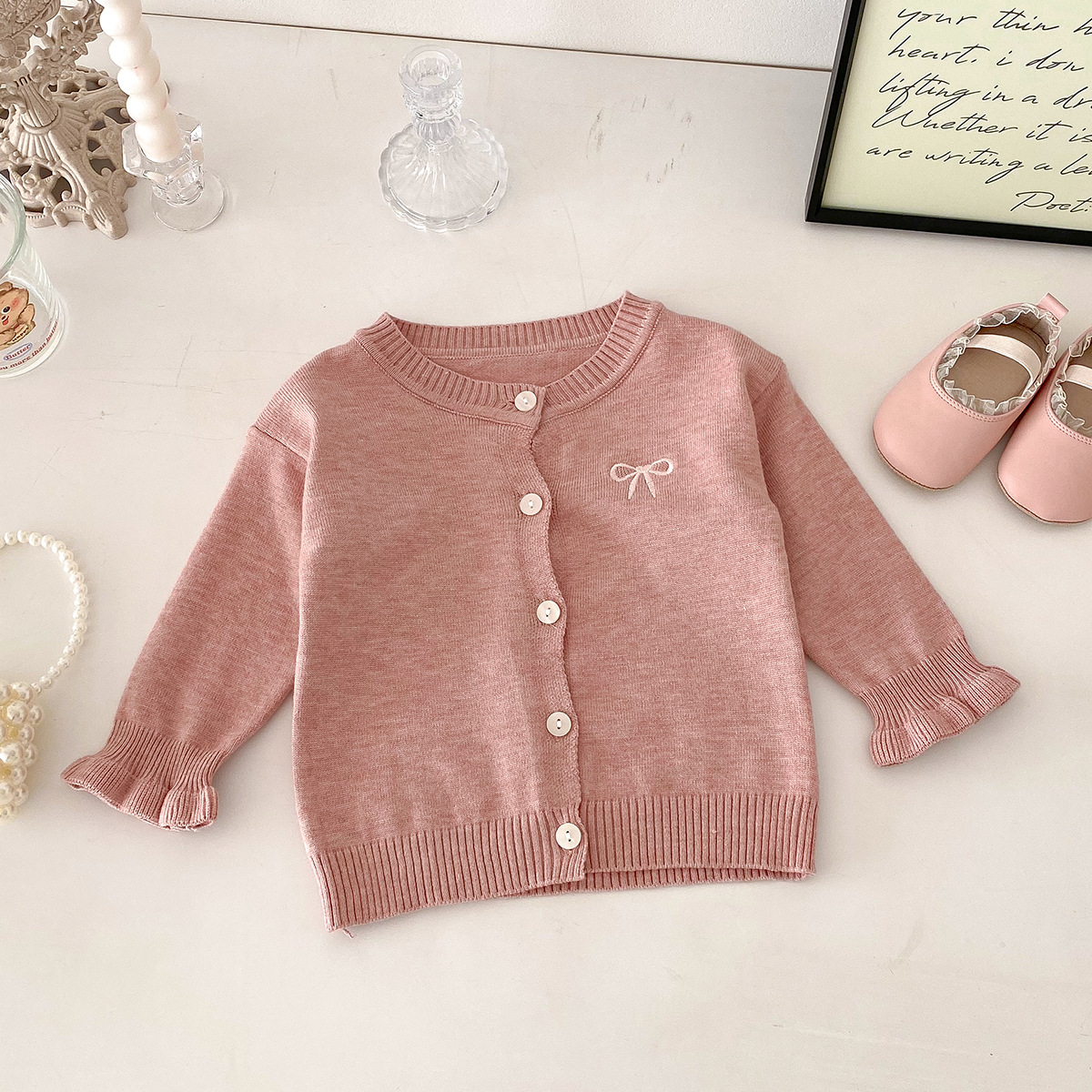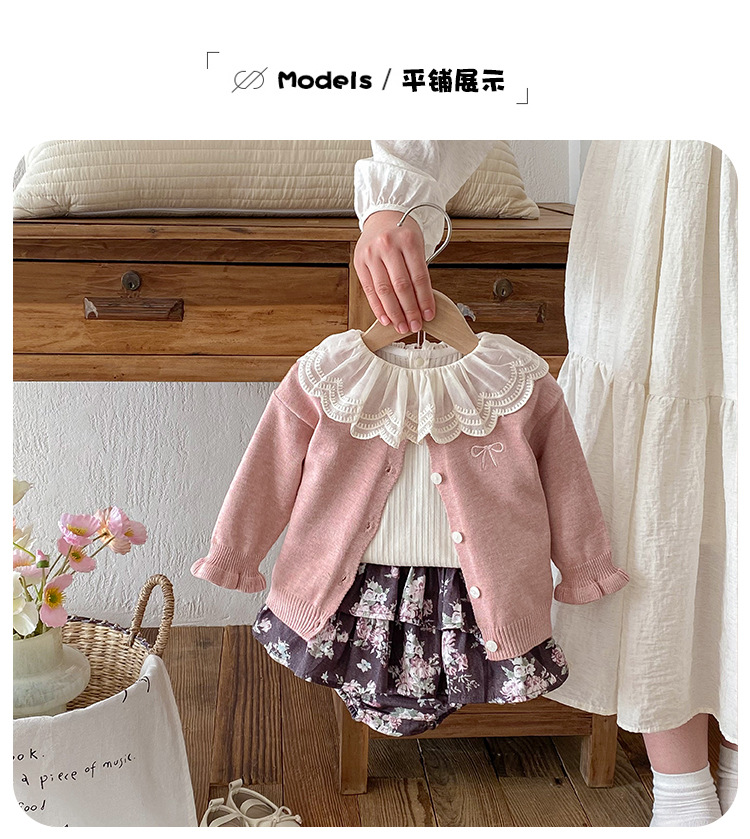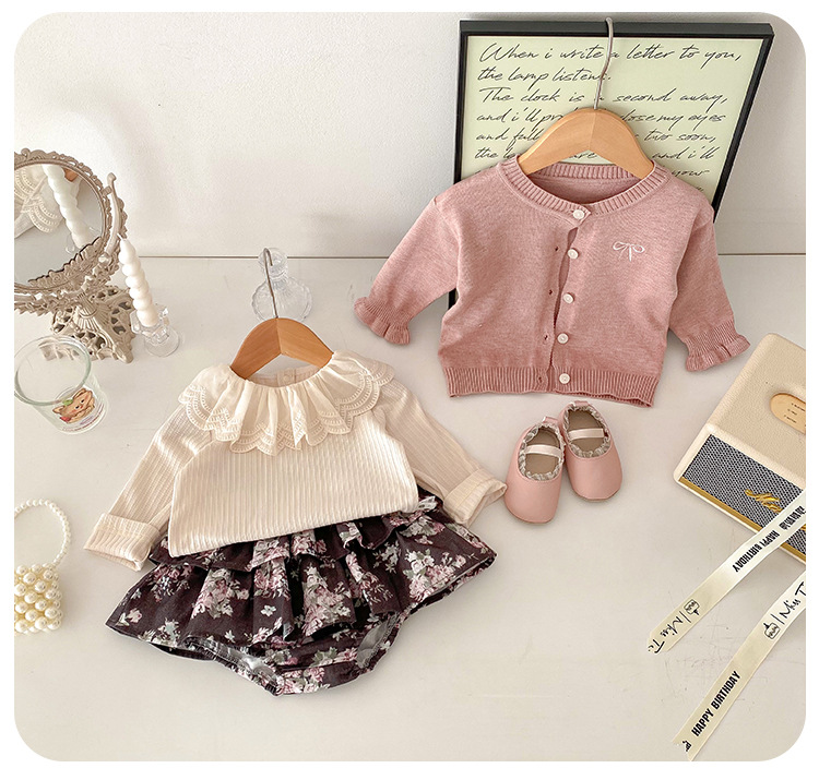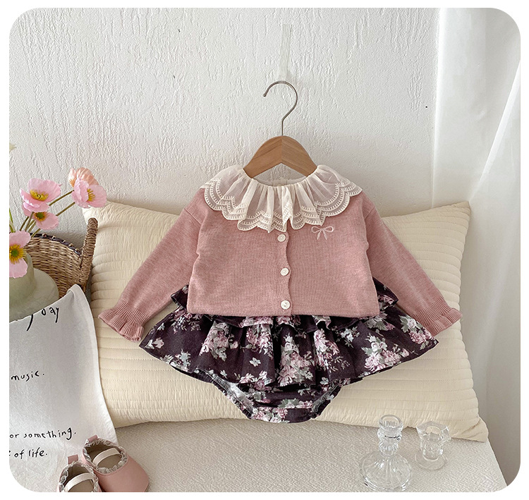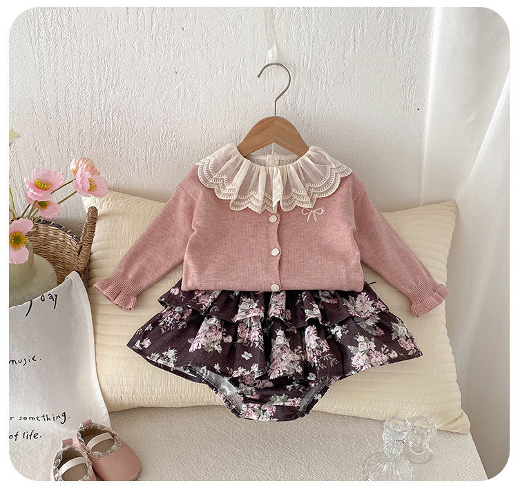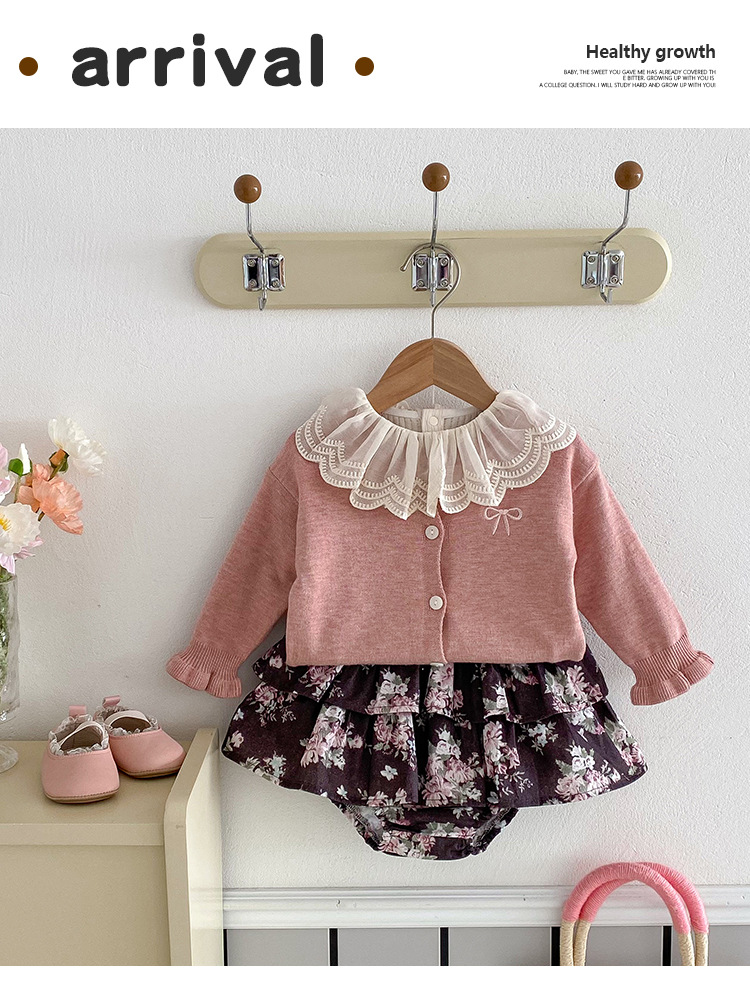 아기 모직 가디건, 여아용 봄옷, 여아용 니트 재킷, 꽃무늬 스커트, 달콤하고 세련된 여아 정장스토어 가기
