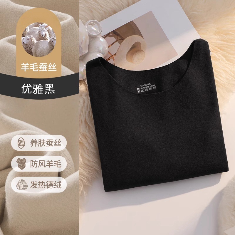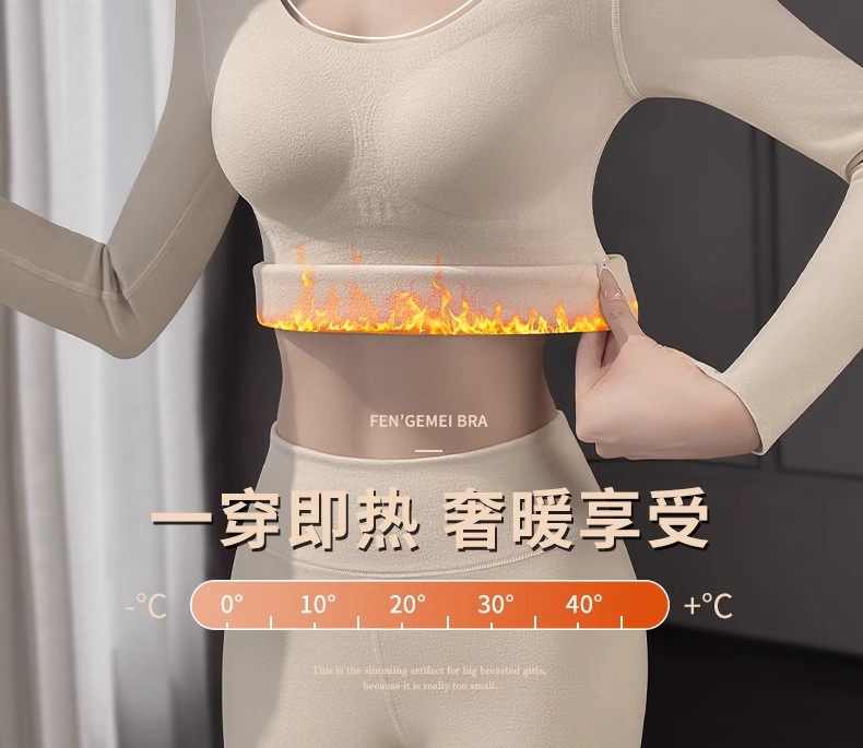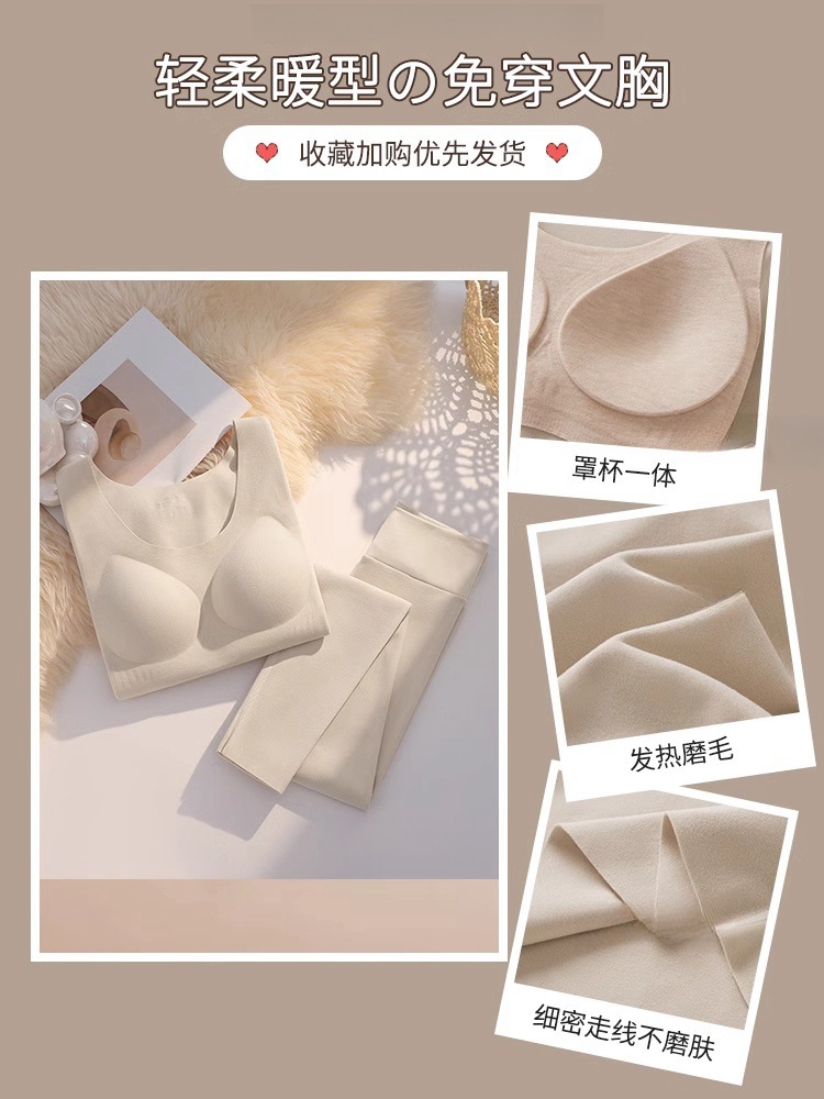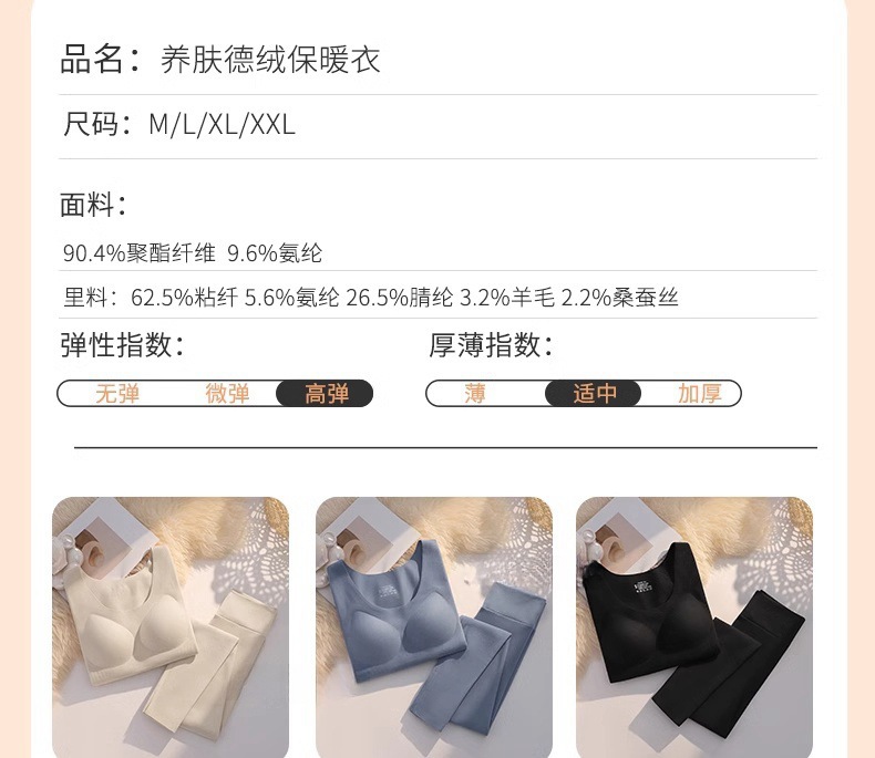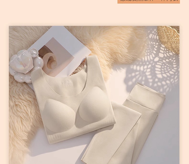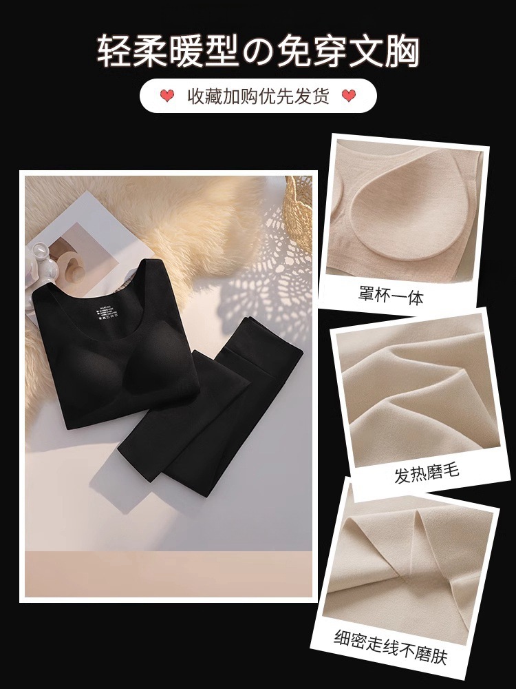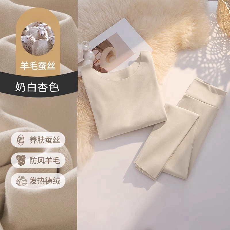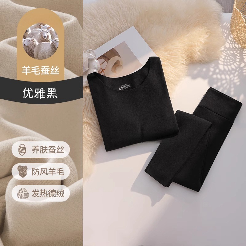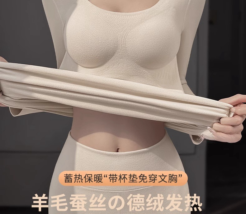Waku 핫 가죽 시리즈 울 실크 열 속옷 여성 벨트 가슴 패드 아크릴 난방 양털 가을 옷과 바지 세트