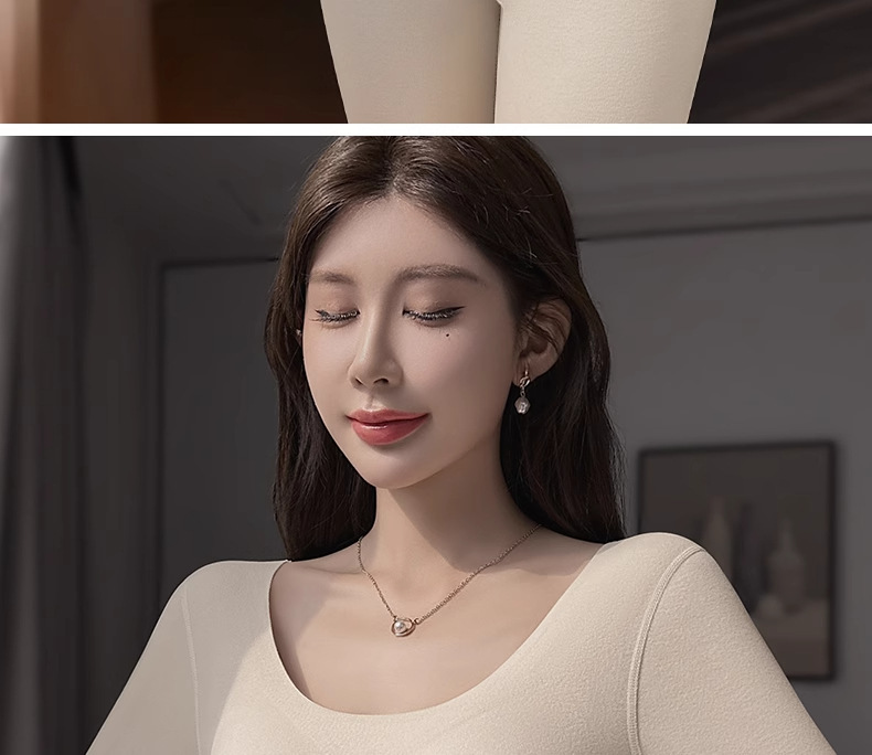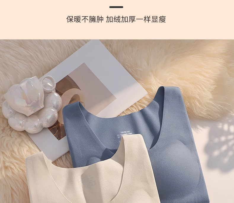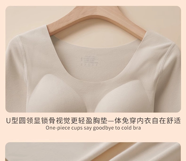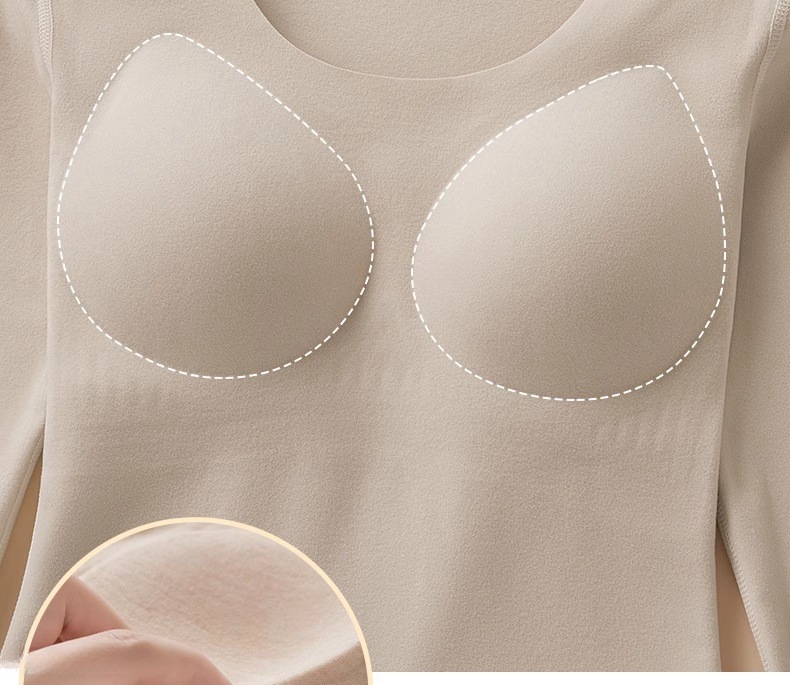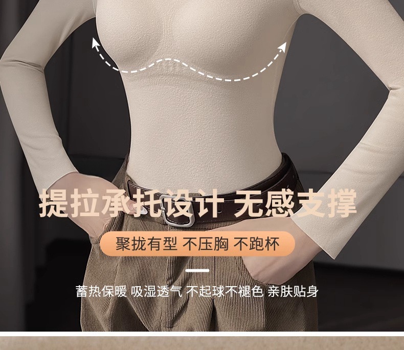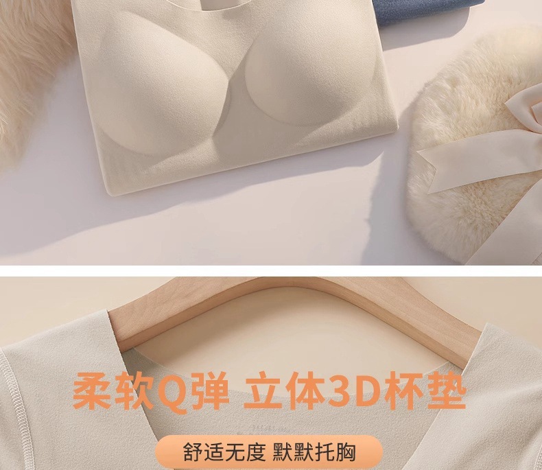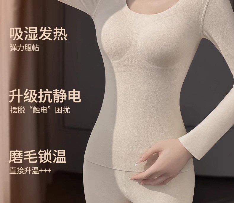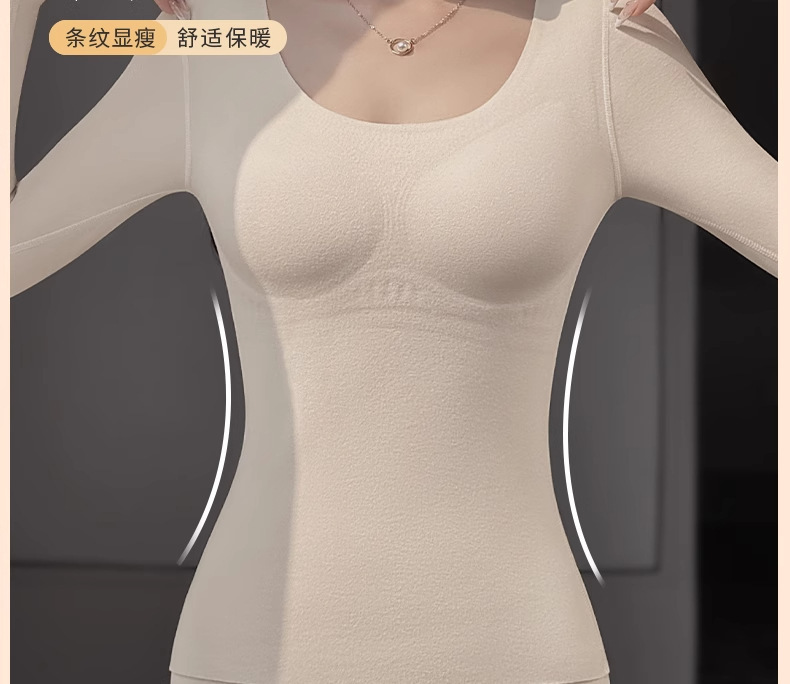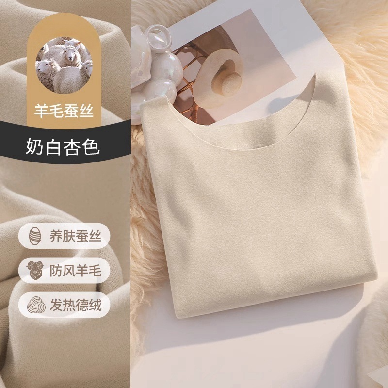 Waku 핫 가죽 시리즈 울 실크 열 속옷 여성 벨트 가슴 패드 아크릴 난방 양털 가을 옷과 바지 세트