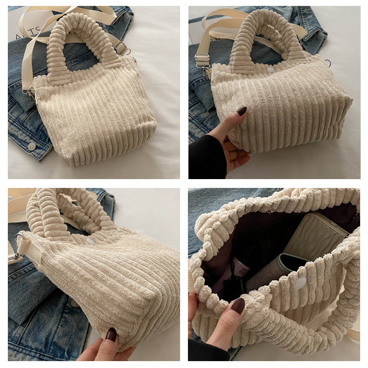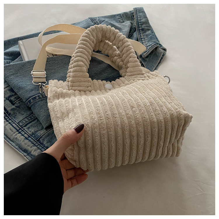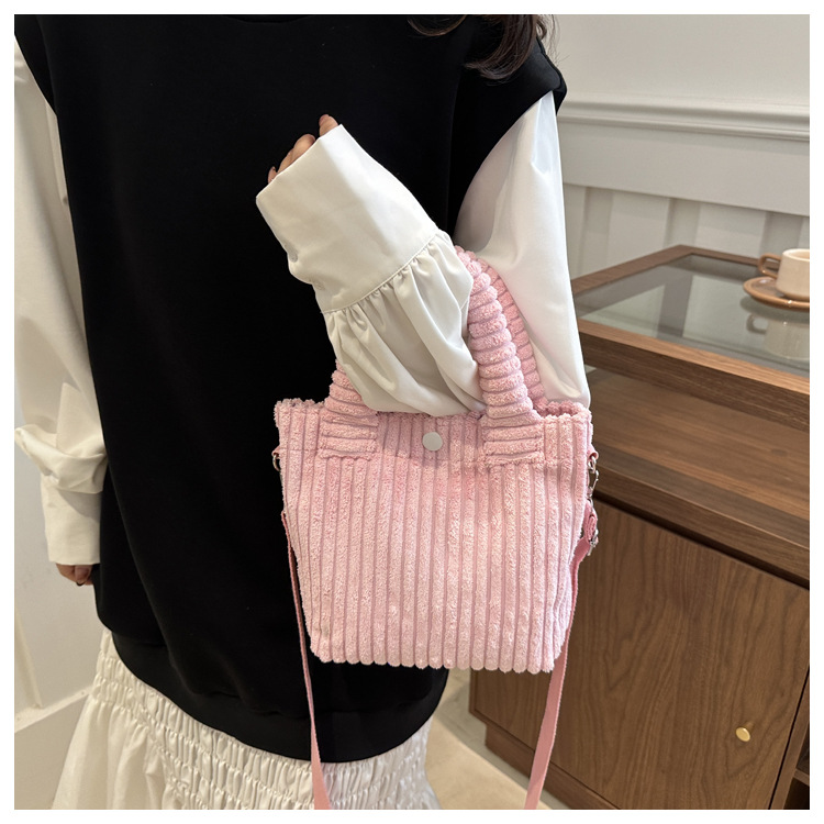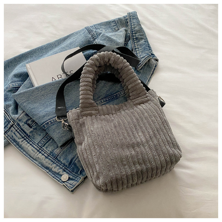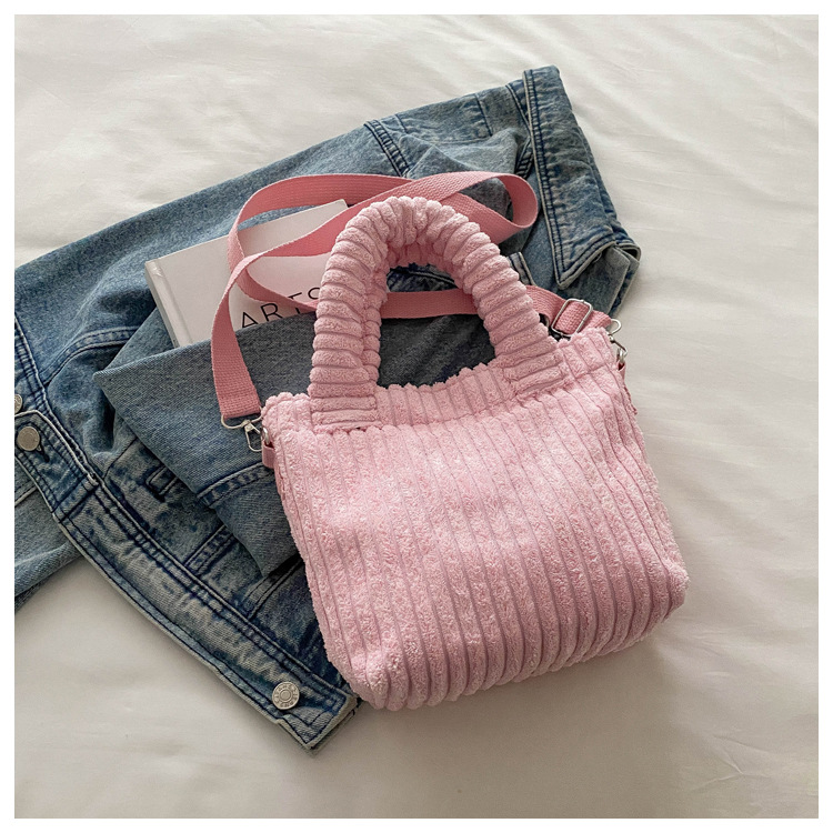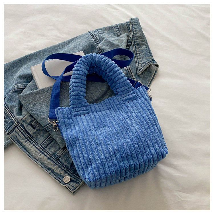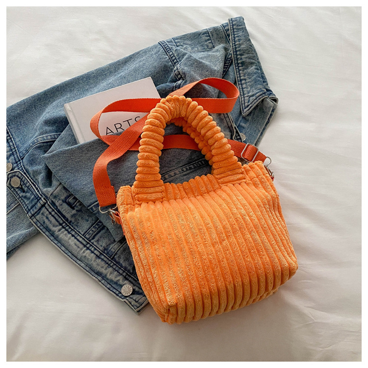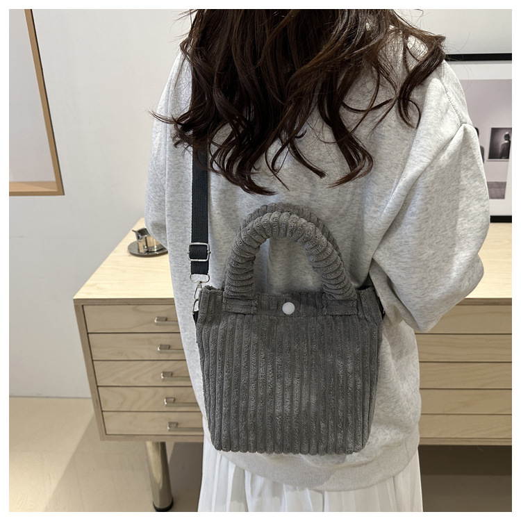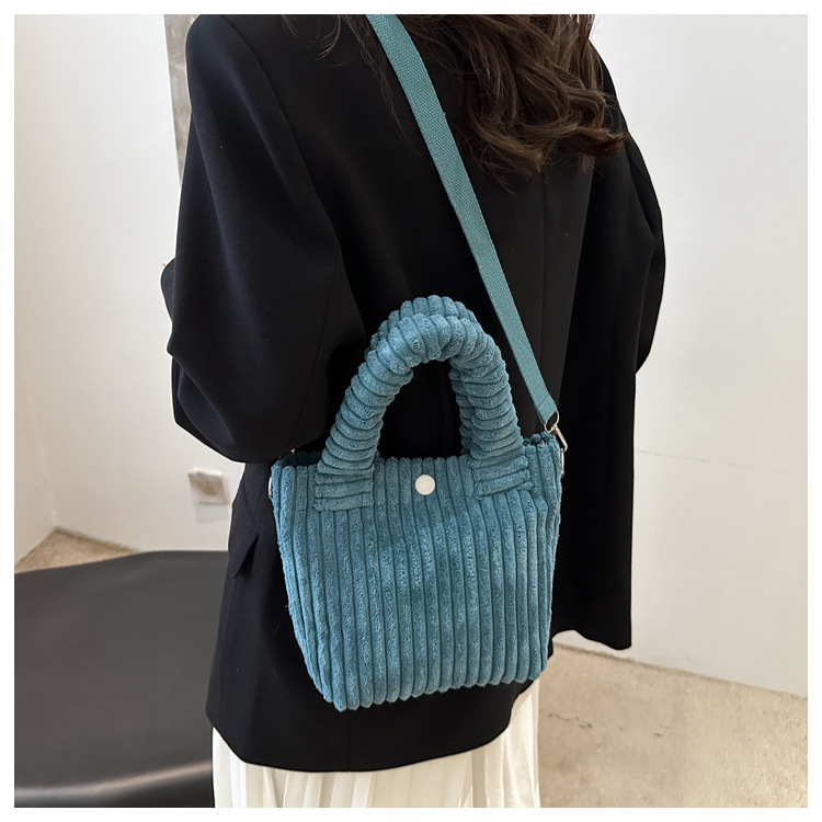 새로운 틈새 코듀로이 크로스 바디 백 한국 스타일 간단한 귀여운 핸드백 트렌디 캔디 컬러 경량 핸드 버킷 백