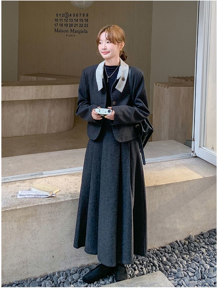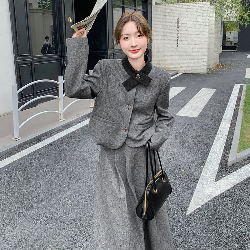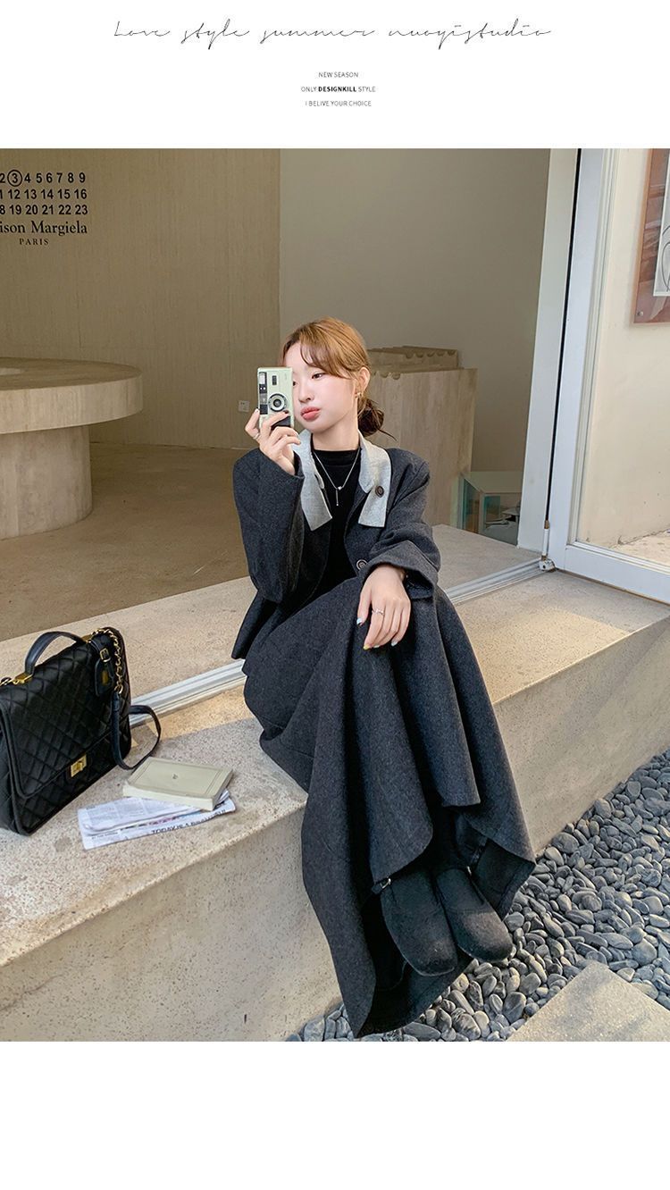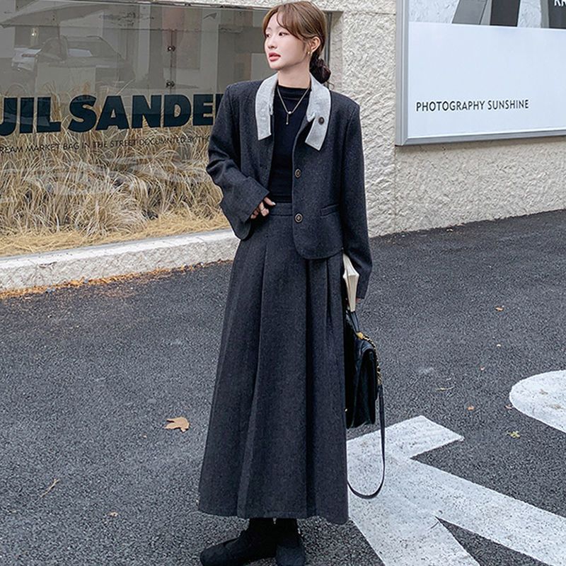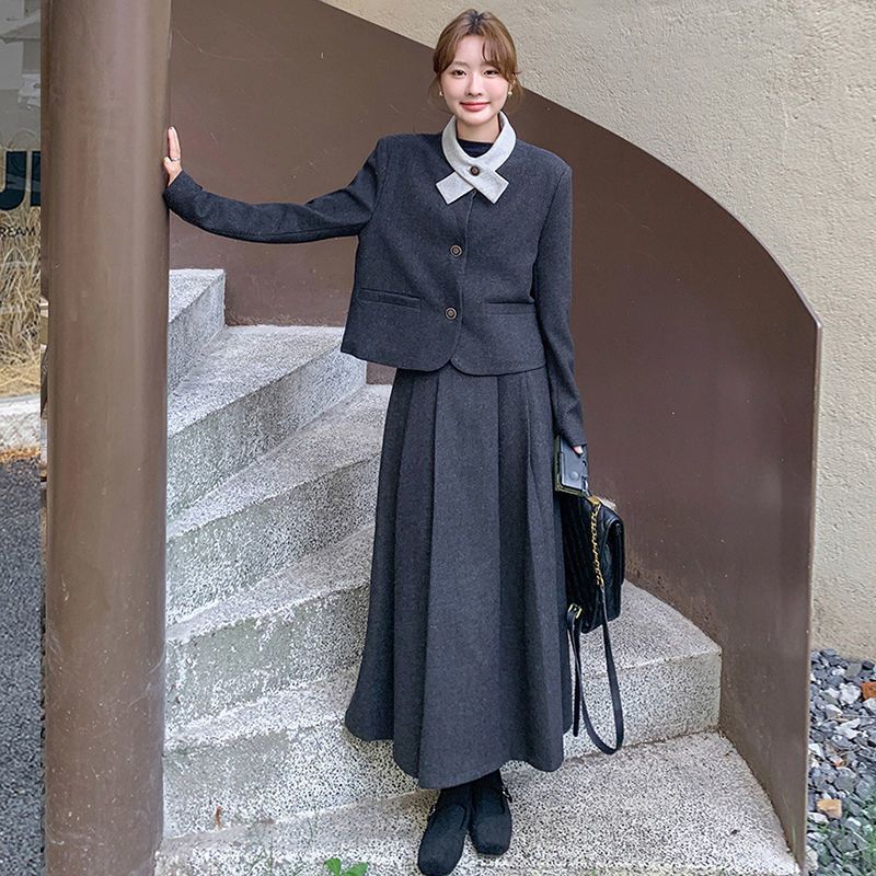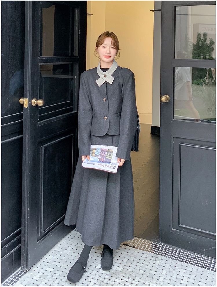 원래 품질 모직 원피스 새로운 스타일 우아한 짧은 재킷 여성 스커트 투피스 세트스토어 가기