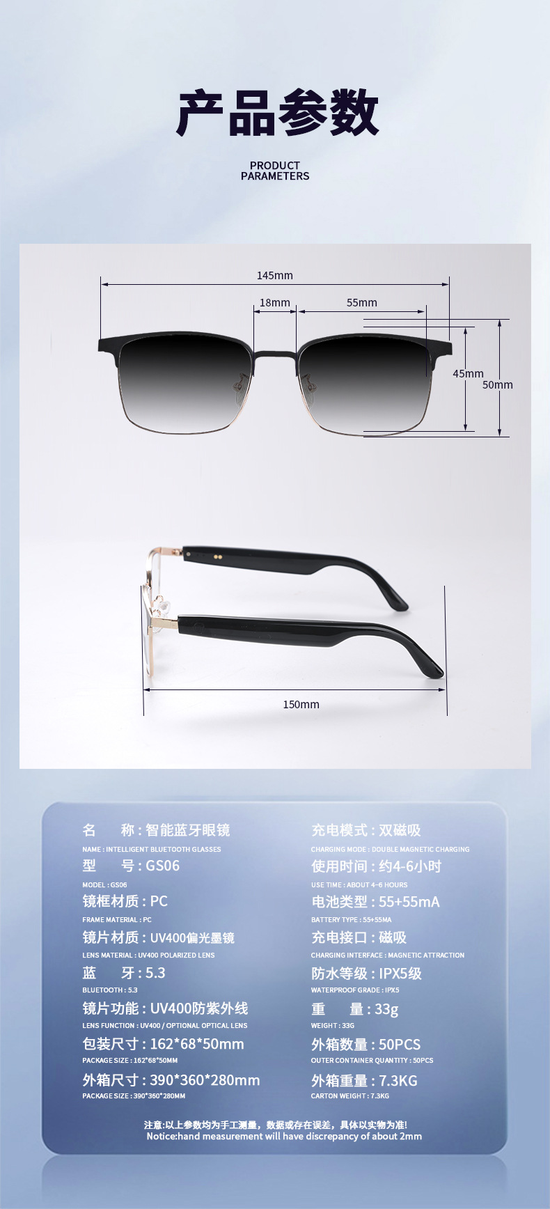 국경 간 스마트 블루투스 안경 색상 변경 안티 블루 라이트 안경은 노래를 듣고 전화 통화를 할 수 있습니다 렌즈 운전 내비게이션 GS06스토어 가기