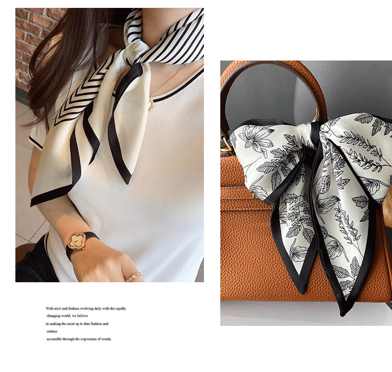 인터넷 연예인 봄과 가을 새로운 긴 실크 스카프 모방 실크 넥타이 가방 헤어 벨트 프랑스 흑백 목 스카프 여성의 하이 엔드 감각스토어 가기