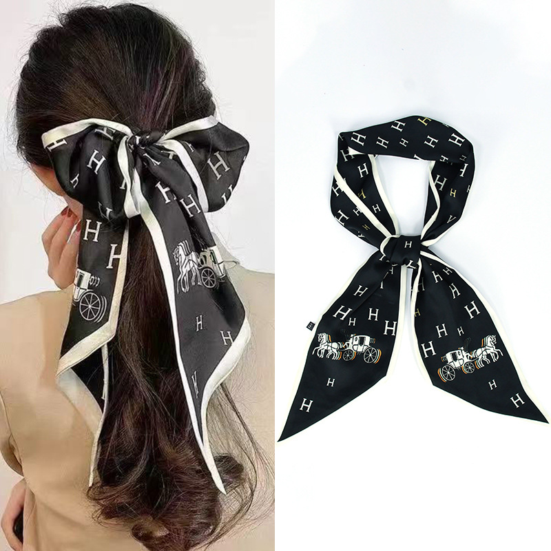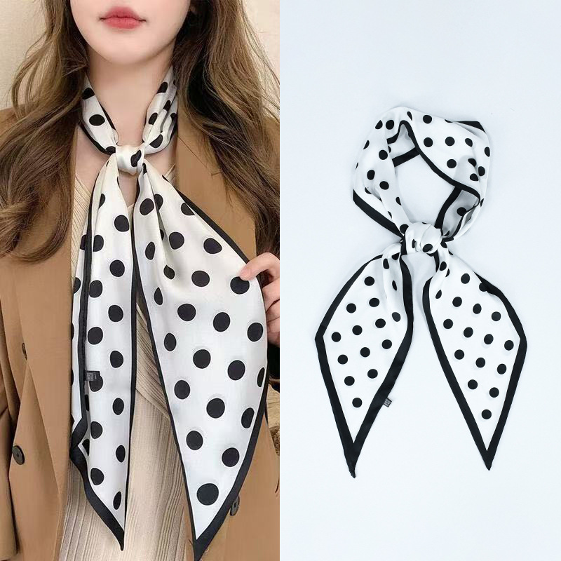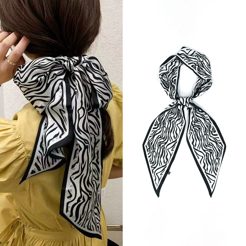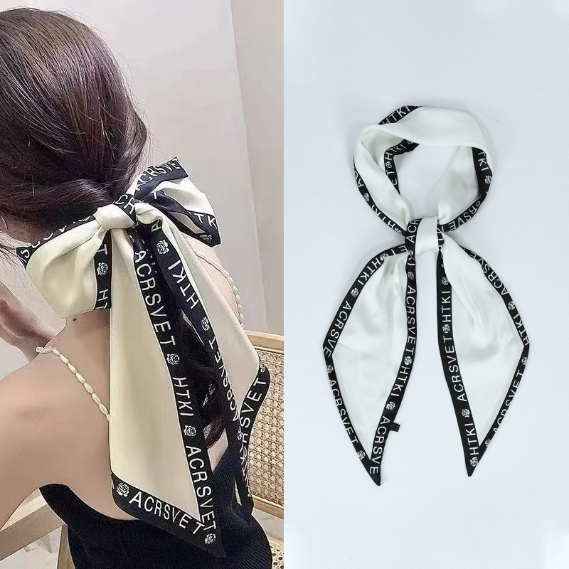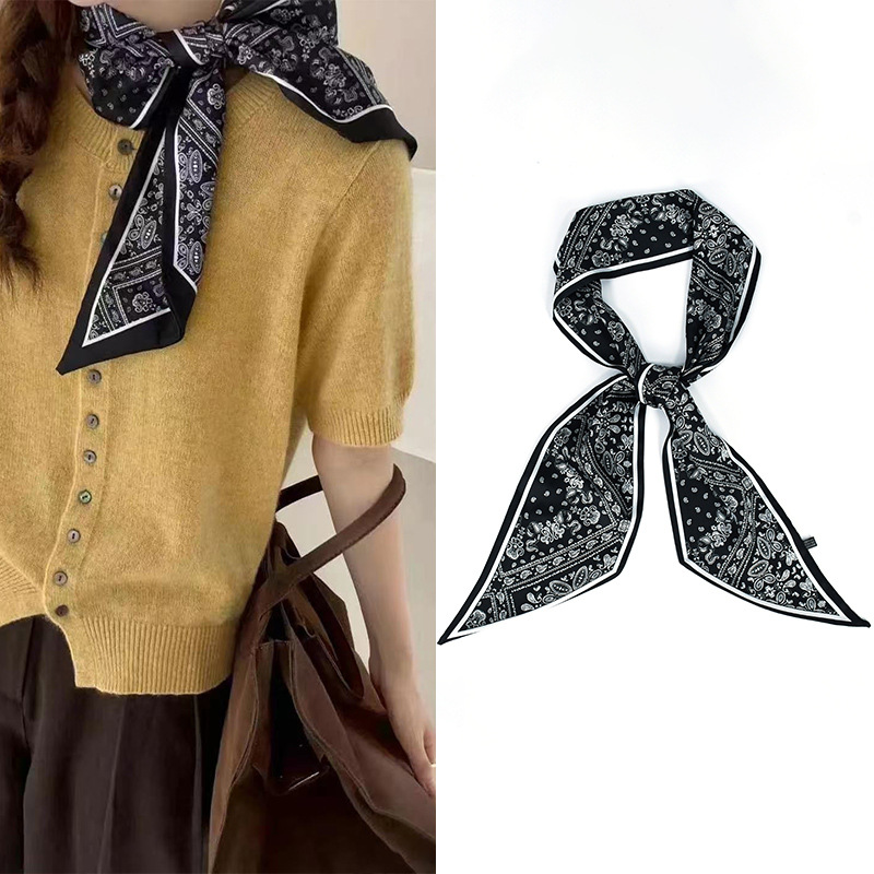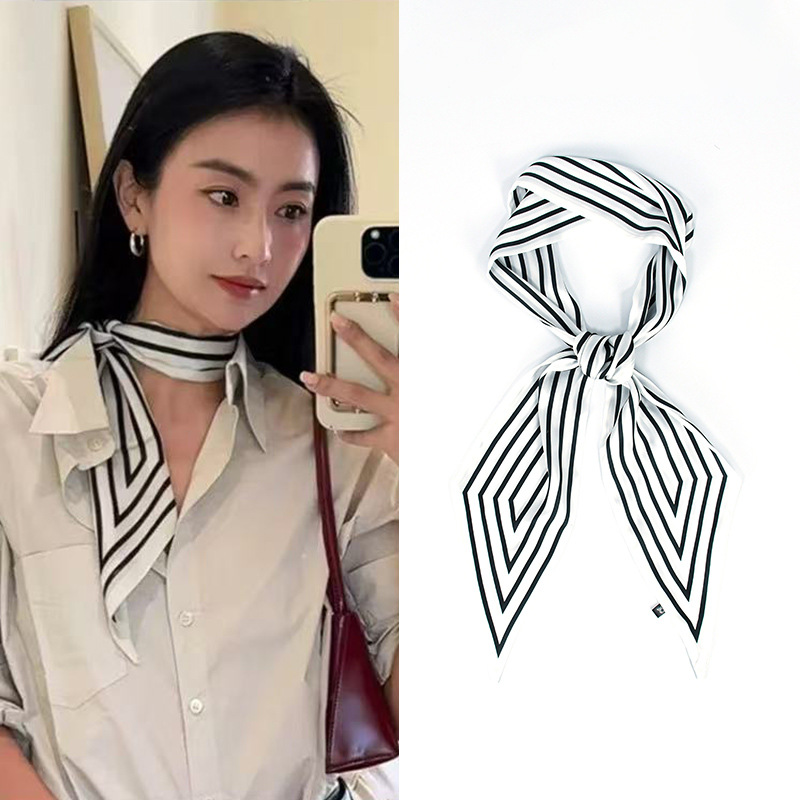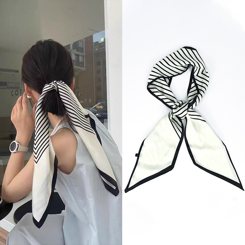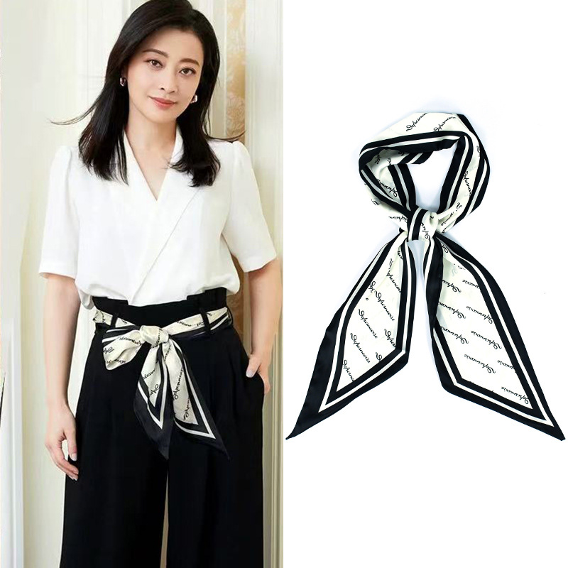 인터넷 연예인 봄과 가을 새로운 긴 실크 스카프 모방 실크 넥타이 가방 헤어 벨트 프랑스 흑백 목 스카프 여성의 하이 엔드 감각