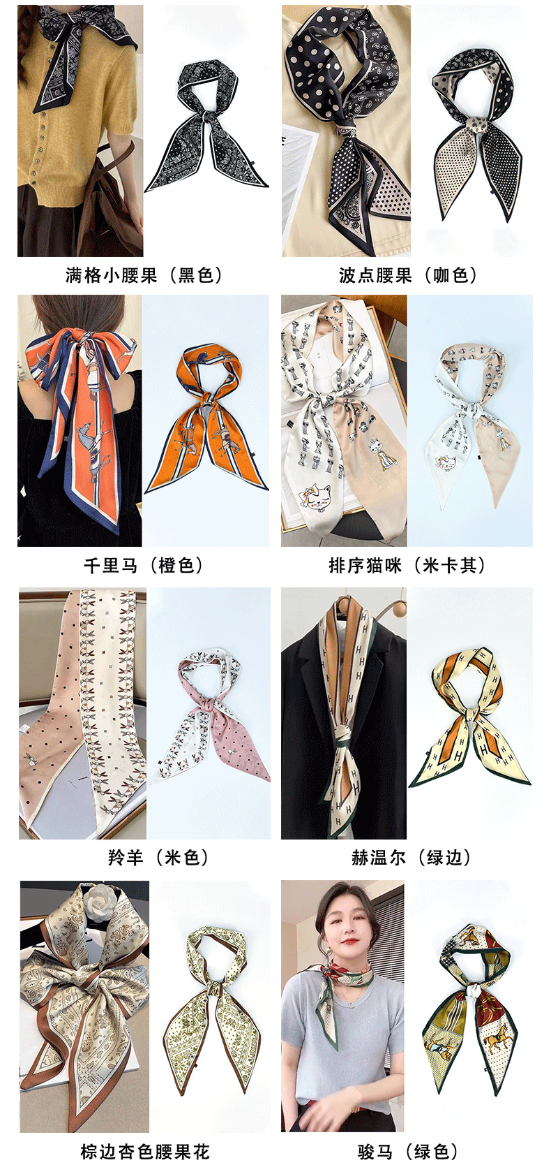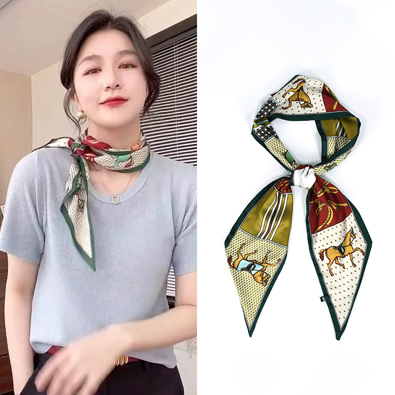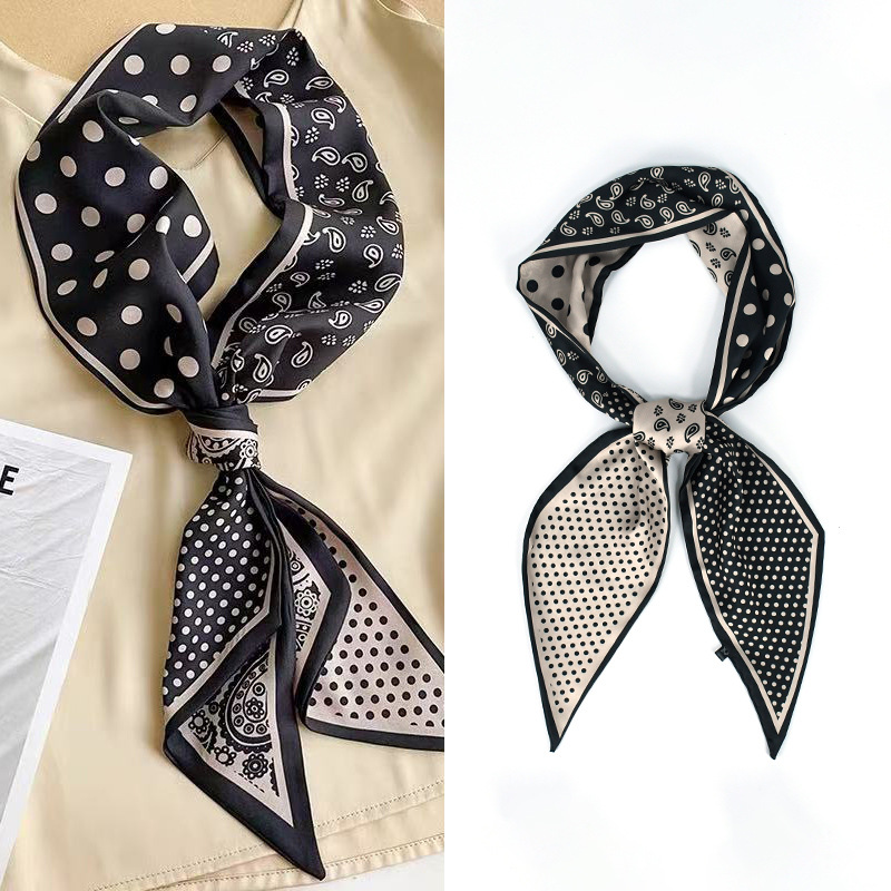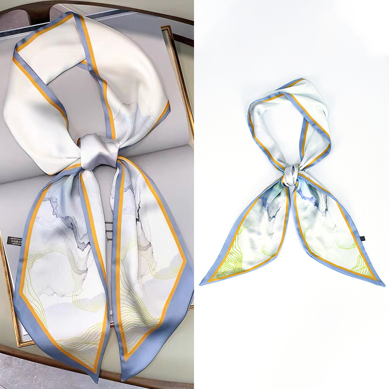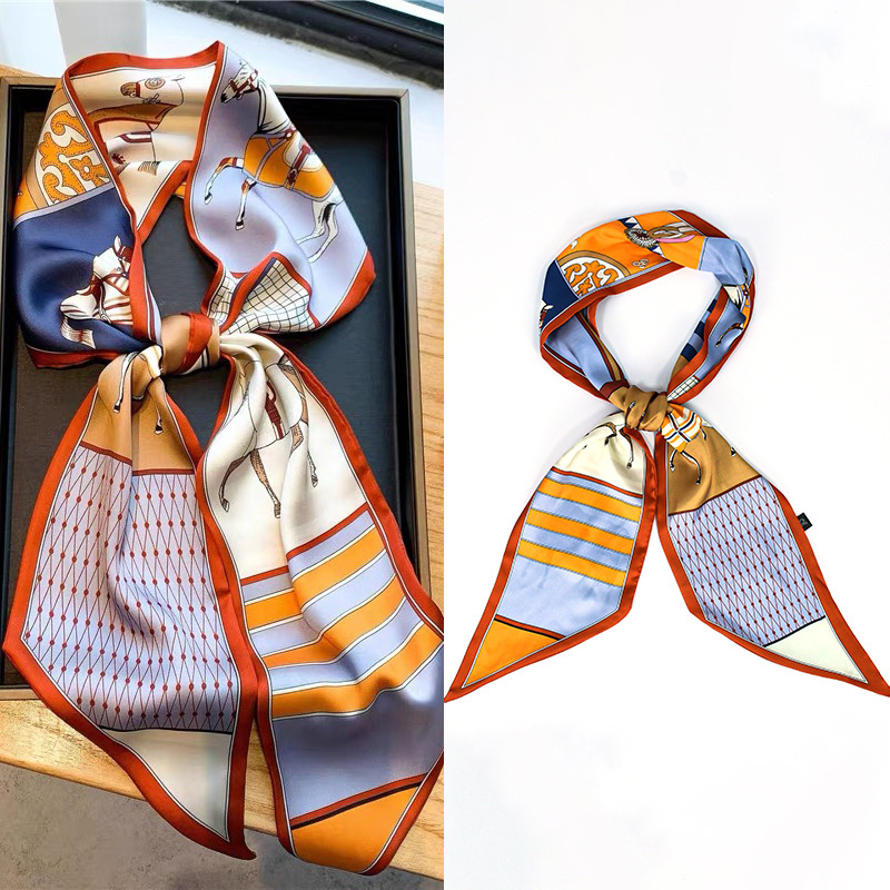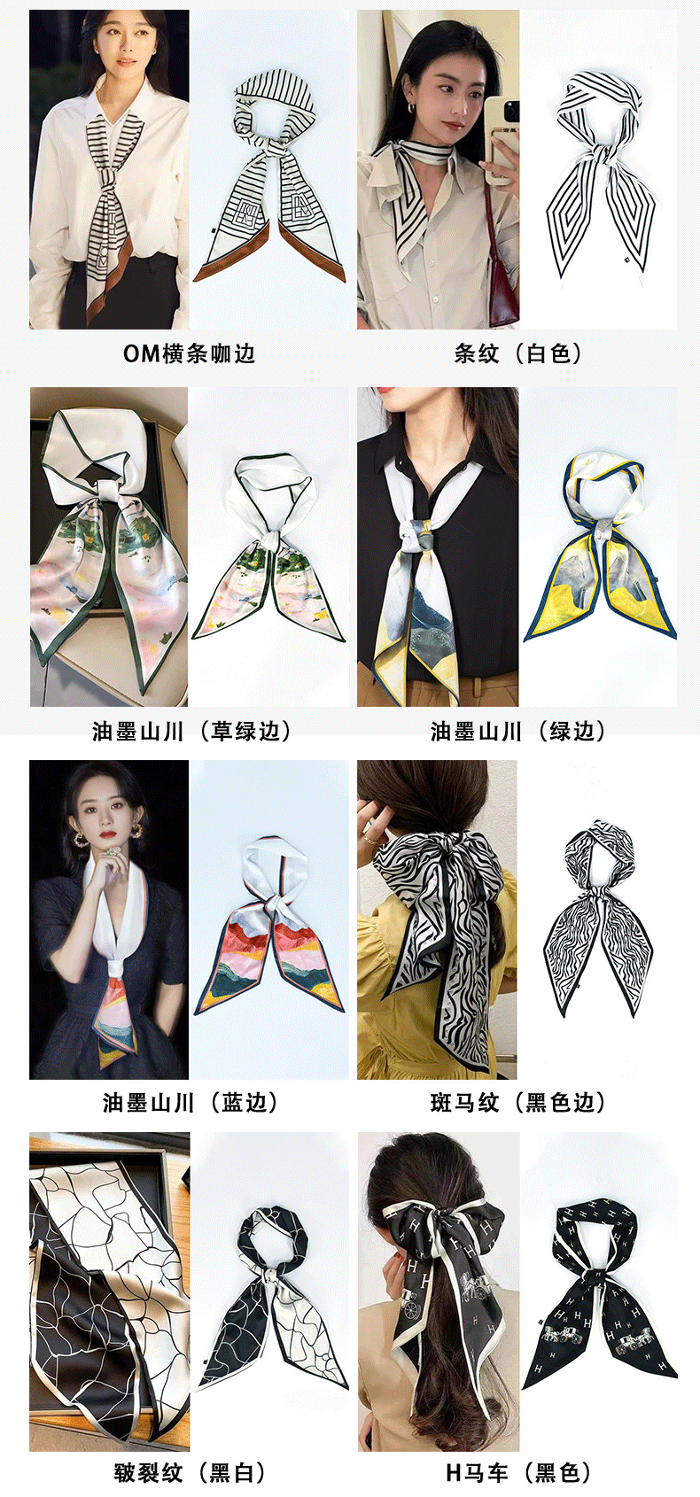 인터넷 연예인 봄과 가을 새로운 긴 실크 스카프 모방 실크 넥타이 가방 헤어 벨트 프랑스 흑백 목 스카프 여성의 하이 엔드 감각
